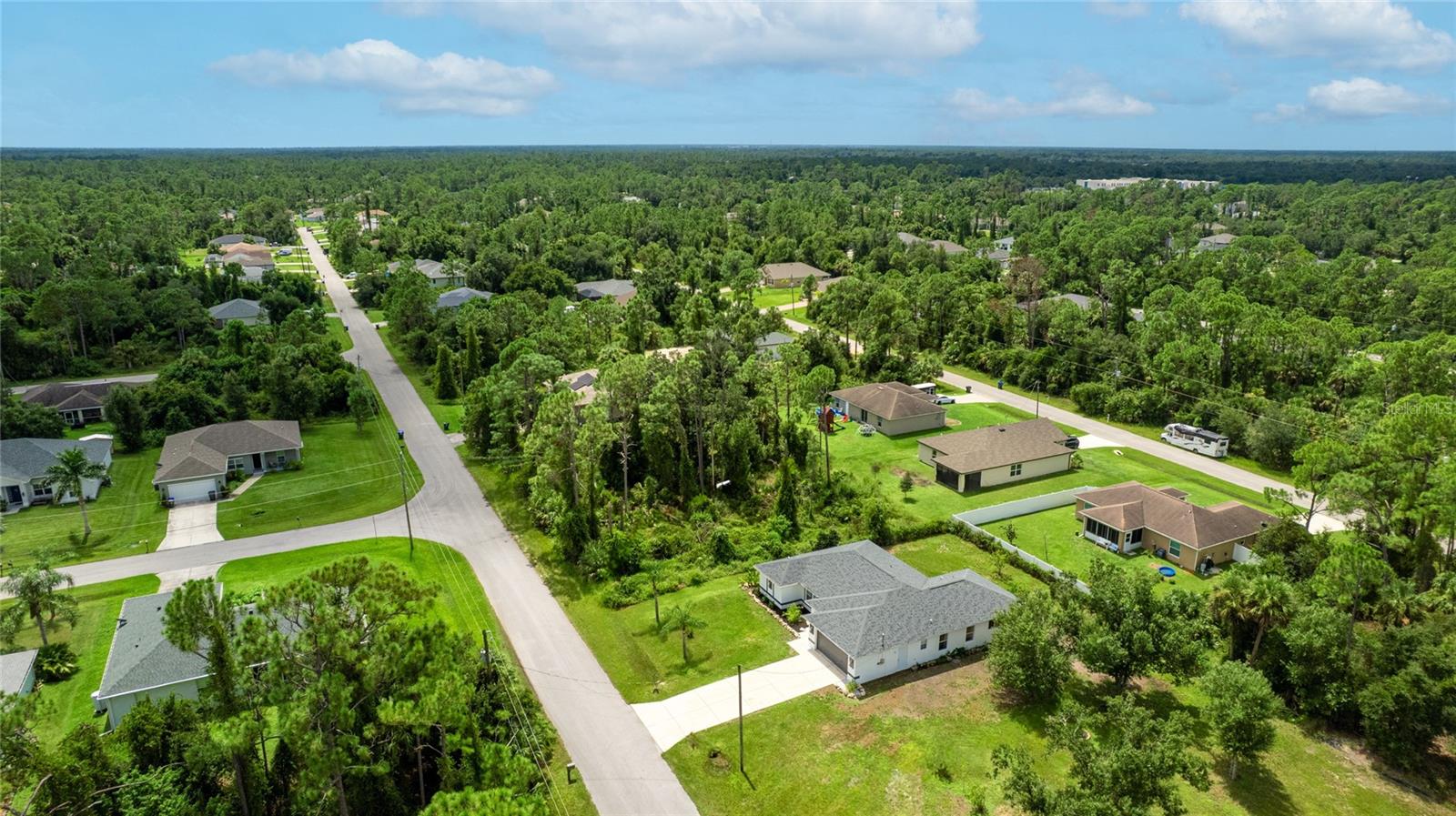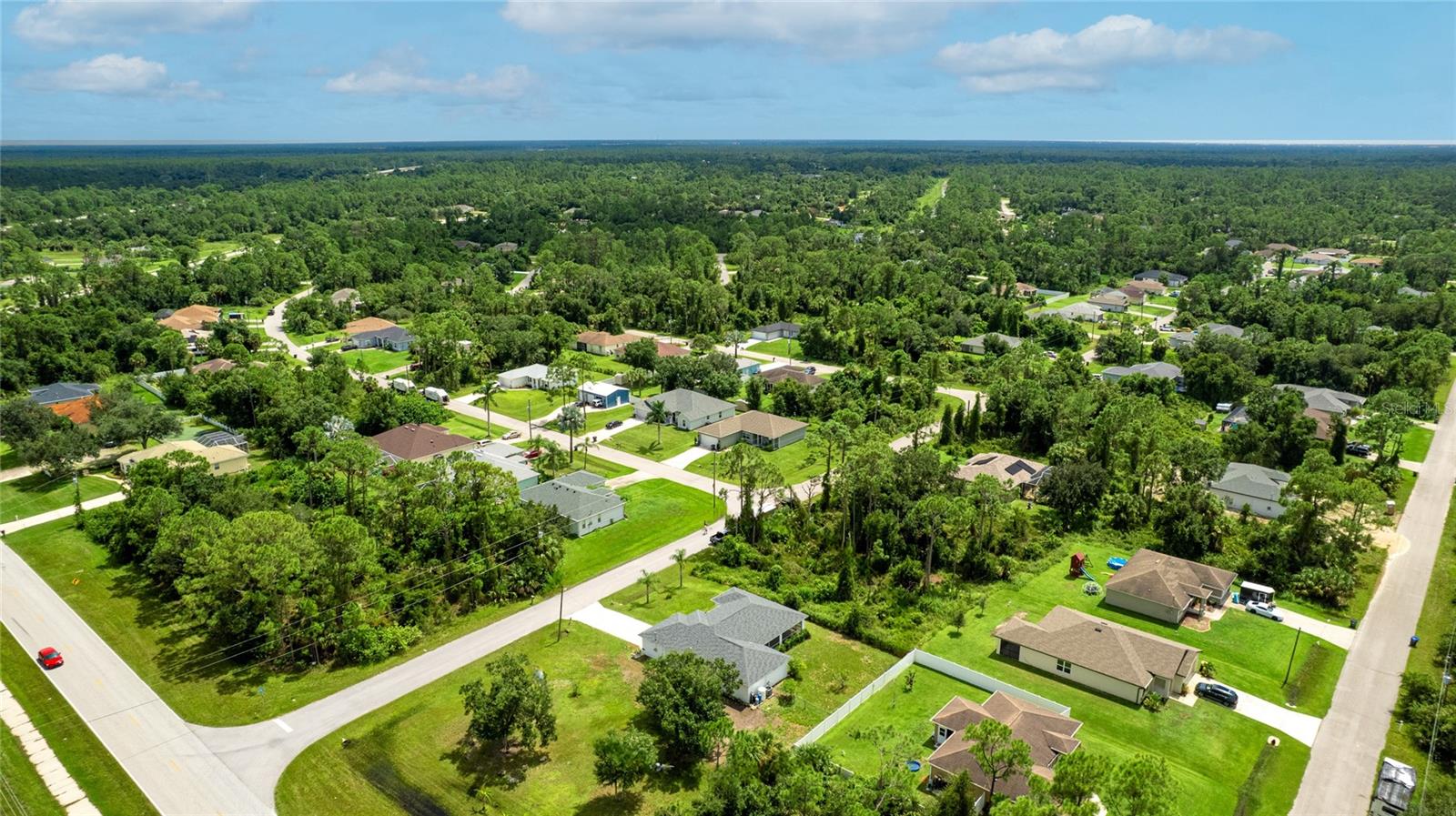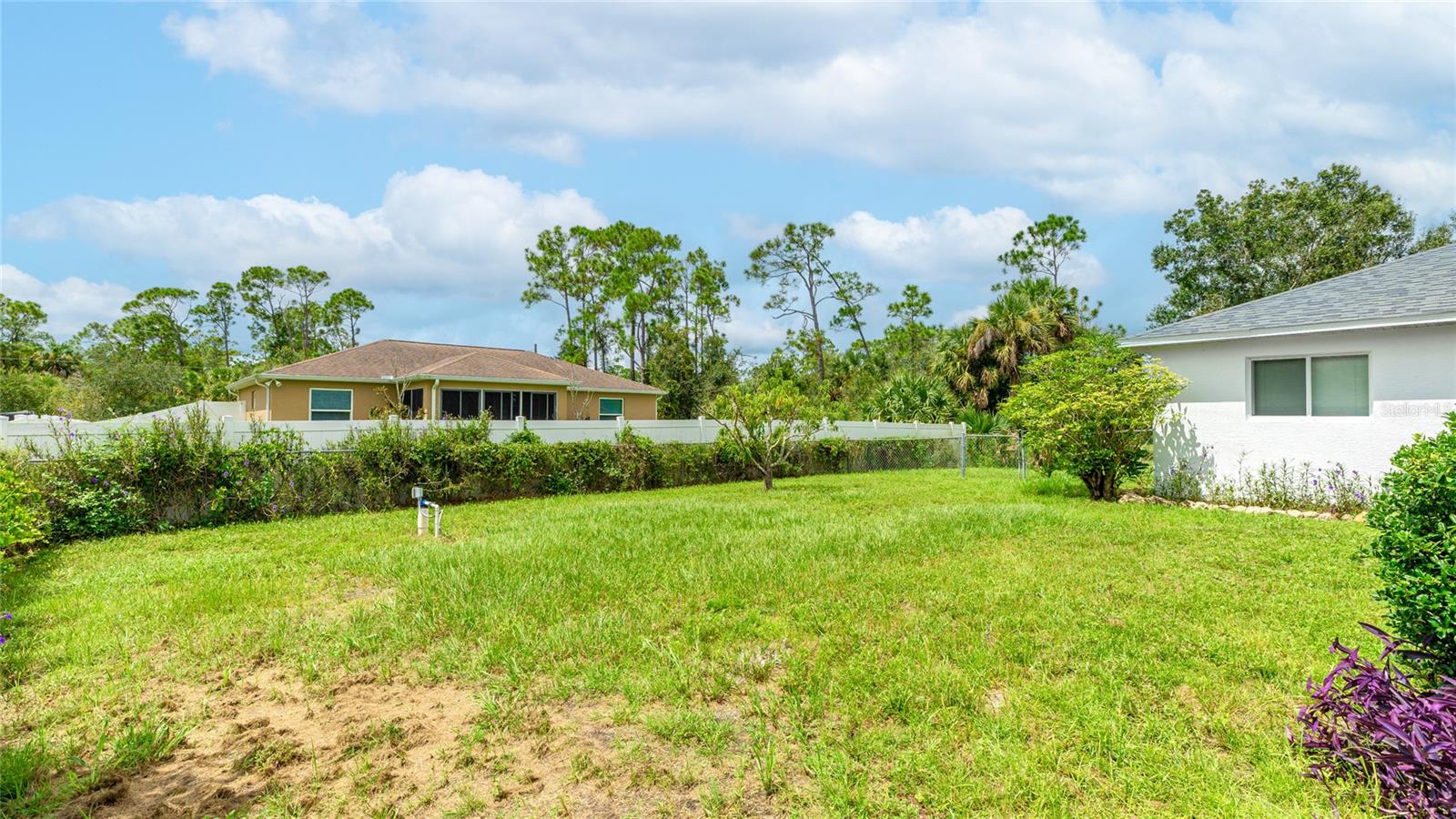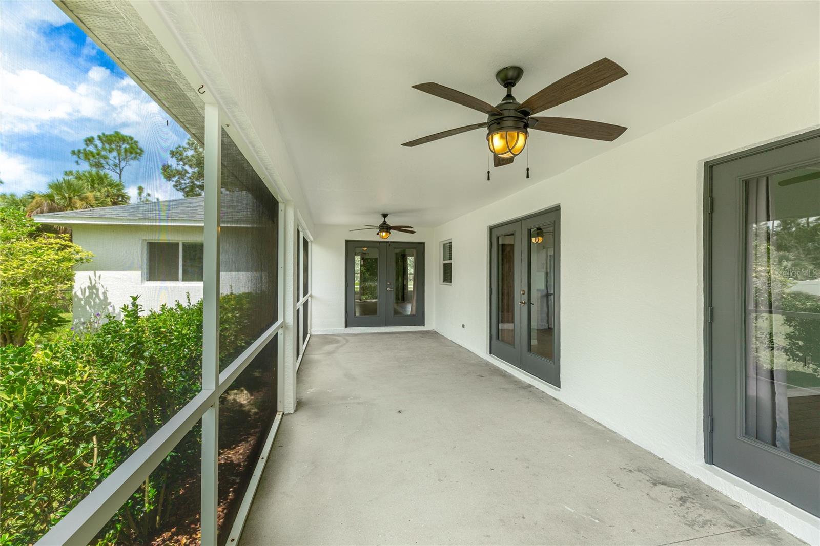 One or more photo(s) has been virtually staged. Set on a rare .51-acre corner lot, this updated 3 bedroom, 2 bathroom home offers just over 1,700 sq ft of move-in ready living with plenty of space to enjoy inside and out. The oversized lot provides privacy, mature oak trees, and fruit trees including peach, banana, and strawberry guava, along with a Moringa tree, all supported by an updated irrigation system with new sprinkler heads. Inside, cathedral and tray ceilings, fresh baseboards, and abundant natural light highlight the thoughtfully designed split floor plan. The central kitchen features refreshed cabinetry, counters, and a pantry, opening seamlessly to both the living and family rooms. The private primary suite includes dual closets, one a walk-in with built-in shelving, and a remodeled ensuite bath with a beautifully tiled walk-in shower. Two additional bedrooms also offer walk-in closets, and the second bathroom has been updated with modern finishes. French doors in multiple rooms lead to an expansive screened lanai with concrete columns and ceiling fans, creating a perfect retreat for year-round outdoor living. Additional features include porcelain tile flooring, a laundry room, and ceiling fans in every room. Major improvements include a new roof in 2023 and a new AC in 2022, giving added peace of mind. Conveniently located near schools, shopping, dining, Myakkahatchee Environmental Park, the North Port Aquatic Center, Charlotte Sports Park, and a short drive to Gulf beaches. **THIS PROPERTY QUALIFIES FOR A 1% LENDER INCENTIVE IF USING PREFERRED LENDER. INQUIRE FOR MORE DETAILS.**
