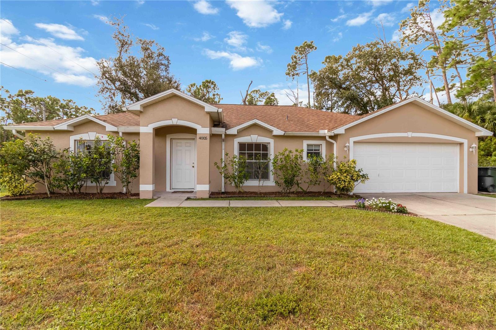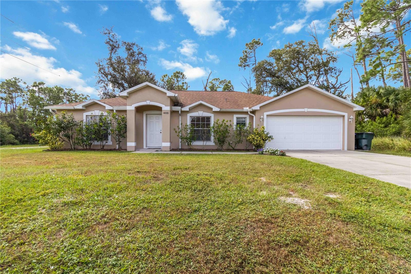 This beautifully remodeled 3-bedroom, 2-bath home, with an optional 4th bedroom or office and a 2-car garage, is perfectly situated on an oversized corner lot in the heart of North Port. Spanning nearly 2,700 total sq. ft., it offers a spacious screened lanai, a paved grilling area, and ample space for a future pool. Recent upgrades include a 2022 roof, newer water heater, and luxury vinyl plank flooring in the bedrooms and bonus room. The kitchen showcases granite countertops, tall soft-close solid wood cabinets, a generous pantry, and premium appliances, while the bathrooms have been fully updated with modern vanities and elegant tile finishes. Additional features include high-speed fiber internet, city water, an irrigation well, and a private backyard ideal for gatherings. With no HOA or CDD fees and located outside a flood zone, this home provides peace of mind and convenience—just minutes from Venice, Sarasota beaches, shopping, dining, and I-75 access. Sarasota Memorial Hospital (opening 2025) and nearby schools. Schedule your private tour today and make this North Port gem your Gulf Coast retreat!