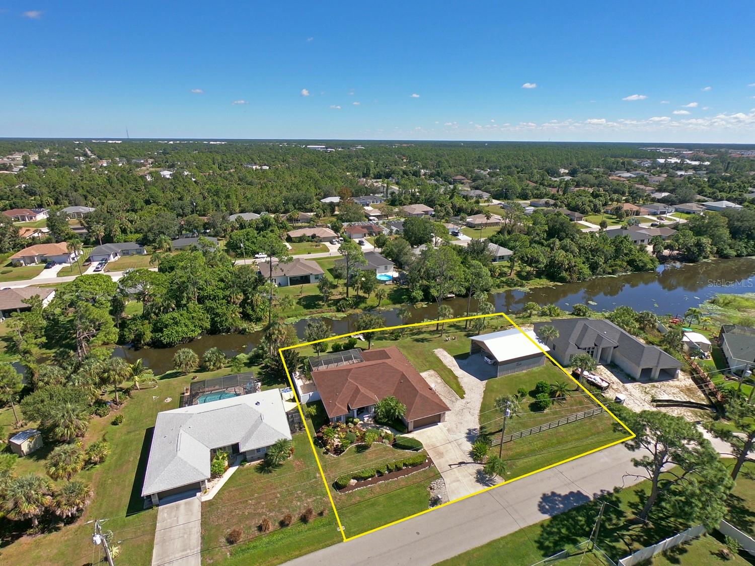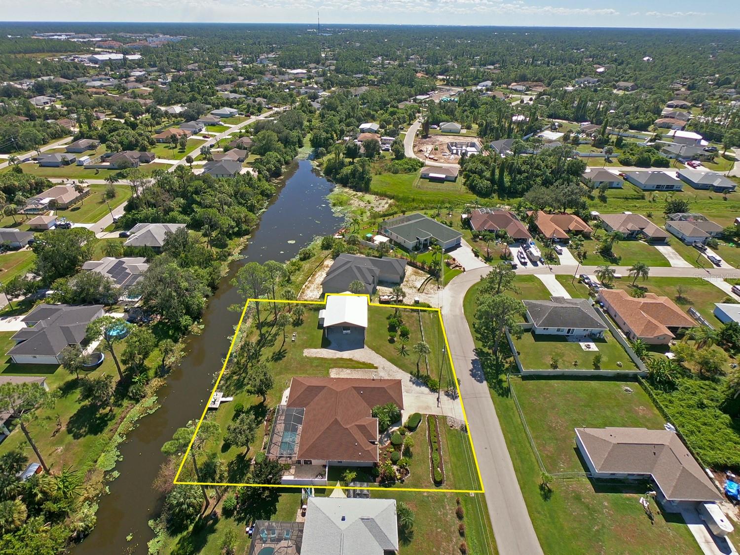 Don't miss your opportunity to enjoy this beautiful, extremely well-kept property boasting a fully updated 3-bedroom, 2 bath pool home with views of your very own canal, a detached 1200 sq foot outbuilding, all on an oversized lot in the growing area of Northport Florida. The outbuilding was added in 2022, which offers storage for not only vehicles, but can also house your boat, RV or ATV. For even more storage, there is even a separate lockable shed. This unique, well cared for home features a new roof, new floating boat dock and new gutters and downspouts, all installed in 2023, with master bathroom updates completed in 2024. If you like entertaining, then you will enjoy the new pavered pool area that was installed in 2020, as well as the pavered and fenced side patio area offering total privacy for the residents. The exterior of the home and outbuilding were both painted in 2024. Owners have even kept the HVAC unit on a quarterly service contract. Other updates include a new pool heater installed in 2020, and a new pool pump in 2023. The owners have ensured this property has been maintained impeccably and it really shows! The front porch and rear lanai ceilings were both finished in a beautiful tongue and groove wood and there is a rear deck perfect for lounging by the canal and watching the sunsets. Call today to schedule an appointment to view this unique, one of kind property.