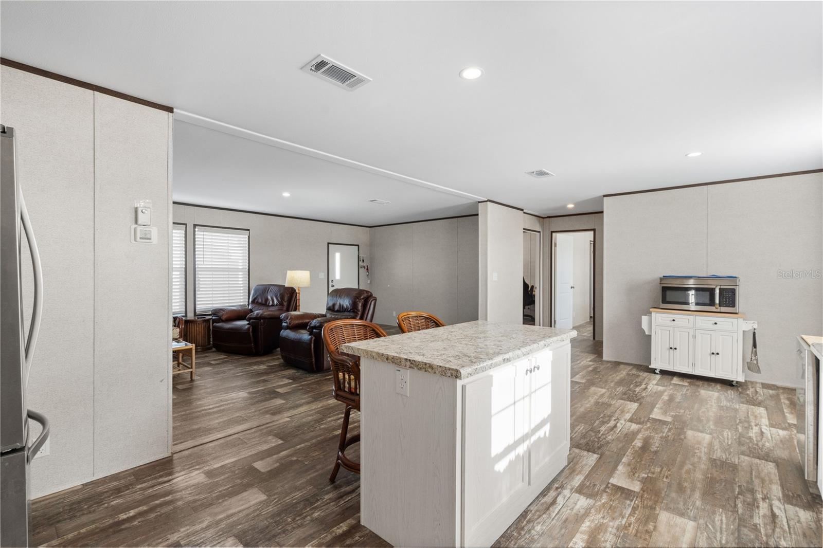 This like-new 2024 Champion manufactured home offers 3 bedrooms, 2 baths, and 1,485 sq ft of comfortable living space in Harbor Cove, a desirable 55+ waterfront community along the Myakka River. As a newer home, it provides the confidence of modern construction and Energy Star–certified efficiency, giving buyers peace of mind and reduced maintenance concerns. Three-bedroom homes are rare here, and this one features an open floor plan, a neutral color palette, and untouched walls that provide a clean blank slate for your personal style. The spacious living room is open to the dining area and kitchen which features stainless steel appliances and center island for prepping and more eating space, a separate interior laundry room houses a full size washer, dryer, and freezer, the large primary bedroom suite has a walk in closet and ensuite bath and two additional bedrooms, each with walk in closets, are near the hall bathroom. Outside find more storage space in the shed under the carport. The home is being sold furnished and includes a golf cart for easy exploring, where you’ll enjoy tropical landscaping and frequent wildlife sightings along the way. With low HOA fees of $175 per month, residents enjoy access to fantastic amenities, including a two-story clubhouse overlooking the marina, two swimming pools, a spa, various sports courts such as pickleball and shuffleboard, a fitness center, craft rooms, and an optional woodworking shop. Harbor Cove also has Gulf access via the river, with boat slip rentals available for only $300 per year. The community is known for its vibrant social calendar offering dances, holiday parties, picnics, card games, entertainment shows, and countless other activities that make it easy to stay active and connected. Conveniently located near shopping, Costco, restaurants, spring training baseball, and beautiful Gulf beaches, this home blends modern reliability, efficiency, and an active Florida lifestyle. Schedule a private tour today!