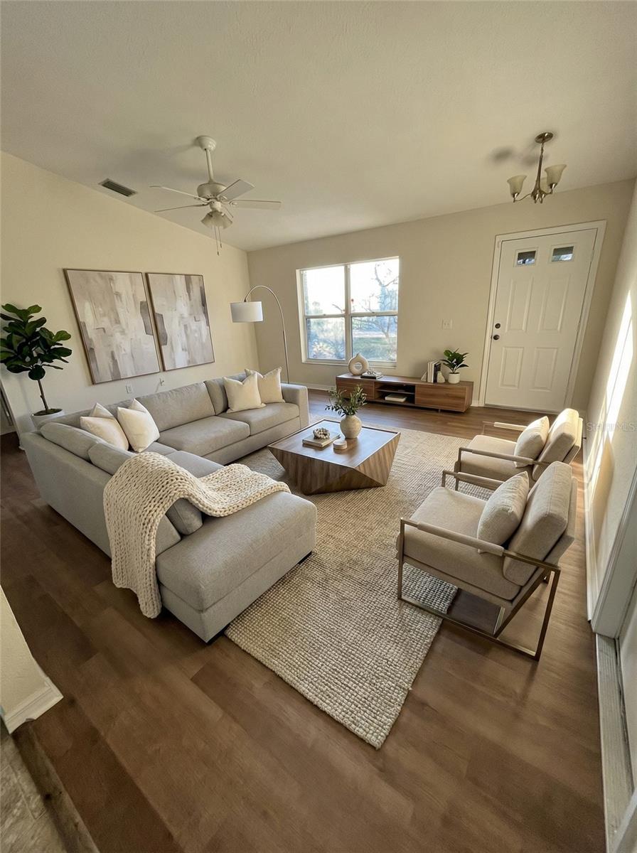 Welcome to this 3-bedroom, 2-bath single-family home in a convenient North Port location. With 1,200 sq ft of comfortable living space and new vinyl flooring throughout, this home is move-in ready and perfect for everyday living. The master suite offers a walk-in closet and private bathroom, while two additional bedrooms share a full bath. The kitchen comes equipped with stainless steel appliances, including a microwave, refrigerator, range, and dishwasher. Washer and dryer hookups are also included for added convenience. One side of the property borders a wooded area, providing a sense of privacy, and the home is just minutes from shopping, dining, and schools. This home combines functionality, comfort, and a great location, making it an excellent choice for buyers looking for a well-maintained, move-in ready property. Some photos have been virtually staged.