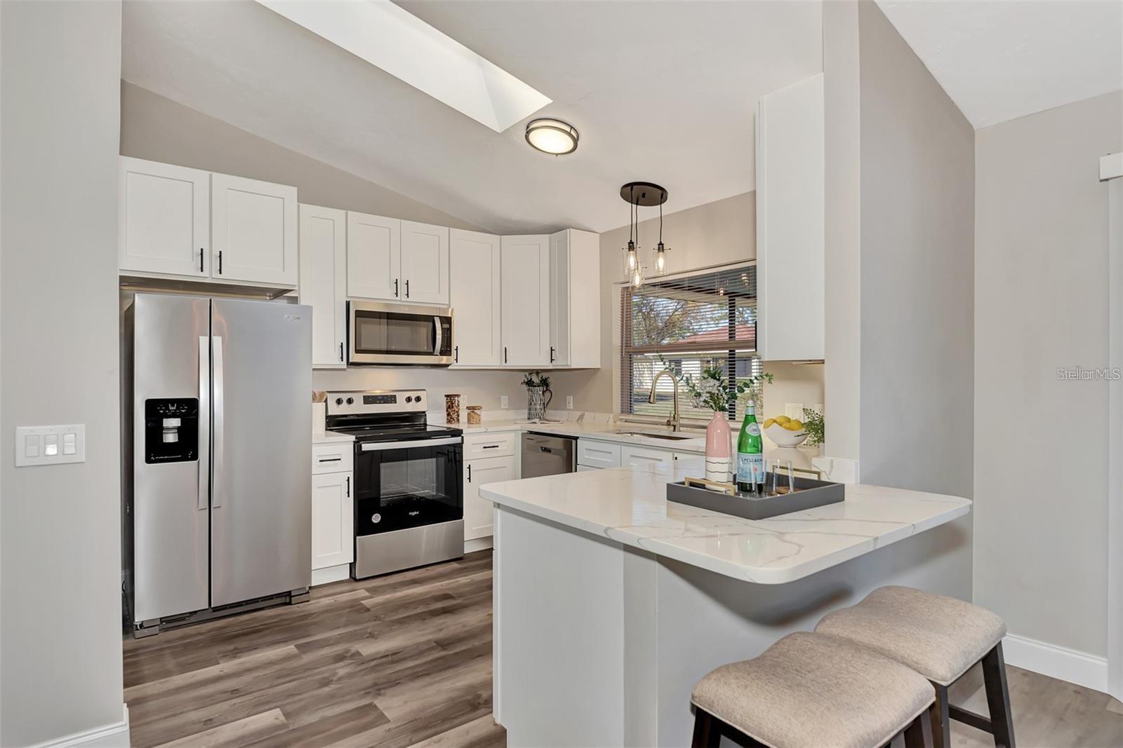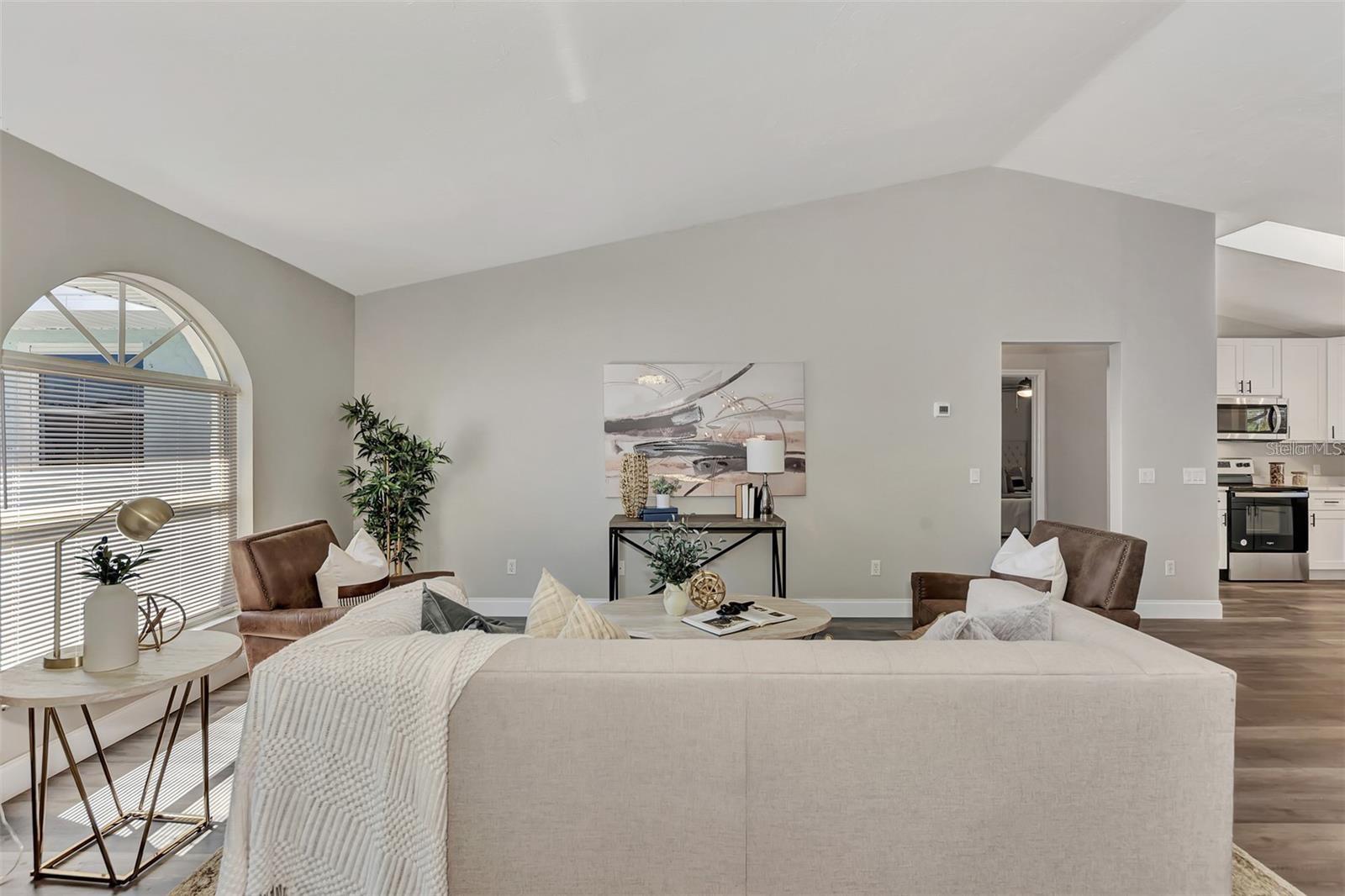 Beautiful Remodeled Home located in the Heart of North Port. Everything is New to include Roof, Luxury Vinyl Plank Flooring throughout, Kitchen Cabinets, Quartz Countertops, Appliances, Bathrooms Showers and Vanities, and New interior and exterior Paint. The home has been Professionally staged to show how much square footage there actually is in the home. Large bedrooms, Vaulted Ceiling in the main living area and Large screened Lanai to enjoy the Florida weather. Indoor laundry room just off of the 2 car garage to store all your toys. This home is better than new because of the large rooms and character of the home. Rarely available on City Water and Septic. Not your typical cookie cutter. Hurry don't miss out on this opportunity.