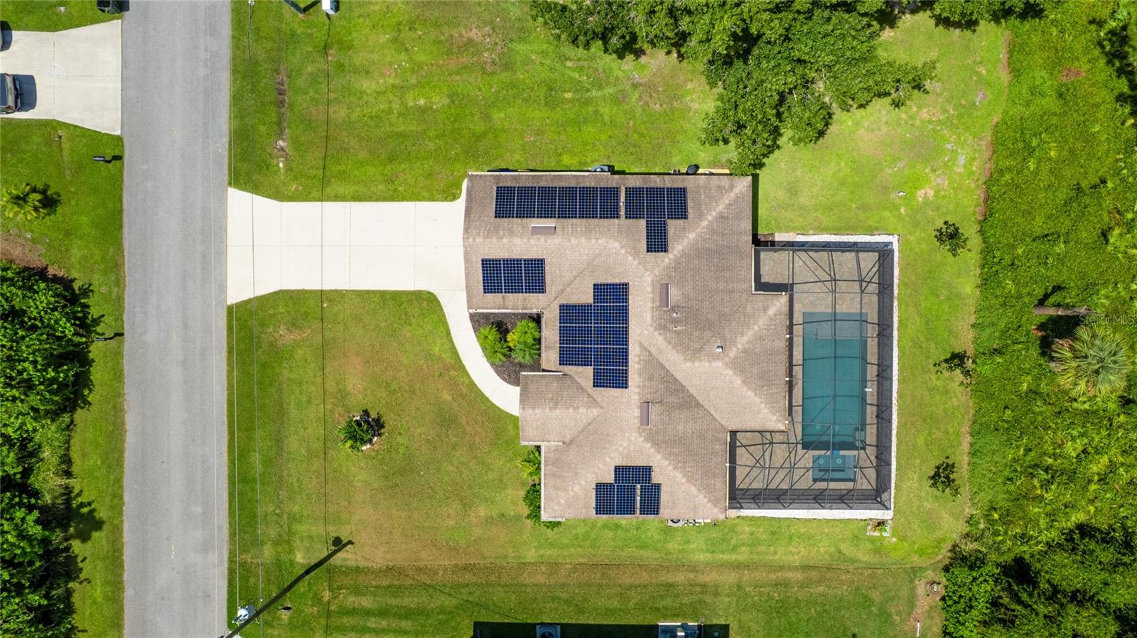DON'T MISS THIS - CUSTOM POOL & SPA, NEWLY CONSRUCTED, LOWER YOUR MONTHLY COST OF LIVING FOREVER-10,000 sq ft homesite -Impact windows and doors -contemporary 1,465 sq. ft., 3-bedroom, 2-bathroom open plan home is the epitome of cost-efficient Florida living. Located in the heart of North Port, this home offers incredible monthly savings with NO HOA or CDD fees, lower insurance costs, and own septic and well systems, doing away with escalating City water and sewer bills. A leased solar system (lease to be transferred to buyer) for significant annual savings - even more in future with FPL approved rate hikes coming. Inside, vaulted ceilings and premium laminate flooring create an open, elegant space perfect for entertaining. The stylish kitchen features stainless steel appliances, soft-close cabinetry, a stylish tile backsplash, under-cabinet lighting for a warm ambiance, and a reverse osmosis system in the kitchen for pure cooking and drinking water. Relax in the luxurious master suite that boasts a tray ceiling, two large walk-in closets, and a contemporary bathroom with a spacious walk-in shower. The second bedroom features an on-trend custom accent wall, adding a uniquely chic touch. Recent upgrades, include a 2024 water heater, water softener and peroxide system, ensuring low maintenance. Impact glass windows provide sound insulation and enhanced hurricane protection, paired with an ADT home security system for peace of mind. The spacious pool area is a true oasis, offering a saltwater pool with multi-color LED lights, a relaxing spa, a tanning shelf for lounging, and in-ceiling Bluetooth speakers. The garage was revamped with custom flooring for a polished look. Professionally maintained landscaping in the sizable yard with an irrigation system provides an opulent setting and robust curb appeal. Just 2 miles from shopping and I-75, this move-in-ready gem offers quick access to Sarasota, airports, and more, making it a rare find for cost-conscious buyers seeking quality and modern comfort.