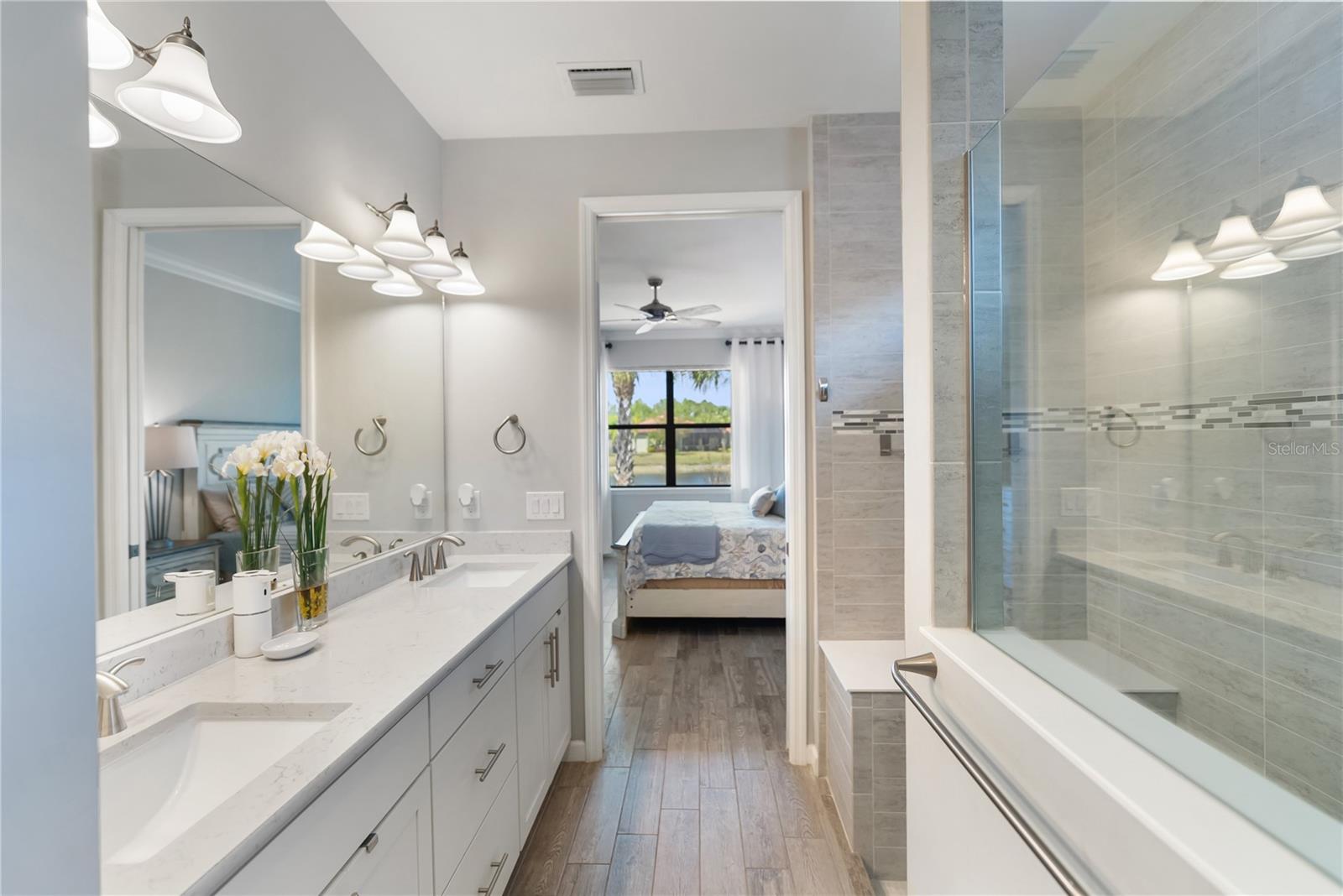 Welcome to Cypress Falls at Del Webb in North Port, a sought-after Active 55+ resort-style community! This beautifully maintained 2-bedroom, 2-bath home with a den/office offers the perfect blend of comfort, style, and Florida living. Step inside to discover tall ceilings, 8-foot doors, crown moulding and tile through out home, an open, light-filled floor plan designed for easy entertaining. The gourmet kitchen features ample soft-close cabinetry, generous quartz counter space with large breakfast bar island, stainless steel appliances and flows seamlessly into the main living area. Enjoy the best of indoor-outdoor living with the 90 degree pocket sliding glass doors that open to an expansive paver lanai overlooking a tranquil pond—the perfect spot for morning coffee or evening sunsets. The spacious primary suite offers a relaxing retreat with a large walk-in closet, dual sinks, quartz countertops and an extended walk-in shower in the primary bath. Designed with a desirable split floor plan, the second bedroom and guest bathroom are located at the front of the home, providing privacy and comfort for visiting family and friends. A versatile den/office provides the ideal space for working from home, hobbies, or additional guest space. ADDITIONAL HIGHLIGHTS: include manual sun shades on rear lanai, a portable generator, a spacious laundry room with extra storage and a convenient utility tub sink. The 2-car tandem garage with epoxy flooring, offering extra space perfect for a golf cart or additional storage. For added peace of mind, the home is equipped with whole-house accordion hurricane shutters for ease and convenience. Located in the vibrant Cypress Falls at Del Webb, residents enjoy resort-style amenities, a clubhouse, fitness center, pool, tennis, pickleball, and an active social calendar. Conveniently located with easy access to I-75 and just minutes from shopping and dining in downtown North Port, historic Venice, and the area's beautiful Gulf beaches.
