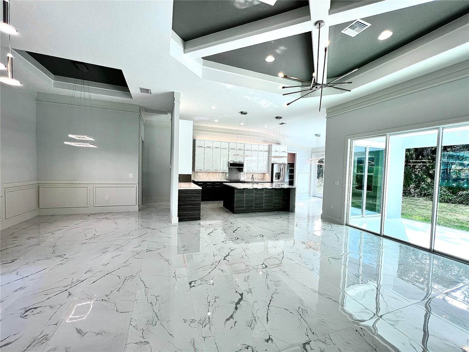 Under Construction. UNDER CONSTRUCTION! Model 2046. 3/2/3 located in a rapidly growing city of North Port. Featuring backsplash in the kitchen, granite countertops and Pergo high end laminate floors throughout, oversized Island with front cabinets, built in features, coffered ceilings, Waynes Coating, crown molding, 11'4 Ceilings, 8' doors and much more. Close to schools, shopping and I75. Perfect starter home, retirement home or home for anyone best describes this open floor plan. Wood soft close cabinets with granite counter tops in kitchen accompanied by stainless steel appliances and dishwasher. Upgraded finishes like recessed lights and ceiling fans make this a very desired model. Master bathroom was customized ti have a large Roman shower and bench. Standard 1 year Warranty and 10 years Builders Bonded Warranty. Pictures are from a similar model and finishes may vary. All measurements should be verified by Buyers agent. $10k Flex Cash Available!
