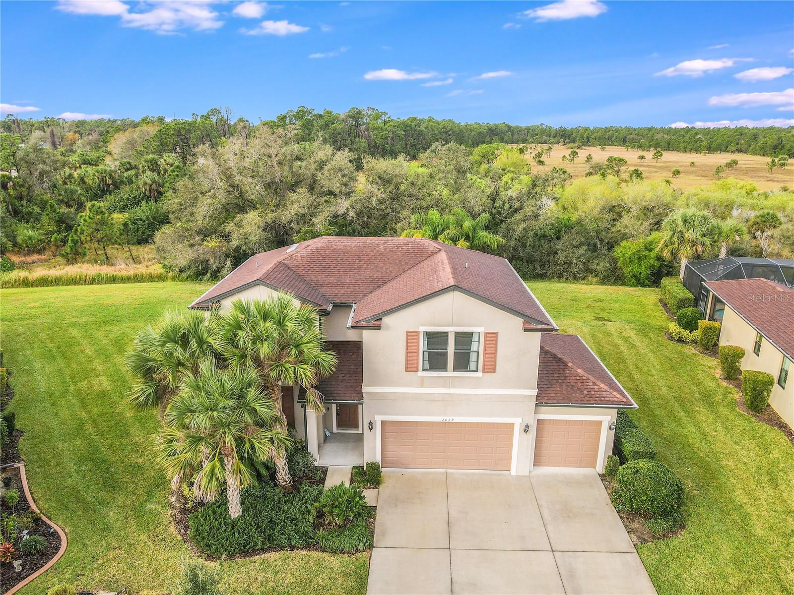 **$5,000 Flooring Credit at closing!** Welcome to Cedar Grove at the Woodlands with it's beautiful homes, landscaping, winding walkways and plentiful lakes. Looking for the perfect family home in a family-friendly community with low HOA fees that covers LAWNCARE? This is the house you have been waiting for - don't miss your opportunity. This unique property offers 4 BEDROOMS PLUS A DEN, 2.5 BATHS, and a 3 CAR GARAGE! Pull into the driveway which gives you a great first impression with the lush tropical landscaping including palm trees, green shrubs and flowers in bloom as you admire the place you'll call "home." Stepping through the front door, the inviting foyer entrance welcomes you - complete with high ceilings, recessed lighting and ceramic tile floors that flow throughout the main living areas making cleaning a breeze and pet friendly. To the left of the entrance, you will find 8ft French doors that lead into a nice sized Den, a space that would make an excellent office, craftroom or 5th bedroom - use your imagination - the possibilities are endless! The gourmet Kitchen is sure to please with everything on your wishlist including granite countertops, wine fridge, dry bar, built-in wine and stemware rack, closet pantry, plant shelves, solid wood cabinets and it's finished off nicely with stainless steel appliances all included in the sale! What more could you want? How about a well appointed island that is highlighted by pendant lights and houses additional seating options with plenty of leg room, a spot that overlooks the main living area so you won't miss out on any of the conversations! The quaint dining area is the picture perfect spot to sit and drink your morning cup of coffee while getting ready to start your day or indulge in a wonderful home cooked meal with the family. The oversized Living Room makes a fantastic gathering spot, accented by the tray ceiling and plenty of natural sunlight shining throughout, this room has a warm and cozy feel, so grab the popcorn, get comfortable and enjoy movie night with the family! Retreat to your luxurious ground-level master suite that is complete with ample closet space, dual sinks, private water closet and a walk-in-shower for the ultimate in relaxation you deserve. The half bath can also be found downstairs, in addition to a large laundry room featuring a built-in folding table, and there are multiple storage options including closets and under stair storage nook! Upstairs you will find the Family Room that could easily be used as a playroom or gameroom and 3 additional bedrooms with generous closets, and a FULL bathroom with shower/tub combo. Through the sliding glass doors, you will find a covered patio overlooking the .24 acre premium lot with preserve and partial lake view, insuring your privacy for years to come! The tranquil views of the wooded preserve provide a sense of calm and serenity that's hard to find. Sit down and relax with a good book, dine outdoors or entertain family and friends in this picture perfect space. Grab some Adirondack chairs and enjoy the daily visits of Sandhill Cranes, turtles and all the other wildlife Florida has to offer. The Cedar Grove community has sidewalks for an easy walk to the COMMUNITY POOL, PLAYGROUND and Bar-B-Que picnic area and offers close access to the interstate, area restaurants, golf courses and beautiful beaches! Make an appointment to see this great home TODAY. Bedroom Closet Type: Walk-in Closet (Primary Bedroom).