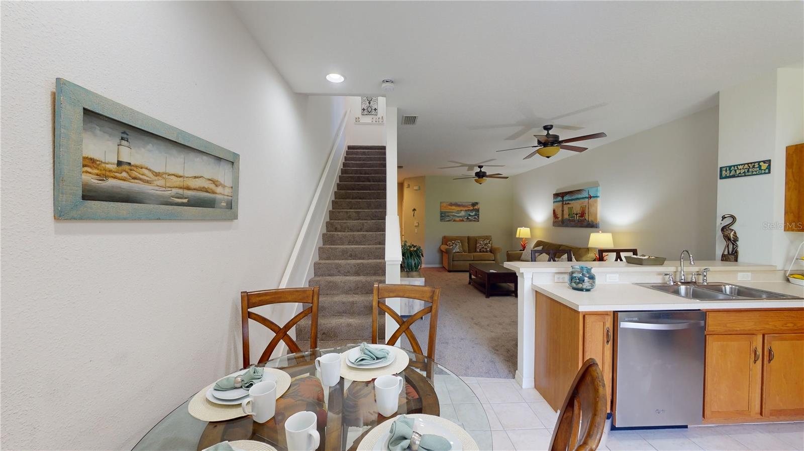 **NEW CARPET!!** Hot water heater & roof 2021 & front storm door w/ retractable window. Welcome to your dream home located in the beautiful community of Towns at Lakeside! This TURNKEY or we empty it out two-story town home offers an optimal balance of comfort & sophistication that would inspire any prospective homeowner to take the leap. This home has been well maintained & comes loaded w/ every amenity you could wish for in a suburban treasure. The 1,268 sq ft of carefully appointed living space is designed to elevate your lifestyle, making it the heart of the home. On the main floor, indulge in the spacious open-concept layout with high ceilings, neutral color carpeting, stylish paint schemes, sleek tile flooring & a quaint half bath/powder room. Entertain guests effortlessly in the modern kitchen w/ brand-new stainless-steel appliances (except the dishwasher), recessed lighting, solid wood cabinets, tons of counterspace, closet pantry & the perfect area to put a kitchen table. Meanwhile, the breakfast bar encourages conversation & togetherness, making meal prep a social event. Stepping out through your triple sliding glass doors is your screened in lanai, where you will enjoy the lush greenery & beautiful wildlife making it the perfect backdrop for outdoor enjoyment. Upstairs, discover your personal sanctuary in the expansive master suite w/ elegant tray ceilings, & a walk-in closet featuring custom drawers & shoe rack. The ensuite bathroom has wood cabinets, a separate toilet area & a large walk-in shower w/ upgraded tile walls & a glass enclosure. Privacy is paramount w/ the well-designed split bedroom layout, ensuring comfort for everyone. The second bedroom offers generous proportions & an abundance of natural sunlight, creating an inviting retreat for your guests as well as their own bathroom featuring a shower/tub combo, wood cabinetry & plenty of space to make them feel right at home. Upstairs is also where you will find your laundry closet w/ a stackable washer/dryer & a built in side shelf, making it the perfect place to keep your laundry room necessities. Other upgrades include NEW hot water heater & roof 2021 & front storm door w/ retractable window. Step outside & be part of a community that values lifestyle & convenience. Engage w/ neighbors at the clubhouse or serve up an ace on the tennis courts. For the family-oriented, rest easy knowing that your home is situated w/in a precinct of great schools, delivering top-notch education & opportunities for the young ones. Residents enjoy low monthly HOA fees of $160 & have access to an array of amenities, including a Plantation-style clubhouse, heated pool & spa, tennis & basketball courts, walking trails & bocce/pickleball courts. Whether you're seeking a vacation retreat or a permanent residence, this townhome checks off all the boxes. For special events & gatherings, the ballroom, billiards room & large meeting room provide ample space. Enjoy the convenience of living in a community that offers sidewalks, city water/sewer services. As a homeowner at 1191 Jonah Dr, you'll experience the harmonious blend of a friendly neighborhood feel w/ the luxury of fine living. Owner is motivated bring an offer move-in ready
