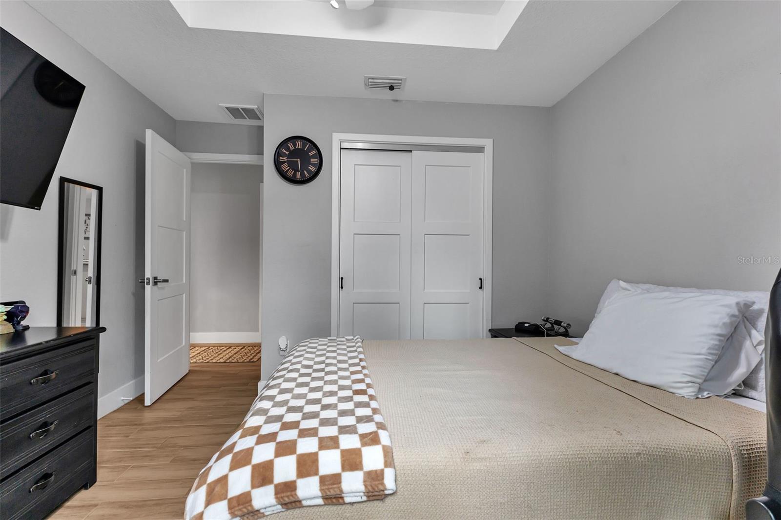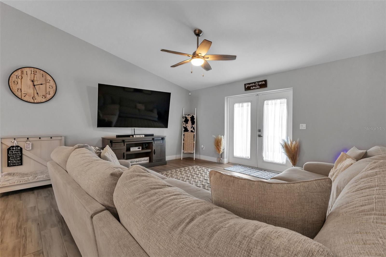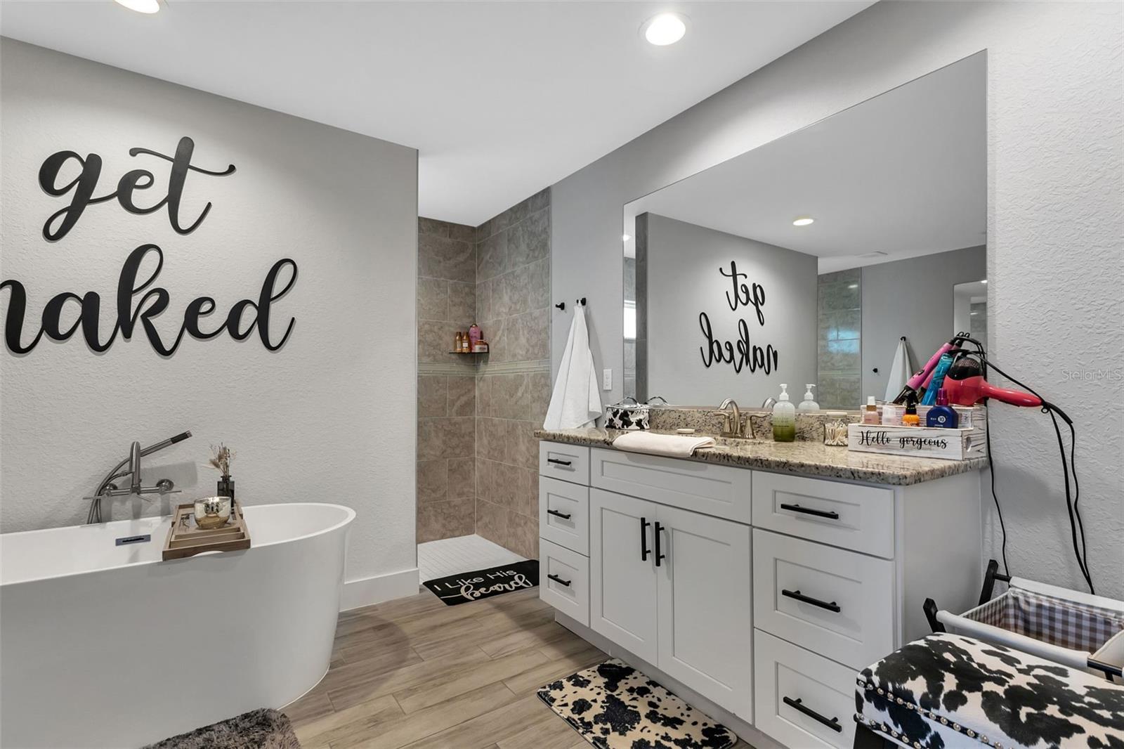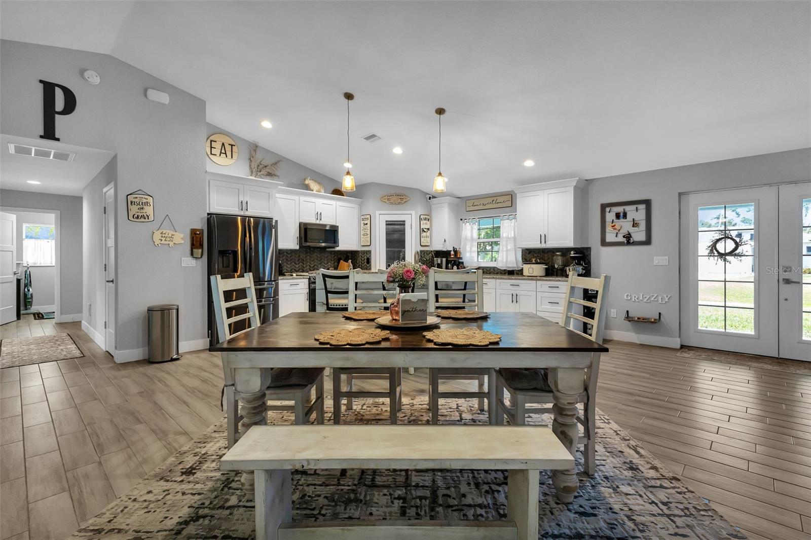 Welcome to your dream home! This custom-built beauty, constructed in 2020, offers the epitome of modern comfort and luxury. Situated on a spacious lot, this 3 bed, 2 bath, 2 car garage home boasts 1,842 square feet under air, providing ample space for gracious living. As you step inside, you'll be greeted by plank tile flooring that seamlessly flows throughout the entire home, creating a sleek and contemporary ambiance. The heart of the home is the stunning kitchen, adorned with granite countertops, upgraded stainless steel appliances, and an expansive island perfect for culinary endeavors. The open floor plan effortlessly connects the great room, dining area, and kitchen, making entertaining a breeze. The master suite is a true sanctuary, occupying the entire left side of the home for ultimate privacy. Here, you'll find his and her walk-in closets, his and her granite vanities, a fully tiled his & her walk-thru shower, a luxurious freestanding tub, and a private toilet area. Coffered ceilings add a touch of elegance, while French doors in the great room lead to the rear lanai, inviting indoor-outdoor living. Outside, a vinyl fence encloses the property, offering privacy and security. Upgraded hurricane impact french doors and windows add a touch of worry-free during hurricane season. Enjoy Florida living at its finest on the expansive front porch, stretching 60 feet in length, or relax on the rear lanai under a truss-engineered roof to grill and enjoy the sunsets. Two additional bedrooms feature coffered ceilings, ample closet space, and abundant natural light, making them ideal for family members or guests. The second bathroom boasts a walk-in shower and dual sinks and granite vanity, providing convenience and comfort for all. With its thoughtful design, high-end finishes, and thoughtful layout, this home offers a perfect blend of style and functionality. Don't miss your chance to make this exquisite residence your own, schedule your showing now! Bedroom Closet Type: Walk-in Closet (Primary Bedroom).