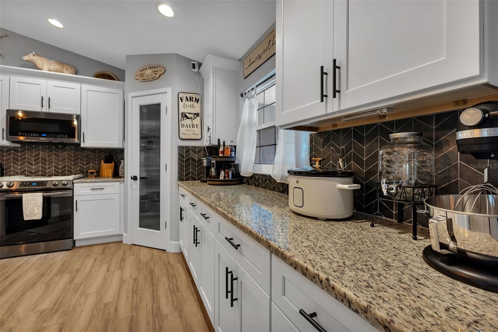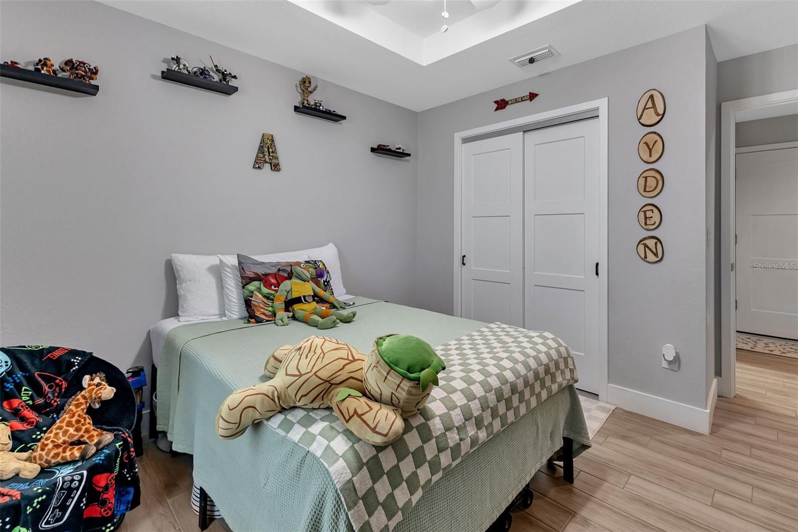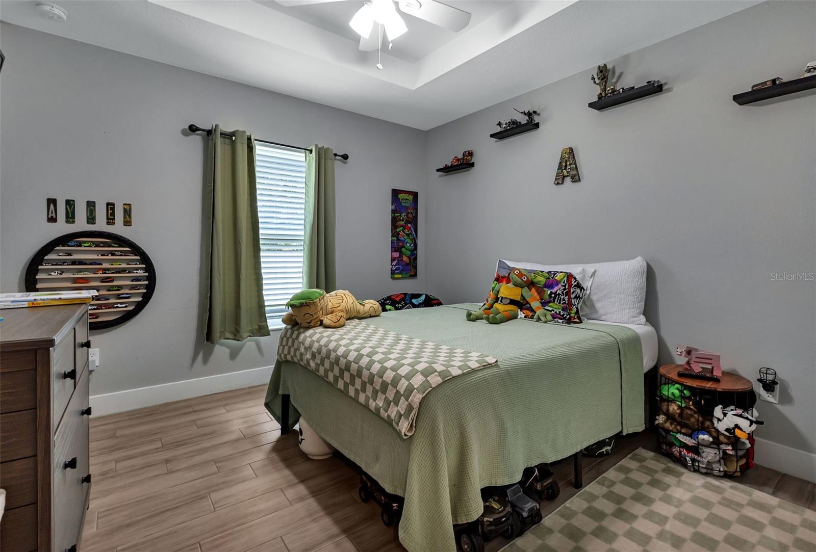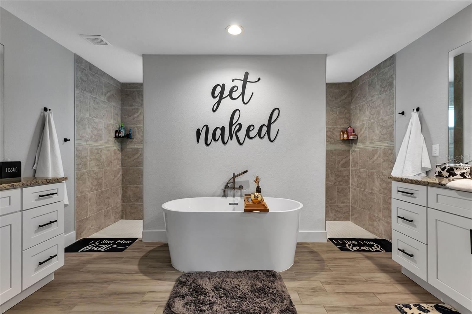 Welcome to your dream home! This custom-built beauty, constructed in 2020, offers the epitome of modern comfort and luxury. Situated on a spacious lot, this 3 bed, 2 bath, 2 car garage home boasts 1,842 square feet under air, providing ample space for gracious living. As you step inside, you'll be greeted by plank tile flooring that seamlessly flows throughout the entire home, creating a sleek and contemporary ambiance. The heart of the home is the stunning kitchen, adorned with granite countertops, upgraded stainless steel appliances, and an expansive island perfect for culinary endeavors. The open floor plan effortlessly connects the great room, dining area, and kitchen, making entertaining a breeze. The master suite is a true sanctuary, occupying the entire left side of the home for ultimate privacy. Here, you'll find his and her walk-in closets, his and her granite vanities, a fully tiled his & her walk-thru shower, a luxurious freestanding tub, and a private toilet area. Coffered ceilings add a touch of elegance, while French doors in the great room lead to the rear lanai, inviting indoor-outdoor living. Outside, a vinyl fence encloses the property, offering privacy and security. Upgraded hurricane impact french doors and windows add a touch of worry-free during hurricane season. Enjoy Florida living at its finest on the expansive front porch, stretching 60 feet in length, or relax on the rear lanai under a truss-engineered roof to grill and enjoy the sunsets. Two additional bedrooms feature coffered ceilings, ample closet space, and abundant natural light, making them ideal for family members or guests. The second bathroom boasts a walk-in shower and dual sinks and granite vanity, providing convenience and comfort for all. With its thoughtful design, high-end finishes, and thoughtful layout, this home offers a perfect blend of style and functionality. Don't miss your chance to make this exquisite residence your own, schedule your showing now! Bedroom Closet Type: Walk-in Closet (Primary Bedroom).