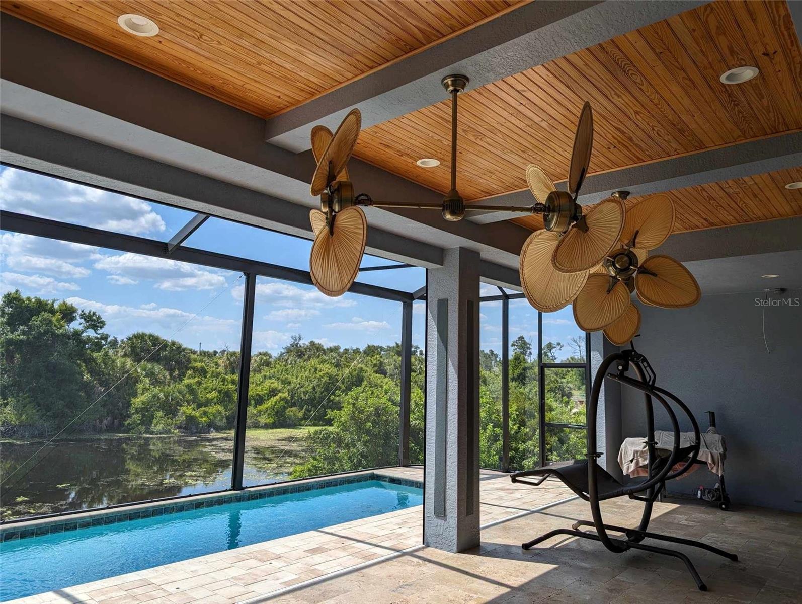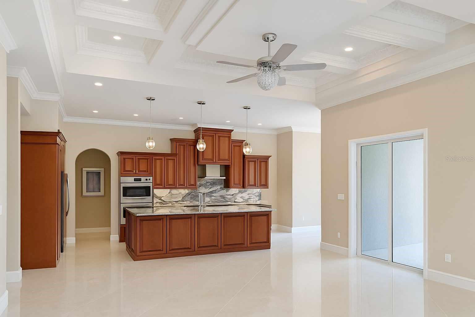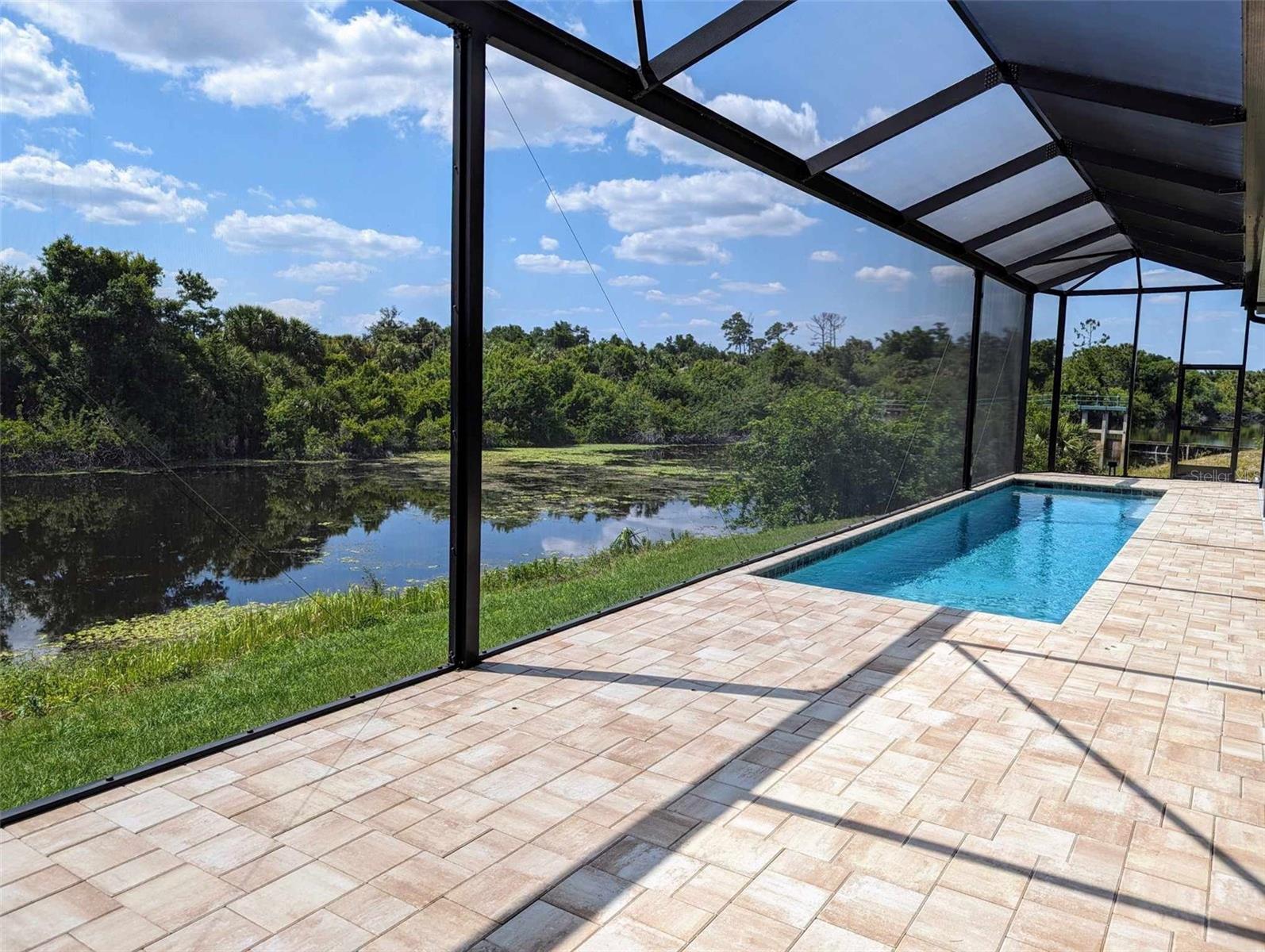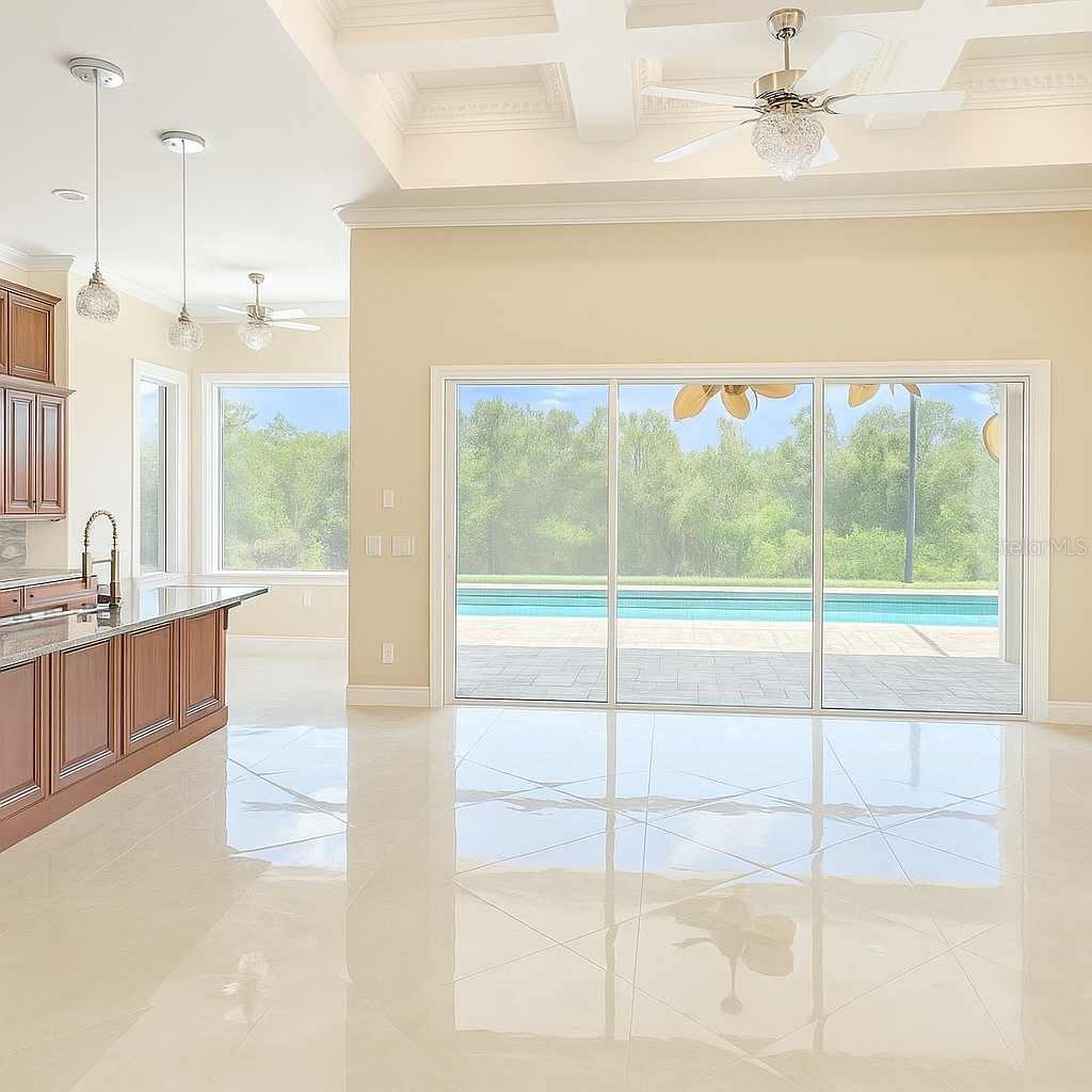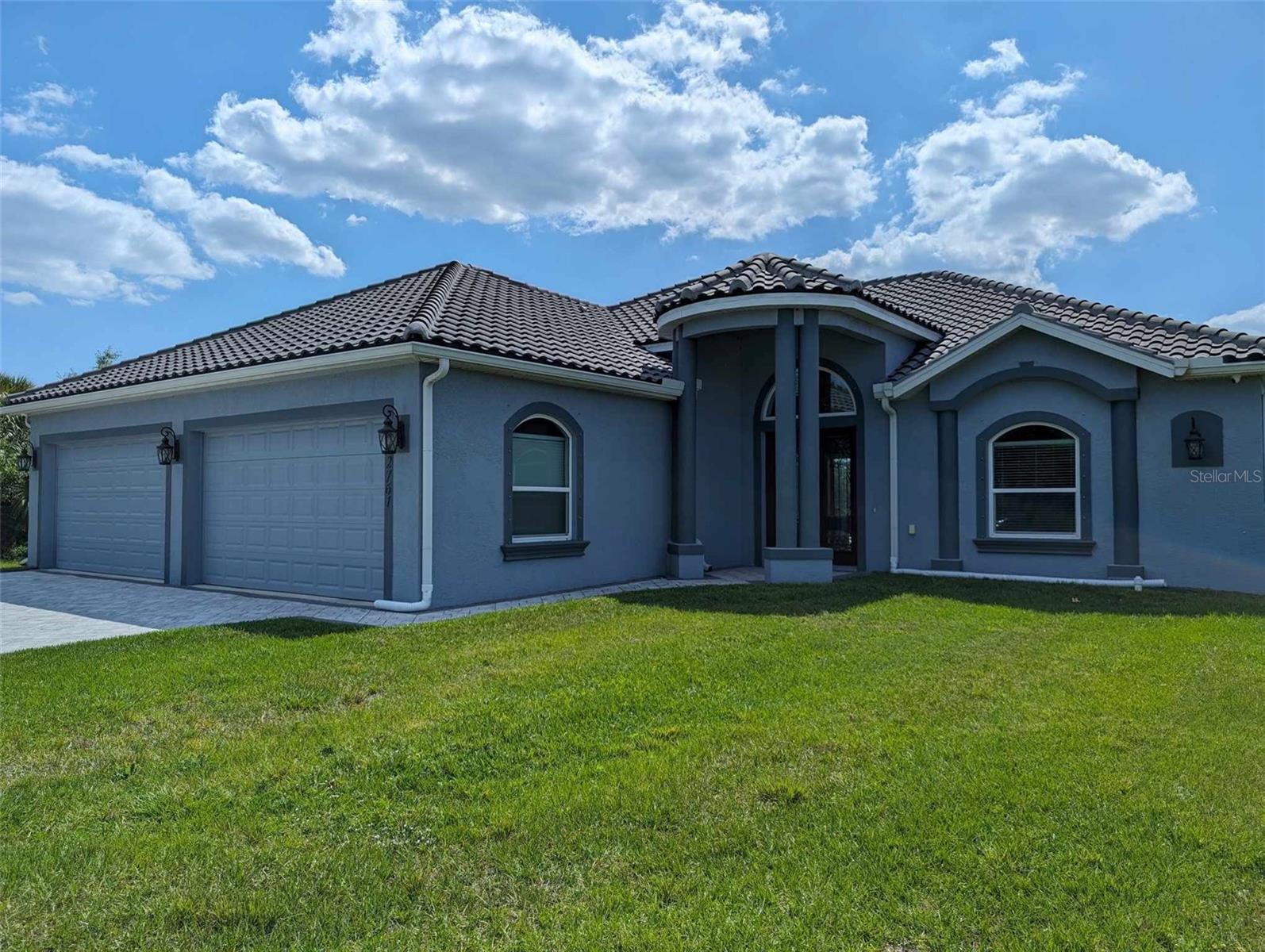 This elegant 3-bedroom, 2-bath North Port home features a 4-car garage, marble flooring, and a resort-style pool overlooking a tranquil freshwater canal. The open layout flows seamlessly from the living and dining areas to a chef’s kitchen with stainless steel appliances, real wood cabinetry, and granite countertops. The master suite boasts dual walk-in closets, a makeup nook, and a spa-style bath with a copper soaking tub and large walk-in shower. Step outside to a spacious lanai with pavers, custom electric sunshades, and a peaceful canal backdrop—perfect for entertaining or relaxing in total privacy. With luxury upgrades throughout, a private setting, this is your chance to own high-end Florida living. Amazing opportunity to score this luxury home at a steep discount! Schedule your showing today!
