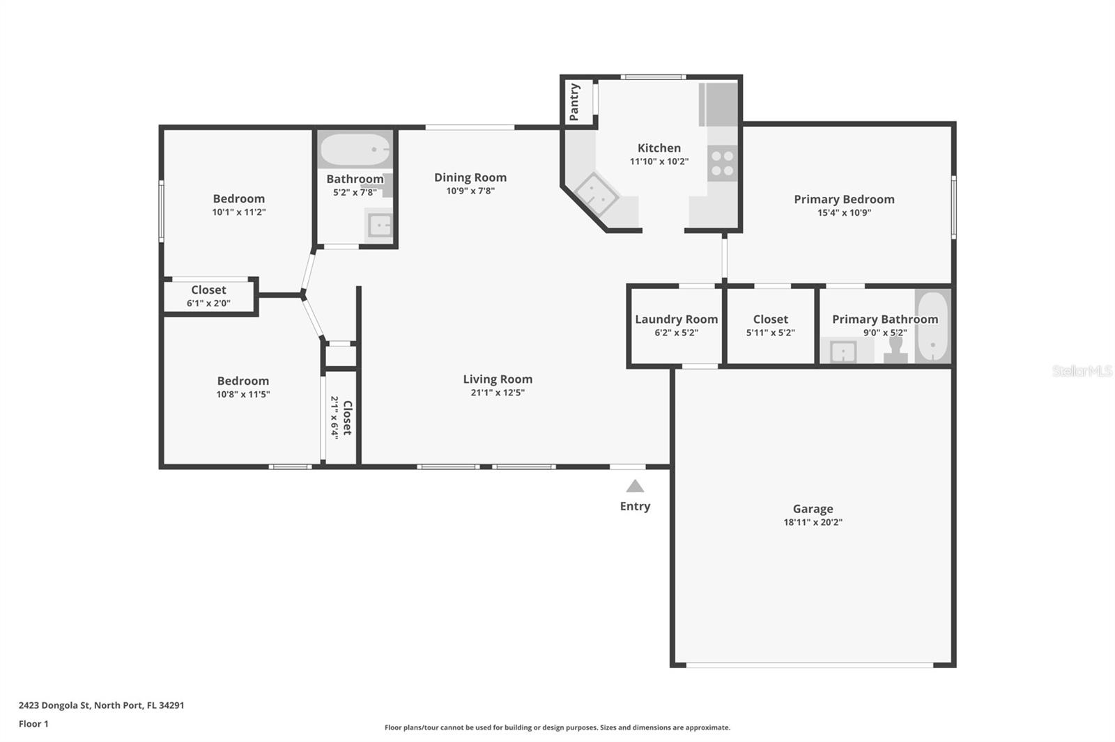 Welcome to 2423 Dongola St, North Port, FL – a beautifully updated single-family home nestled in a vibrant community. This move-in ready gem boasts 1,193 sq. ft. of comfortable living space, featuring 3 bedrooms, 2 bathrooms, and a 2-car garage. Built in 1998, the property includes a well-maintained HVAC system and water heater, both only 4 years old, ensuring energy efficiency and peace of mind. The inviting living room is the heart of the home, complete with a cozy fireplace perfect for gatherings. Enjoy the convenience of quick access to Highway 485, making commutes a breeze. The location is ideal, with nearby amenities including popular restaurants, stores, the North Port Aquatic Center, and North Port High School. Plus, this property is safely situated out of the flood zone. Don’t miss the opportunity to own this modern, well-kept home in a thriving community.