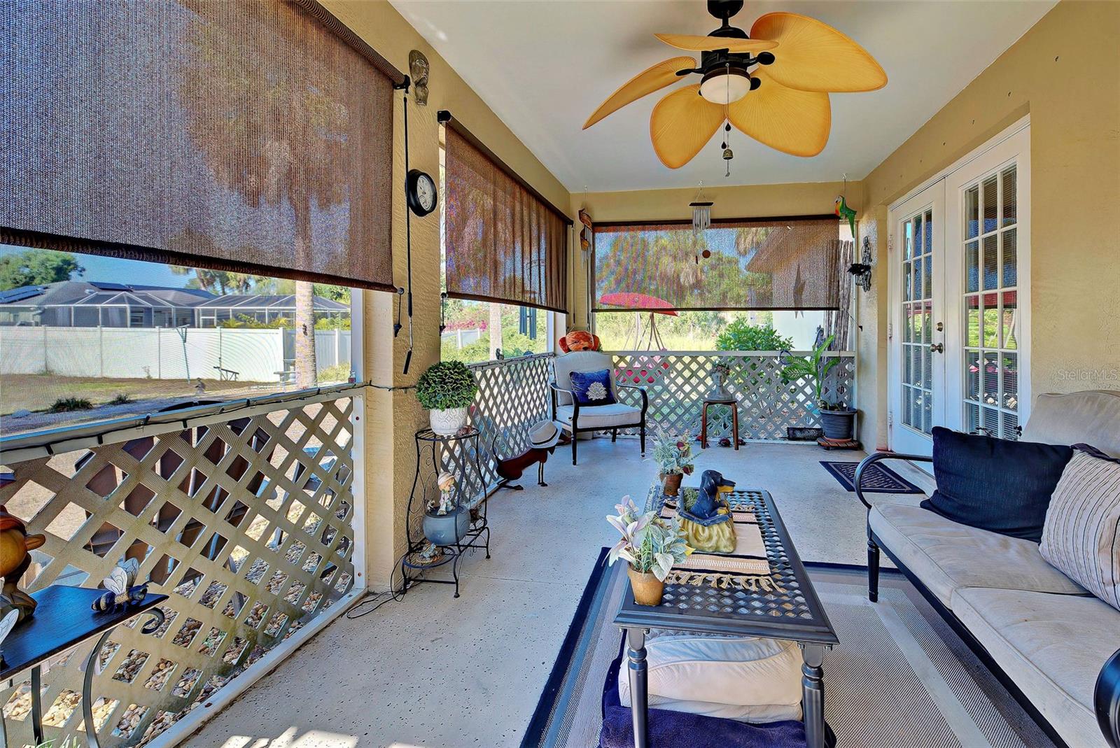 LOCATION, LOCATION, LOCATION!! You'd never guess restaurants, shops and schools are just around the corner! A home that radiates good taste, quiet charm and quality construction (no hurricane damage ever). You'll feel right at home the minute you step into this spacious, wide open 1400 SF 3-bedroom, 2-bath split floor plan with centralized Great Room, kitchen and dining room. Soaring ceilings! The kitchen is designed for convenience and practicality with granite counters, breakfast bar, top-of-the-line stainless appliances, and reverse Osmosis, providing clean, filtered drinking water. Master bedroom with ensuite bath and large walk-in closet. GARDEN LOVER? Must see the beautiful fully-fenced back yard, with planting shed with benches and two sheds (one with electric) to store all your landscaping equipment. Plenty of room for pool! Tasteful upgrades throughout! No corners were cut here when it came to the important things. Upgraded fans and lighting throughout! Fresh new paint inside and out! Gleaming laminate floors in main living areas, carpet in bedrooms. French doors from dining room lead out to a large covered/screened lanai with privacy shades, wired for hot tub/spa. Hurricane shutters for all windows and doors. Gutters all around. Rain barrels. Extra laminate, tile and shingles. Septic pumped 2 years ago. Sentricon termite system. Brand new well equipment (warranted for 5 years). New roof 2022. Brand new range! Attached 2-car garage with lots of extra storage and work bench. Extra insulation in the floored attic overhead. NON-DEED-RESTRICTED! NOT IN FLOOD ZONE! LOW TAXES! WHOLE-HOUSE SURGE PROTECTION! UNDERGROUND UTILITIES! BRAND NEW 3-TON RHEEM AC, WITH 10-YEAR EXTENDED WARRANTY! FOR YOUR ADDED PEACE OF MIND ... Newly installed (04/2025) 50amp generator plug, interlock and air conditioner soft start inside and outside the house to run ac, well for water and electrical power in case of power outage! Comes with extended warranties. Don't delay, schedule your personal showing today! PERFECT FOR FIRST TIME HOME BUYERS, FAMILIES, AND SNOWBIRDS ALIKE! NOTHING TO DO BUT ENJOY!