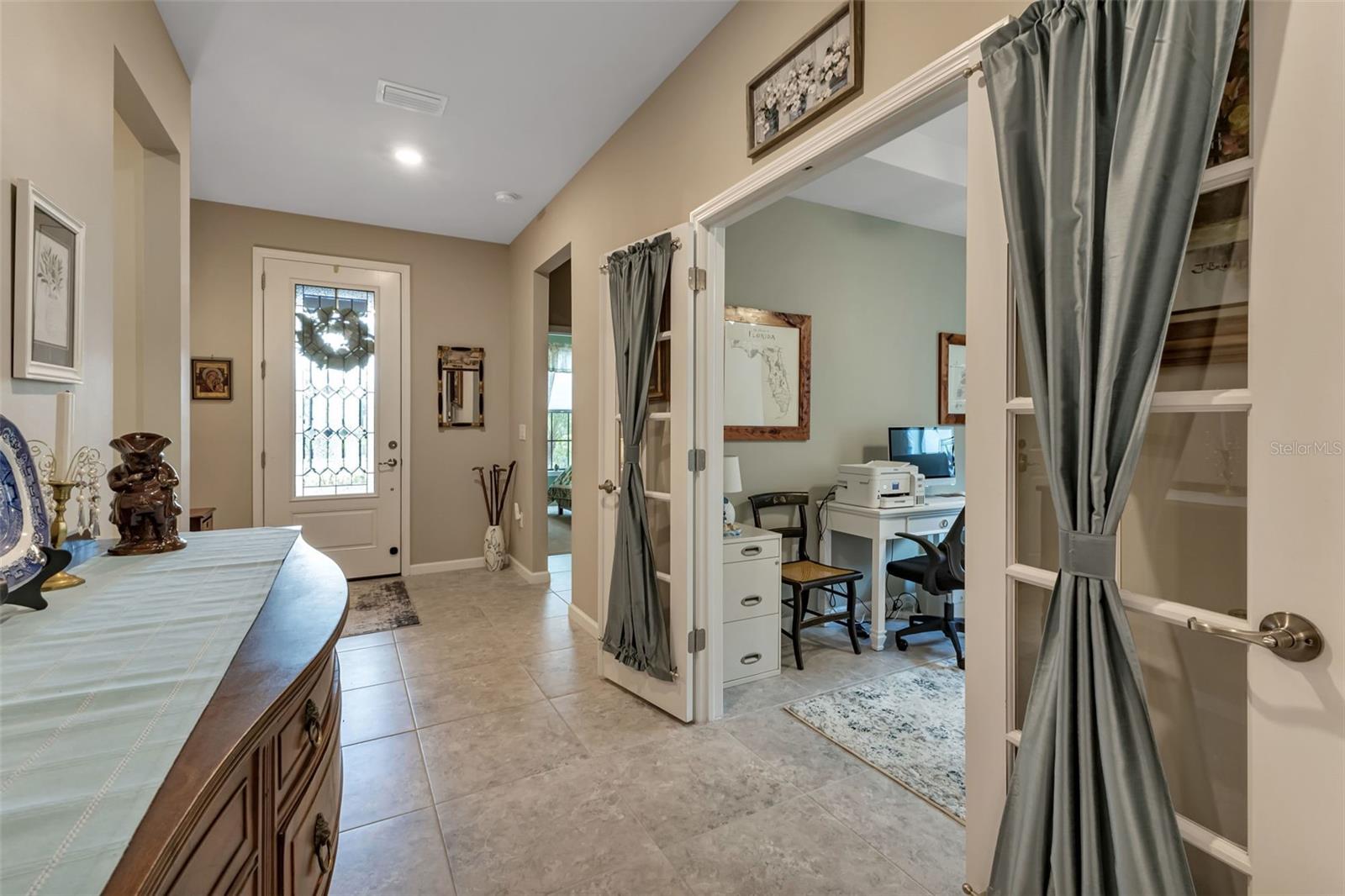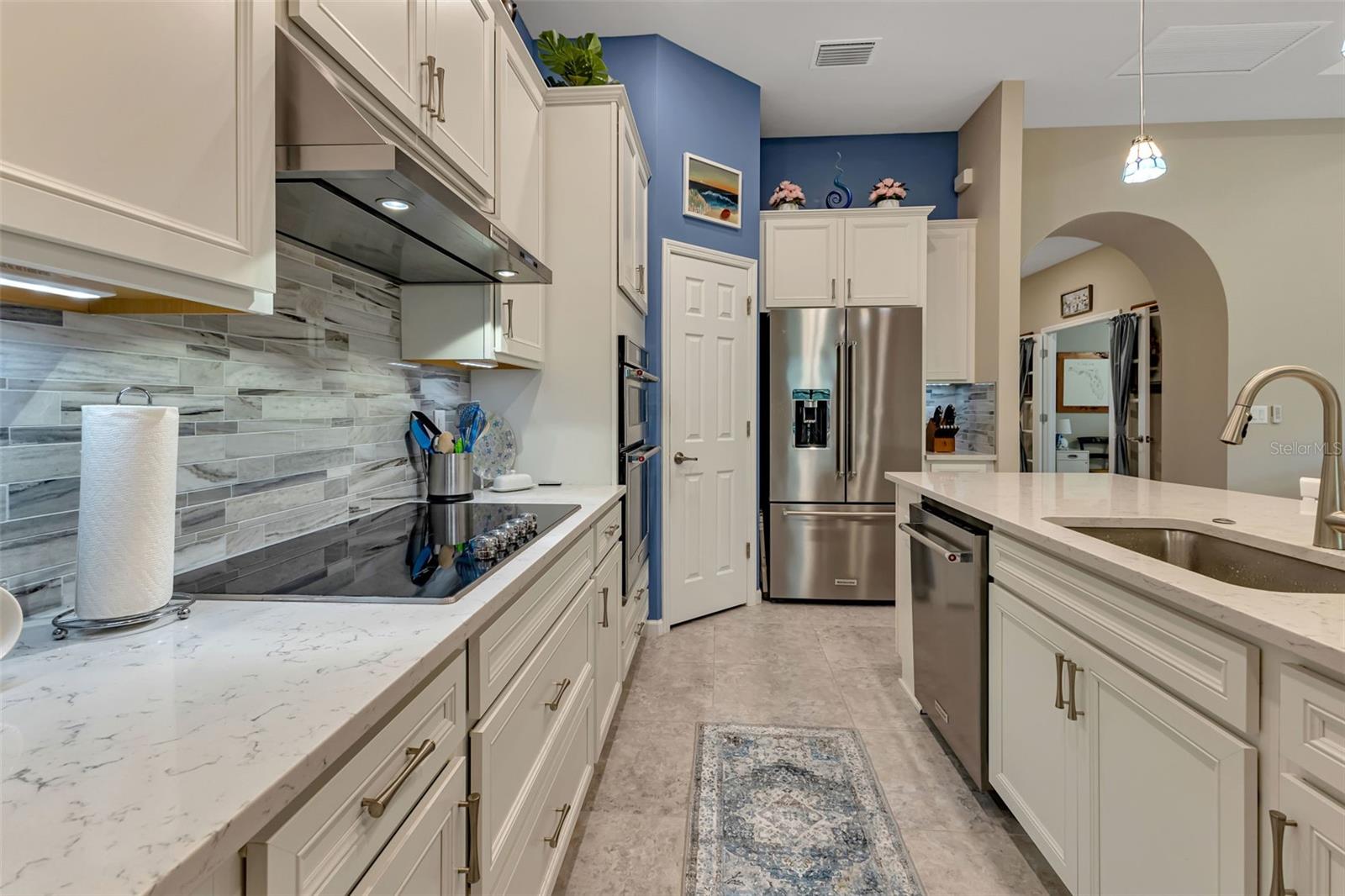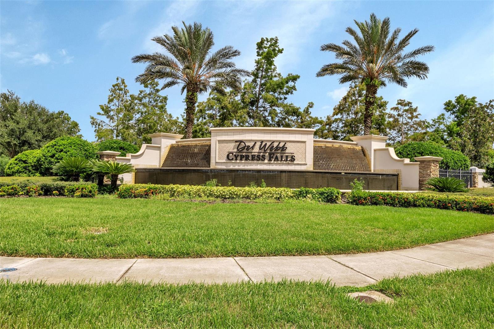 If you're looking for a Beautiful 55+ community this is it! This home was Built in 2021 and is ready for its new owner! Welcome to your dream home in the sought after community of Cypress Falls! This stunning 2-bedroom, 2-bathroom home, with a versatile den, offers modern living at its finest. Step inside to discover an open floor plan that seamlessly connects the living, dining, and kitchen areas. The main living space features tile flooring throughout and a striking coffered ceiling. The living room is bright and airy, with a pocket slider that opens to the lanai, perfect for indoor-outdoor living. The kitchen is a chef’s delight, boasting a center island with storage cabinets on each end, Quartz countertops, stainless steel appliances, and a walk-in closet pantry and a RO filter at the kitchen sink. Adjacent to the kitchen, the dining area provides a cozy space for family meals. The primary bedroom is a spacious retreat with an ensuite bathroom. You'll love the large walk-in shower with a bench, dual sinks, a linen closet, and a private toilet area. The guest bedroom comes furnished, and the guest bathroom includes a convenient tub/shower combo. Additional features include a large laundry room equipped with a full-size washer and dryer, a utility sink, and plenty of storage space. Step outside to the oversized screened lanai, where you’ll find both covered and sun-exposed areas with custom roll down shades. This space offers a serene view of the beautifully maintained flower garden and tropical wooded landscape. It’s the perfect spot to unwind and enjoy the peaceful surroundings. The 2 car garage has an additional refrigerator and hanging racks for additional storage. There's also a water softener serviced by Culligan. The community is designed for active adults, offering amenities with access to a clubhouse, tennis courts, a community center, and two heated swimming pools. There's also community activities, including pickleball courts, bocce ball, billiard, ping pong, horseshoes, library, internet café, crafters, Bridge, poker, euchre, yoga, tai chi, water aerobics and mahjong. Make an appointment today to see this beautiful home in an amazing community!