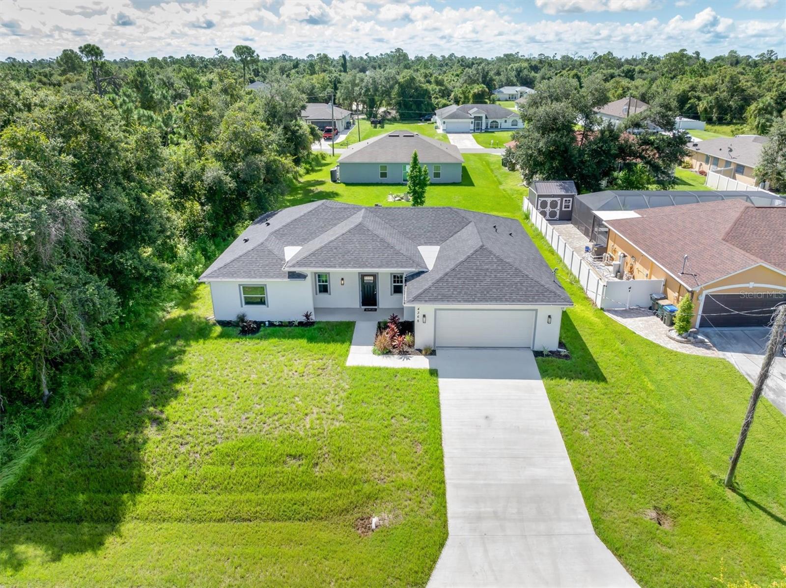 Charming New Construction in North Port, FL on a 1/4 acre! Modern design meets Florida living in this 1841 sq ft home. This brand-new 3-bedroom, 3-bath home offers the perfect blend of style and durability. Featuring luxury vinyl plank flooring throughout—no carpet in sight—this home ensures easy maintenance and a sleek, contemporary look. Stainless steel appliances. The high ceilings enhance the spacious feel, while impact doors and windows provide peace of mind and energy efficiency. With a 2-car garage and situated in a growing community, this property is ready to become your dream home. Don’t miss out on this gem!