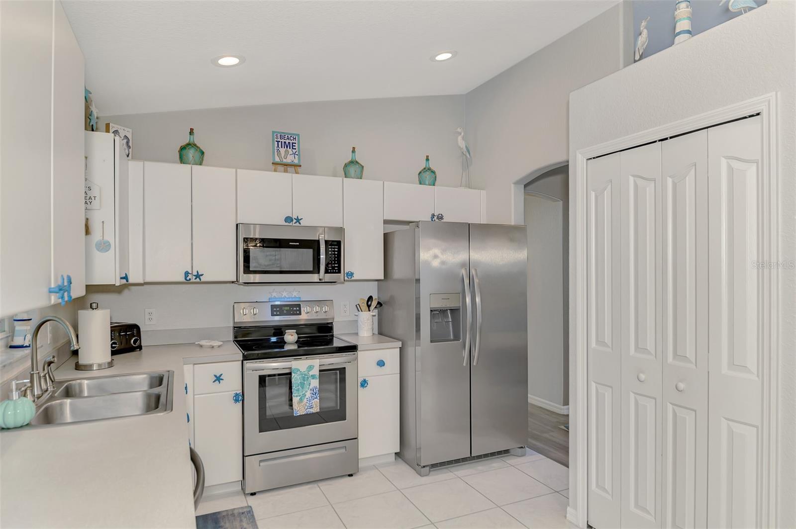 You’ll love this dream coastal retreat! This charming 3-bedroom, 2-bath home with a 2-car garage is a true gem tucked away in a lush, tropical paradise. Imagine yourself living in this meticulously maintained property, surrounded by a vibrant landscape of swaying palm trees, colorful flowering shrubs, and privacy bamboo planted along the back white vinyl fence. At night, the multi-colored rock solar accent lighting adds a magical touch to both the front and back yards, making every evening feel like a special occasion. Step inside to discover a bright and airy interior featuring soaring cathedral ceilings and a spacious great room plan. The built-in entertainment area includes a stunning color-changing light display and is perfect for showcasing your favorite decorative items or fish tank. This home is loaded with upgrades, including a brand new roof (2024), accordion hurricane shutters, a newer A/C system (2022), stainless steel appliances (2021), and a Rainsoft water softener. The heart of the home is the inviting great room that seamlessly connects to the 29' covered lanai patio and a huge screened pool area. Imagine enjoying sunny days and relaxing nights by the heated in-ground pool, surrounded by a pool cage adorned with enchanting color-changing solar lights. Evenings here are truly spectacular!. The master bedroom is a tranquil retreat with ample space for your furniture, a large walk-in closet, a ceiling fan, and a private bath featuring a walk-in shower. Two additional guest bedrooms offer comfort and style, each with ceiling fans and easy access to the guest bath with a tub/shower combination. This home also boasts modern conveniences like keyless entry and a covered awning on the exterior for sheltering equipment. Located in North Port's most sought-after neighborhood, you're just minutes from Wellen Park, Coco Plum shops, Sarasota Emergency Hospital, Port Charlotte Town Center Mall, and the Sunseekers Resort. The seller takes great pride in this property, and it shows! Whether you're seeking a permanent home, a seasonal getaway, or an AirBnB, this property is perfect. Furniture and a new electric lawn mower are negotiable. Don’t miss out—call today for your private viewing!