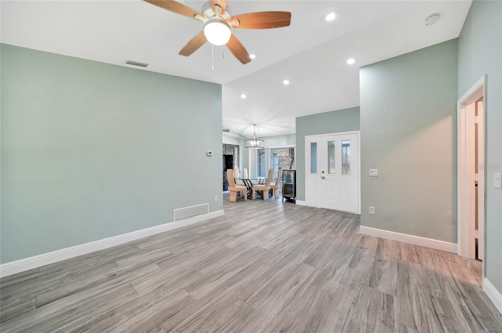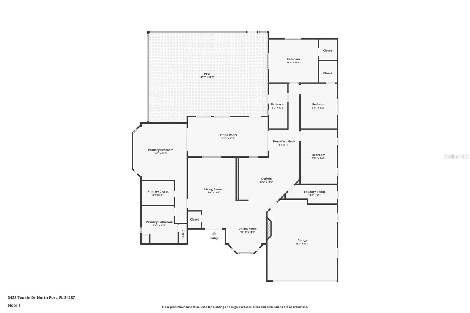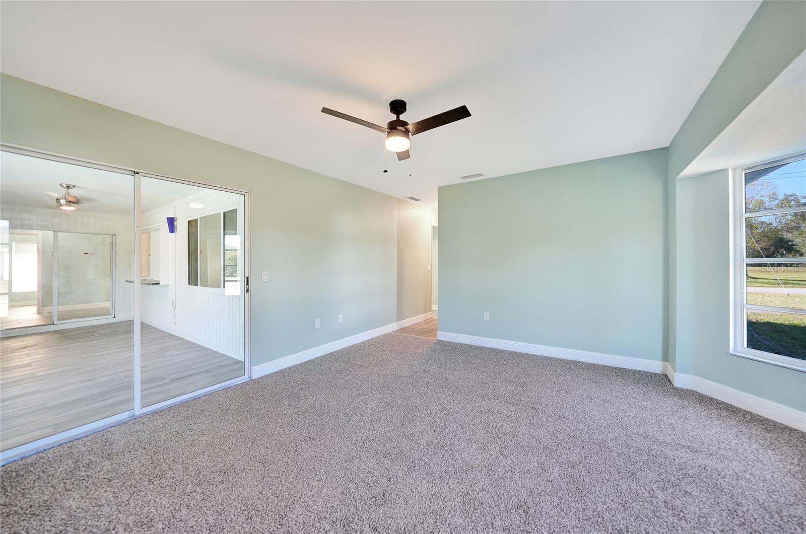 Welcome to your North Port dream home, where comfort and functionality meet with canal views! This charming double lot property, with 160 feet of canal frontage, offers 1,812 sq/ft of thoughtfully designed living space, including four spacious bedrooms, two modern bathrooms, a family room, and a versatile bonus room. As you step inside, you'll immediately appreciate the open floor plan, featuring elegant porcelain tile flooring throughout, complemented by plush carpeting in the primary bedroom. High ceilings, new lighting fixtures, and fresh interior paint create a warm, inviting atmosphere. The heart of the home is the kitchen, complete with stainless steel appliances (except refrigerator), butcher block countertops, and sleek white shaker-style cabinetry. It overlooks the great room and formal dining area—ideal for entertaining or enjoying family meals. The layout seamlessly connects the main living spaces with the bedrooms, ensuring a flow that's perfect for both relaxation and hosting guests. The primary bedroom is a serene retreat, offering plenty of room for a king-size bed and additional furnishings. It features a spacious walk-in closet and a beautifully updated en-suite bathroom with dual vanities, modern fixtures, and a walk-in tiled shower. Two additional bedrooms are bright and spacious, offering privacy and comfort for family members or guests. A flexible bonus room can serve as a third bedroom, office, or den—tailored to your needs. The second bathroom is conveniently located near the additional bedrooms and mirrors the stylish design of the master bath. Relax and unwind in the enclosed lanai area, or step outside to soak up the Florida sunshine in the screened lanai, complete with a spa, pool and a brand-new screen enclosure. This home also features a two-car garage for ample parking and storage, is situated on a double lot with additional driveway and parking pad, and shed adds extra storage for your gardening tools or outdoor equipment. Located in the rapidly growing and vibrant community of North Port, this home offers proximity to sandy beaches, the renowned Warm Mineral Springs, shopping, dining, entertainment, and convenient access to I-75 and US-41