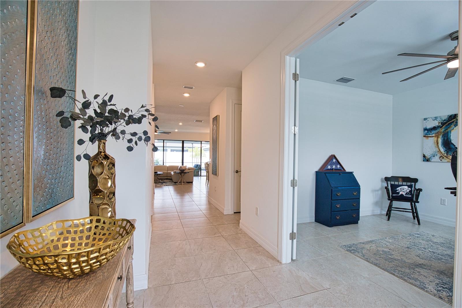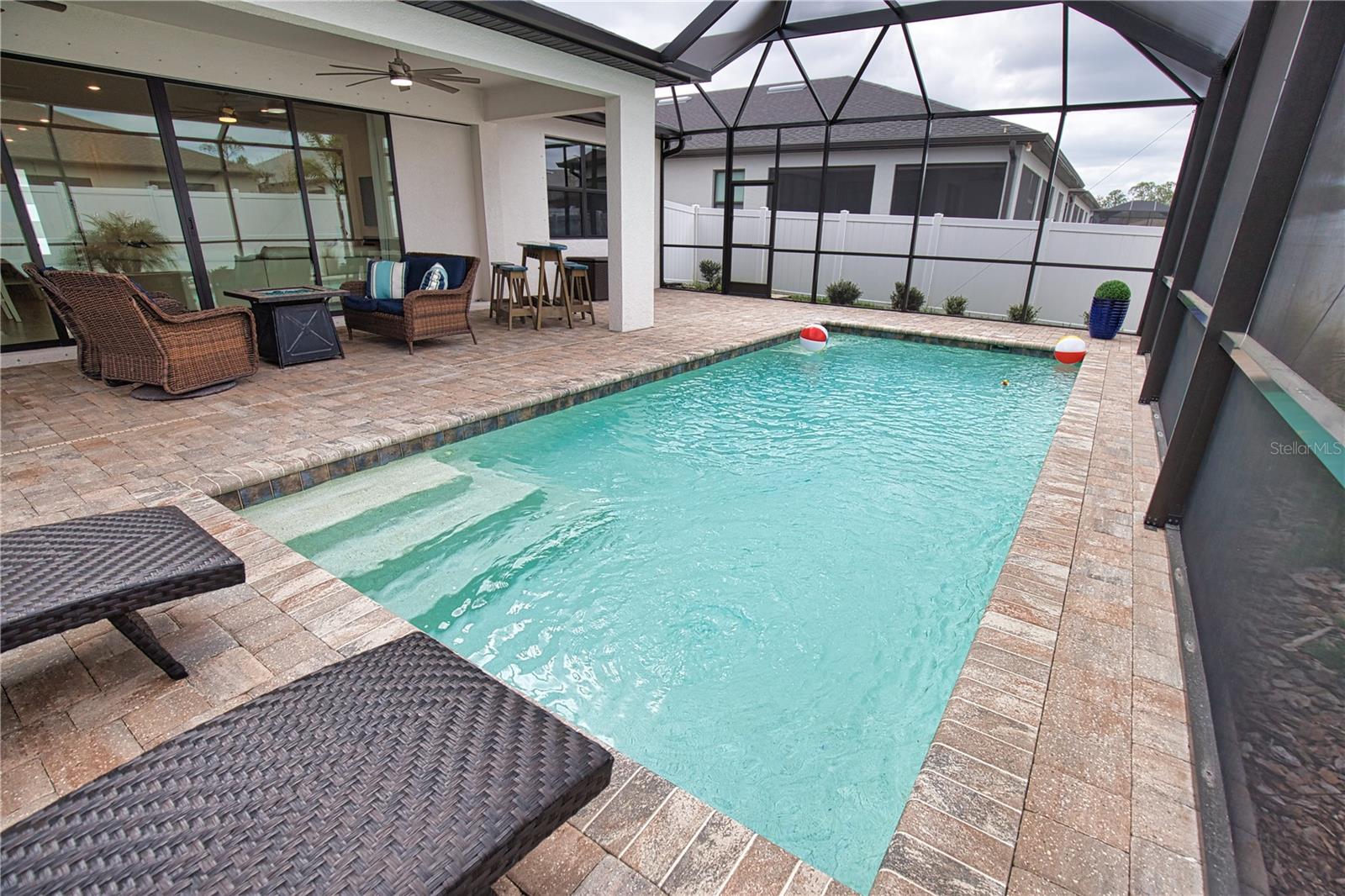 Immaculately maintained 2023-built Whitestone in Cedar Grove with a southwest-facing lanai and screened-in pool! This stunning two-story home features a first-floor owner's suite with a walk-in shower, soaking tub, dual sinks, private water closet, and a spacious walk-in closet. The open-concept kitchen with custom pull out drawers, café, and gathering room create an ideal space for entertaining, while the enclosed flex room offers versatility as a home office, gym, or playroom. Upstairs, you'll find three additional bedrooms, full baths, a generous loft, and oversized closets throughout, providing plenty of storage space. Notable Upgrades: KitchenAid appliances, epoxy-coated garage floor with added shelving, generator transfer switch with outdoor power inlet, plantation shutters, and a fully fenced backyard with privacy fencing and Foxtail palms. Enjoy an exceptional lifestyle with fantastic community amenities, including a sparkling pool, playground, and basketball court—all just steps from your door. With lawn care included in the HOA, your weekends are yours to relax and unwind. Commuters will love the easy access to I-75 via the Toledo Blade exit, and a X flood zone! Don’t miss the opportunity to enjoy upscale living in the highly desirable Cedar Grove community of North Port!
