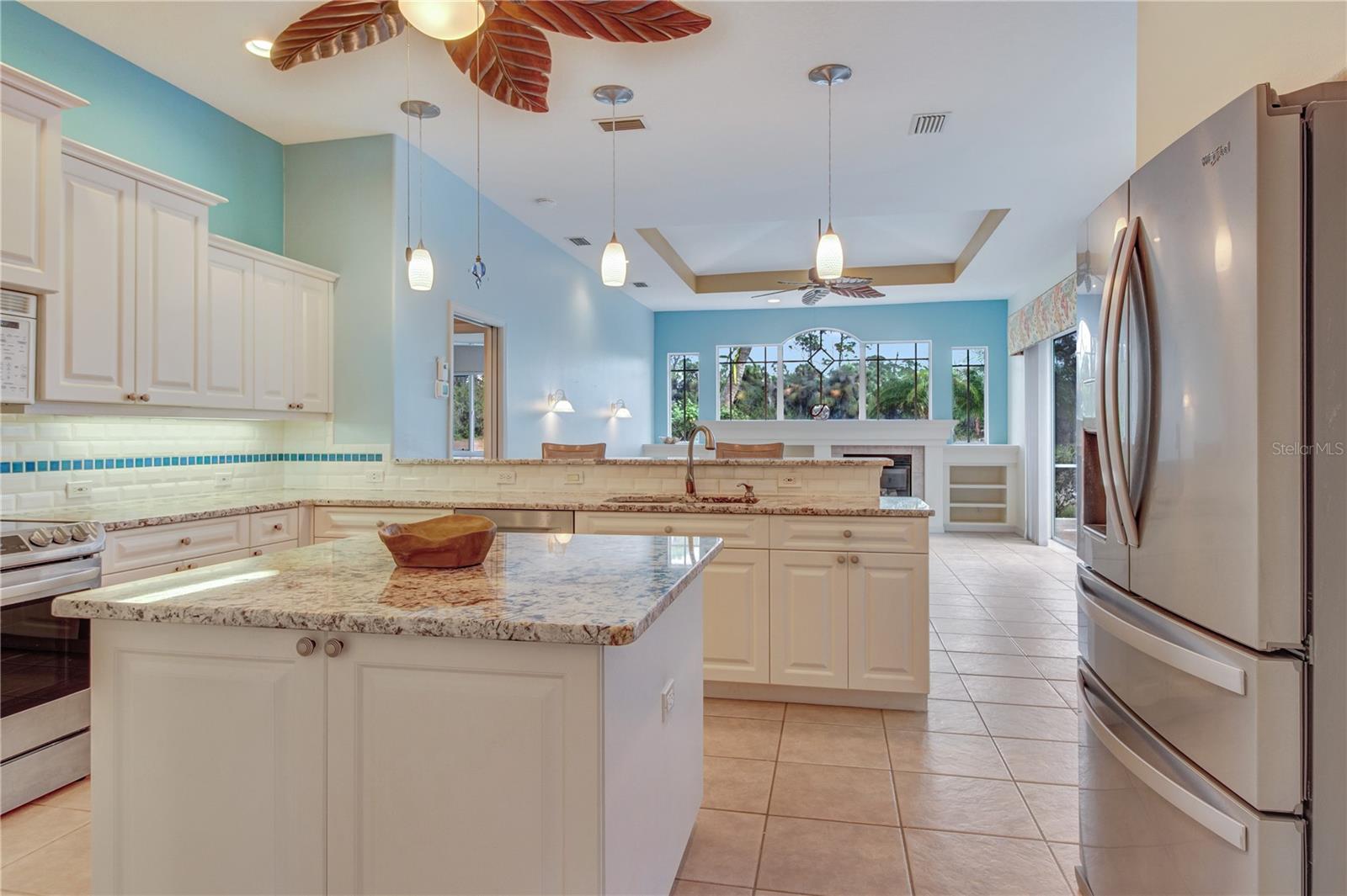 3D TOUR! Prepare to be impressed with this fabulous home in the beautiful, gated community of Bobcat Trail. This meticulously maintained 3 bedroom, 2 bathroom, POOL HOME is perfect for the entire family! The A/C is new (2024) and the ROOF in 2023 - talk about peace of mind! Pull into the driveway to be met with landscaping from the front to the back, including palm trees, pebble rock, curbing, lighting & the scent of flowers in bloom as you make your way up to the place you'll call "home." Open the front doors and be impressed with soaring high ceilings, plantation shutters, recessed lighting, arched entryways, crown molding & ceramic tile floors flowing throughout the main living areas making cleaning a breeze & pet friendly! Prepare dinner in the spacious chef's kitchen with beautiful cabinets, an abundance of countertop space, closet pantry, plant shelves, under cabinet lighting, ornate backsplash & kitchen island - BONUS - All the appliances are included in the sale! A well appointed breakfast bar highlighted by hanging pendant lights makes a great addition to this space, especially while entertaining. The formal Dining Room/Den space can be closed off & features a built in desk that can be utilitized as cabinet space or a buffett area when hosting. The quaint dinette corner is a wonderful spot to sit & enjoy your morning coffee while getting ready to start your day. Adjacent to the kitchen is a large Family Room with built in alcove with a gas fireplace, aligned by windows & triple pocket sliding doors, allowing natural sunlight to shine through! What are you waiting for? Grab the popcorn & your family for a movie night in this cozy spot. The spectacular master suite is a true oasis, offering a generous walk-in closet, direct lanai access & an en-suite bathroom with dual sinks, private toilet, jacuzzi tub & Roman walk-in shower. The thoughtful, split floor plan, allows for privacy & functionality. Bedroom #2 is large in size & houses a private closet, large window & built in double desk, make-up vanity or dresser. Bedroom #3 features a private closet, window & ceiling fan. A well appointed guest bath is right outside of the bedrooms & provides plenty of space for family members & guests, designed with comfort & privacy in mind. The backyard is a private haven, showcasing a screened-in lanai & sparkling HEATED POOL that faces the WATER & WOODED VIEW - ideal for enjoying Florida's sunny days & warm evenings. The laundry room is off the kitchen & has an additional storage closet & wall cabinets to keep your items organized, don't forget about the OVERSIZED GARAGE, enough room for 2 cars & a golf cart! Bobcat Trail is a premier, gated community that is centrally located in North Port. You’ll be close to I-75 for easy commuting & just 15 minutes from downtown Wellen Park & the Atlanta Braves spring training stadium. Enjoy a day at the gorgeous Gulf of Mexico beaches, or explore nearby golf courses, local shopping & restaurants. The amenity community center offers a year-round heated swimming pool & hot tub, tennis & pickleball courts, fitness center, library, large clubhouse with monthly social activities planned for all ages! Best of all, this home is NOT LOCATED IN A FLOOD ZONE & has low HOA fees. The CDD fee is included in the property tax bill. Come explore this home today and see if it's the dream home that you've been looking for!