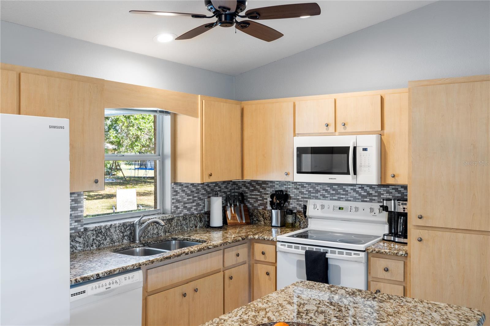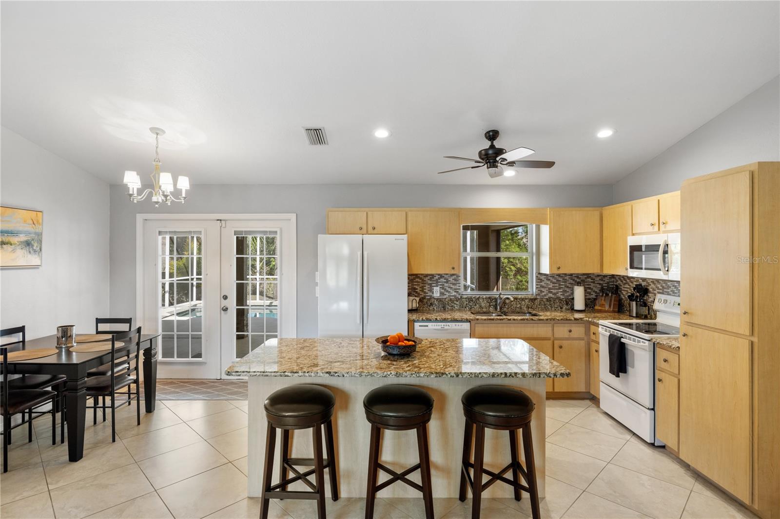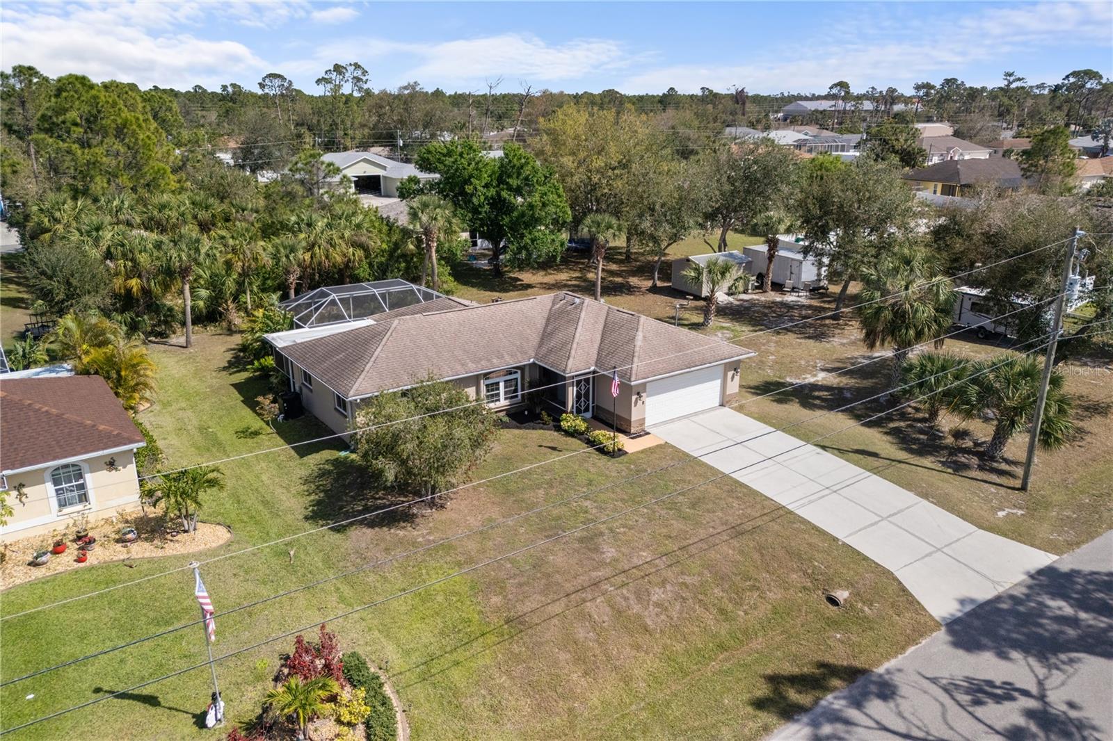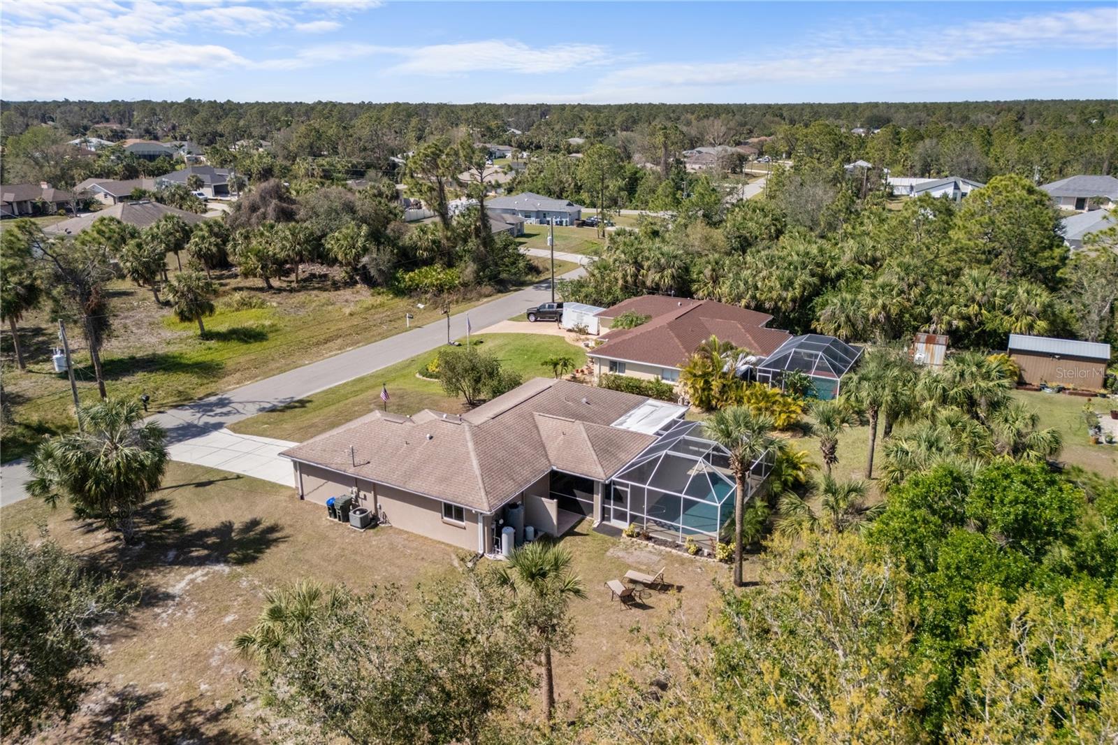 Sweet 3-Bedroom Pool Home on Beautiful cleared Double Lot with Shed. Discover this meticulously maintained 3-bedroom, 2-bathroom pool home, perfectly situated on a spacious double lot. Boasting vaulted ceilings and ceramic tile flooring throughout, this residence offers a seamless blend of comfort, style and charm. Vaulted Ceilings & Ceramic Flooring throughout: That Enhance the open and airy ambiance of the living spaces. Master Suite: Features a generous walk-in closet and an en-suite bathroom for your convenience. Modern Kitchen: Equipped with granite countertops and includes all appliances, making it a chef's delight. Reverse Osmosis System: Ensures purified water throughout the entire home. Recent Upgrades: New Roof (2019): Provides peace of mind and longevity. Lifetime Guaranteed Windows: Installed to enhance energy efficiency and aesthetics. Epoxy Garage Flooring: Offers a polished look and easy maintenance. Exterior Highlights: Double Lot: Fully cleared, providing ample space for outdoor activities and future expansions. 12 x 16 Steel Shed: Ideal for storage or a workshop. Resurfaced Pool (2020): Enjoy a refreshed swimming experience. New Pool Screens (2021): Ensures a peaceful environment while relaxing poolside. Pool Heater: Extend your swimming season with ease. Stone Tile Exterior Accents: Add a touch of elegance and curb appeal. This pristine home showcases pride of ownership and is move-in ready. Partially furnished, it awaits your personal touch. Don't miss the opportunity to own this exceptional property!