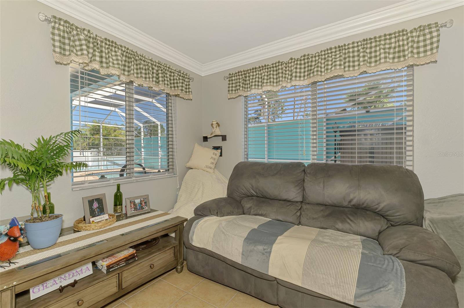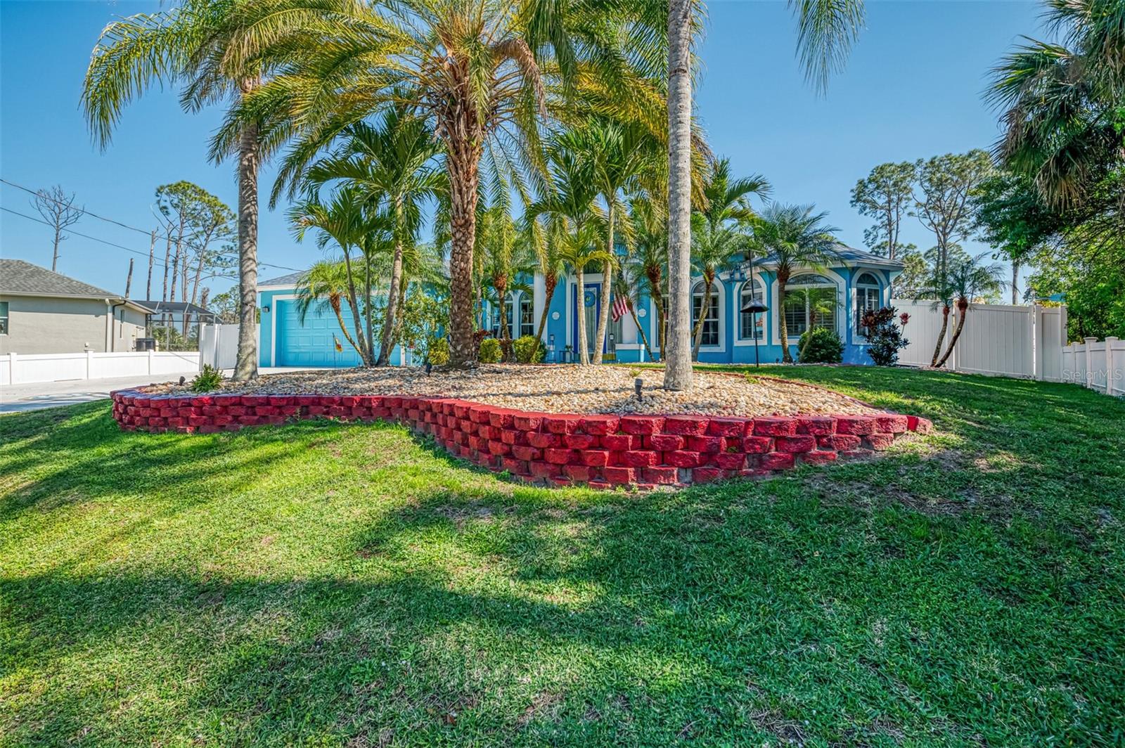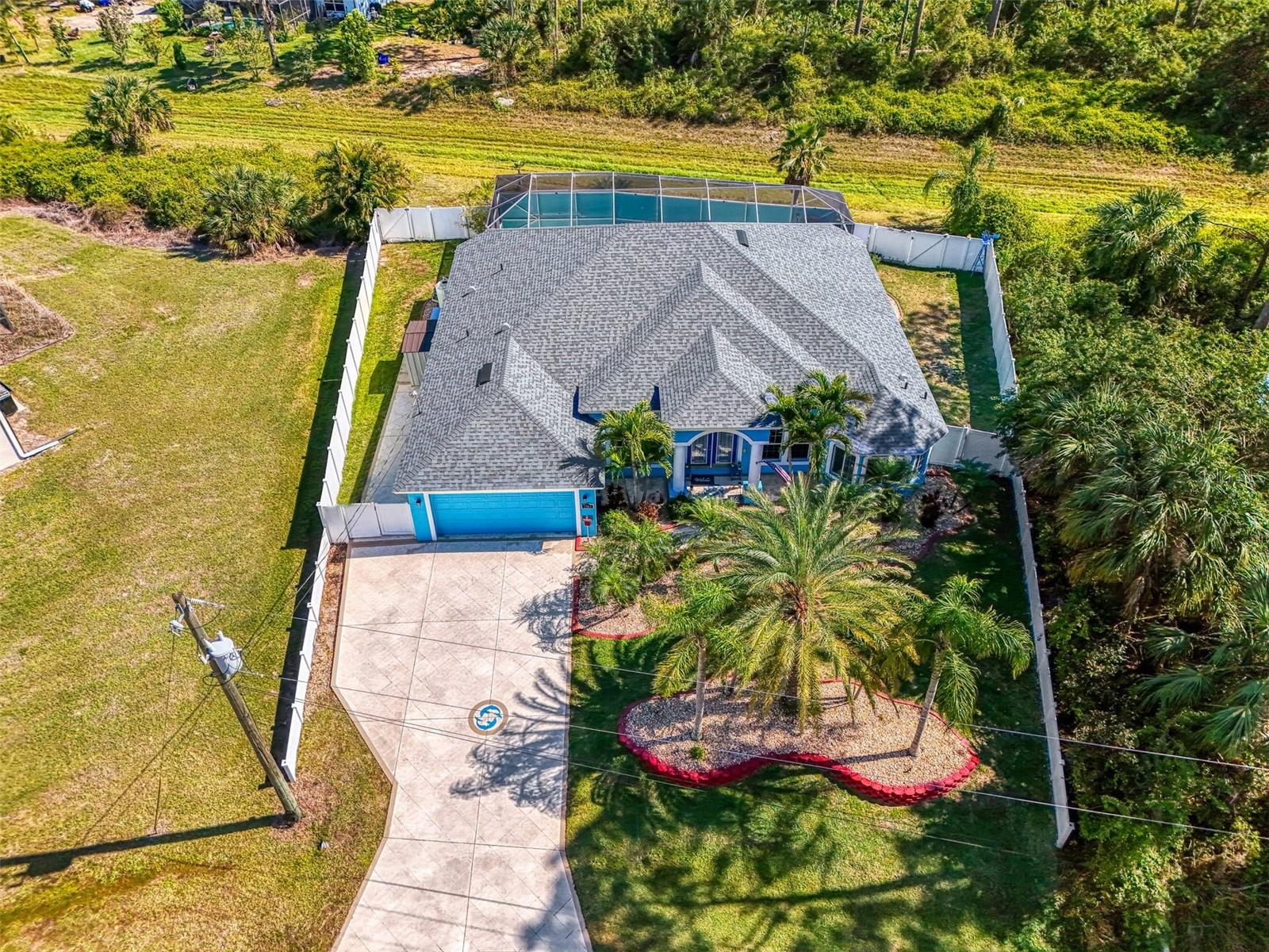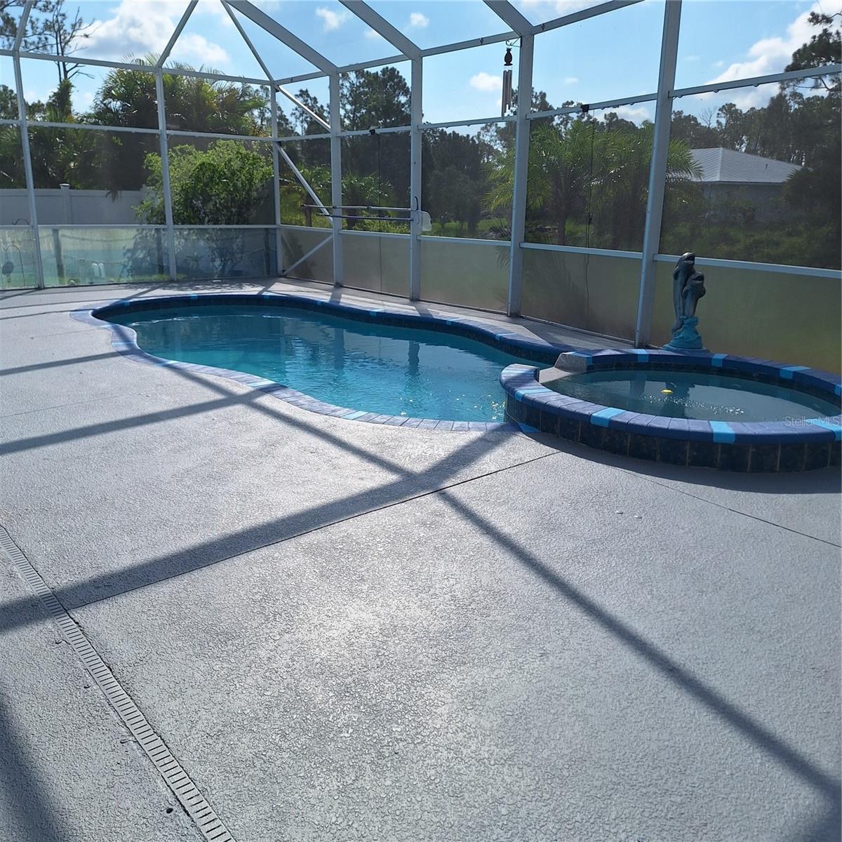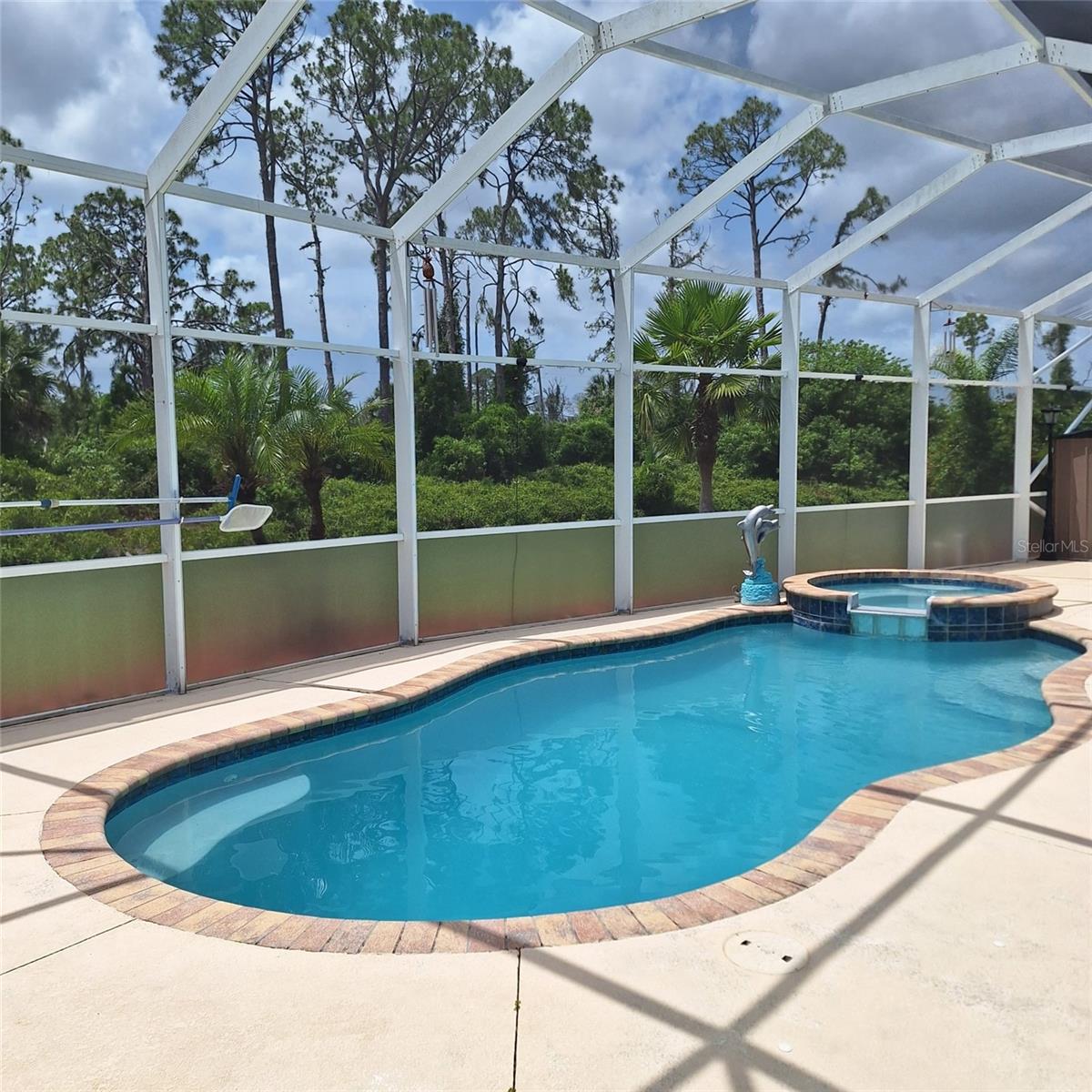 Seller is motivated and will consider all offer! Extraordinary Custom Home with Heated Pool & Spa on a Stunning Oversized Lot! This impressive 3/4-bedroom, 2-bath, 2-car garage home offers 2,370 sq. ft. under air, blending luxury, comfort, and top-tier upgrades! Situated on an oversized 11,504 sq. ft. lot, this mini estate is completely fenced and backs onto a peaceful greenbelt, creating a serene and private retreat. Step inside and experience 10-foot ceilings adorned with elegant crown molding, adding a touch of grandeur throughout. The dedicated office, complete with 8-foot glass French doors and plantation shutters, provides flexibility as a fourth bedroom if needed. Every inch of this home boasts high-end upgrades, including new tile flooring in the bedrooms and bathrooms, new plumbing fixtures, and new ceiling fans and lighting in every room—including the porch and garage. The gourmet kitchen is designed for both function and style, featuring new stainless-steel appliances, a convection double oven, abundant counter space, a large breakfast bar, and a charming breakfast nook with aquarium glass that frames breathtaking views of the sparkling pool. A formal dining room with mirrored walls and an eye-catching window adds a sophisticated touch. The primary suite is a true retreat, offering an expansive layout with a private sitting area, a luxury en-suite bathroom with dual sinks, granite countertops, a separate garden tub, and a walk-in tiled shower. The additional bedrooms are generously sized, each with ceiling fans and ample closet space. Step outside, and prepare to be amazed! The resort-style 6 foot deep heated pool and spa are surrounded by an expansive 26-foot lanai and an extended 32x36 pool deck, complete with a safety gate, dolphin fountain and a second storage shed for pool equipment. Beyond the pool cage, the property extends with a privacy easement, offering even more space to enjoy. This home is packed with upgraded features, including a whole-house reverse osmosis water purification system, new well pump, new AC (2023), new hot water heater (2022), brand new pool heater and pool pump, whole-house surge protector, fresh interior and exterior paint, a new shed, and a security system with built-in speakers. The garage features epoxy flooring, while the driveway and front porch showcase a custom dolphin design. There's even expanded parking to accommodate an RV, boat, or extra vehicles. The professionally landscaped yard is a tropical paradise, featuring $135,000 in premium landscaping, including mature palm trees, flowering shrubs, cherry trees, colored rock with weed guard protection, and custom concrete curbing around the front, side, and backyard. Home includes Hurricane shutters too. Located in North Port's desirable new home area, this spectacular property offers easy access to I-75, shopping, dining, Town Center Mall, and more. This home is one-of-a-kind—schedule your showing today!
