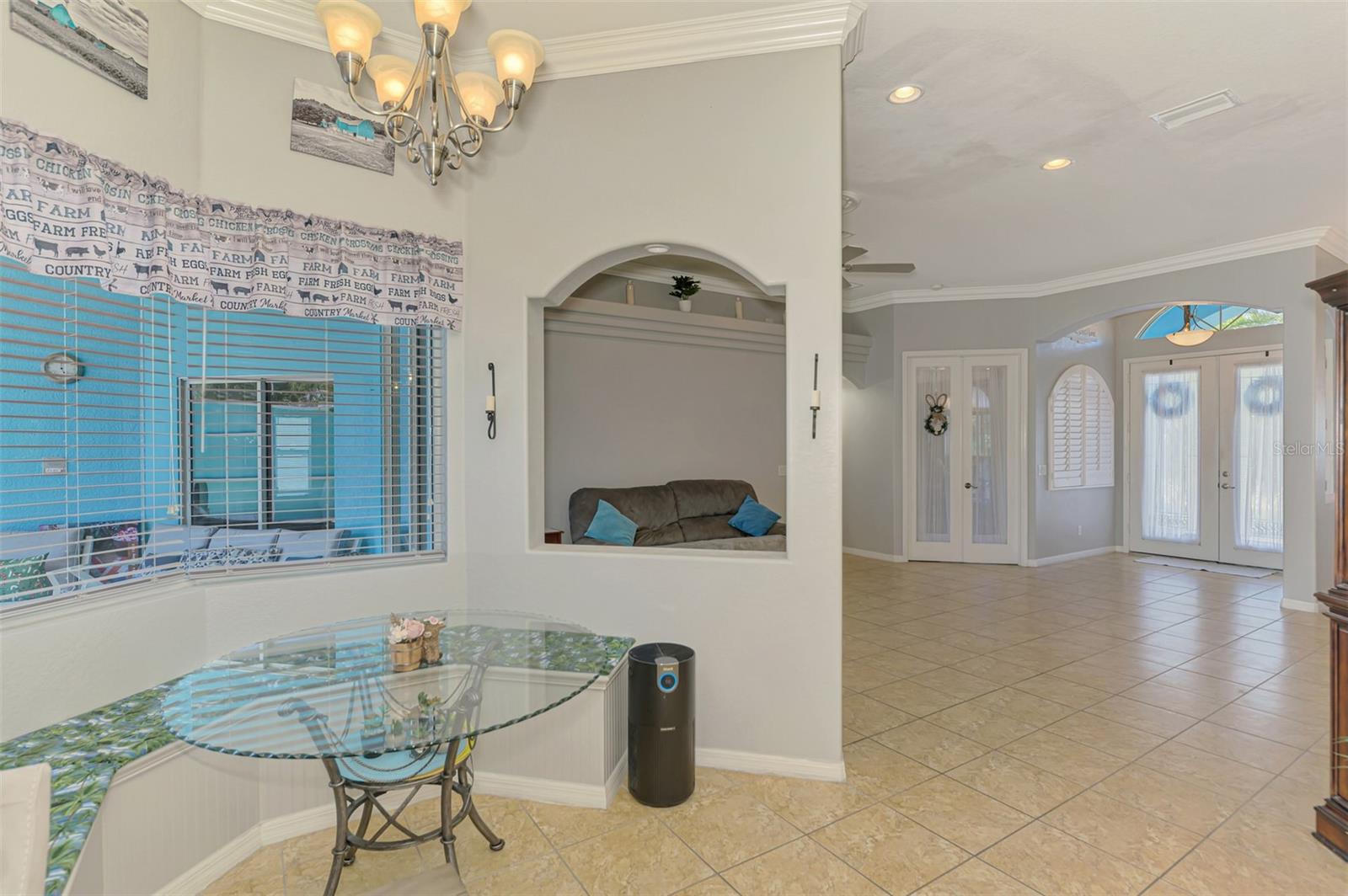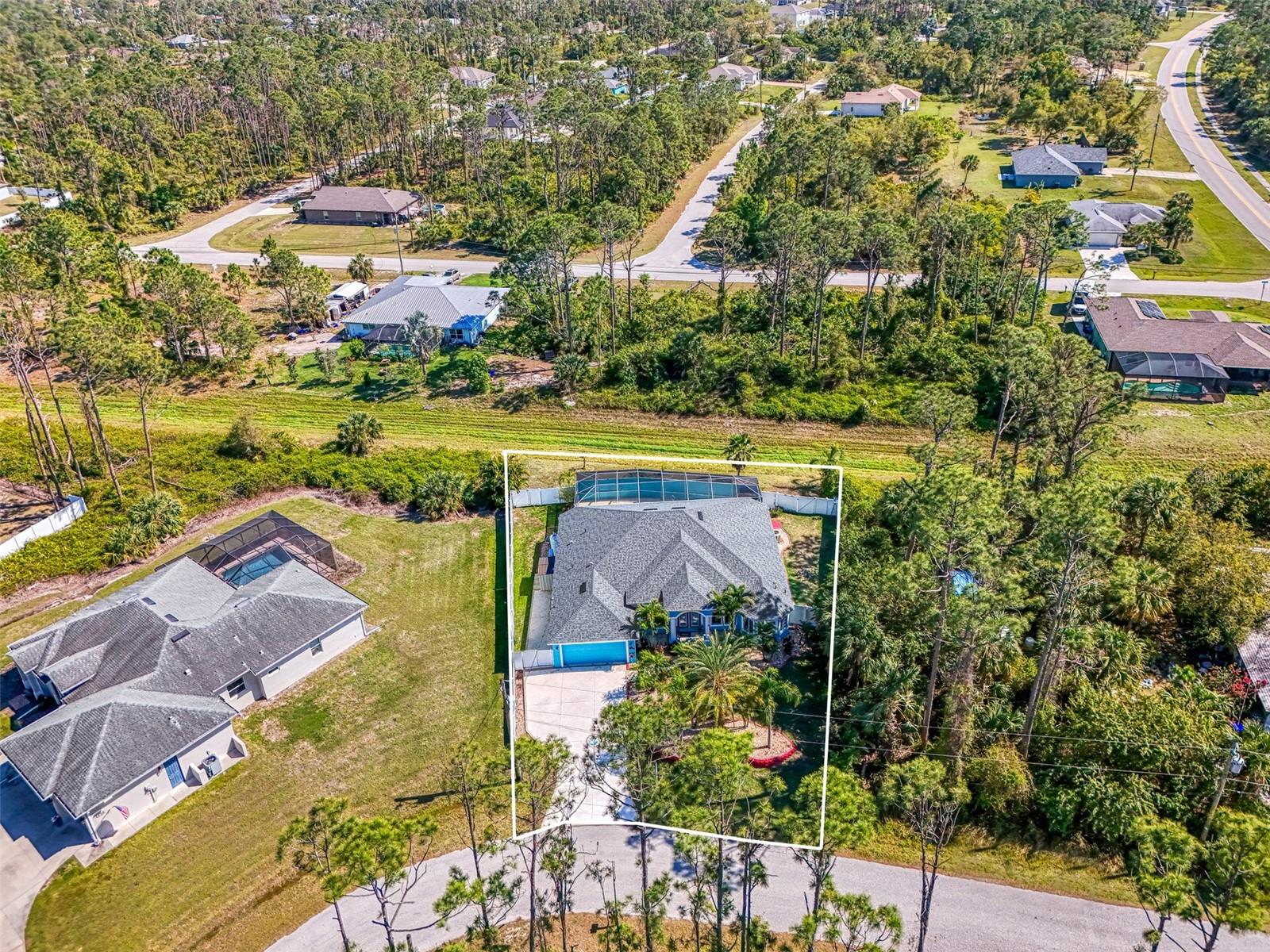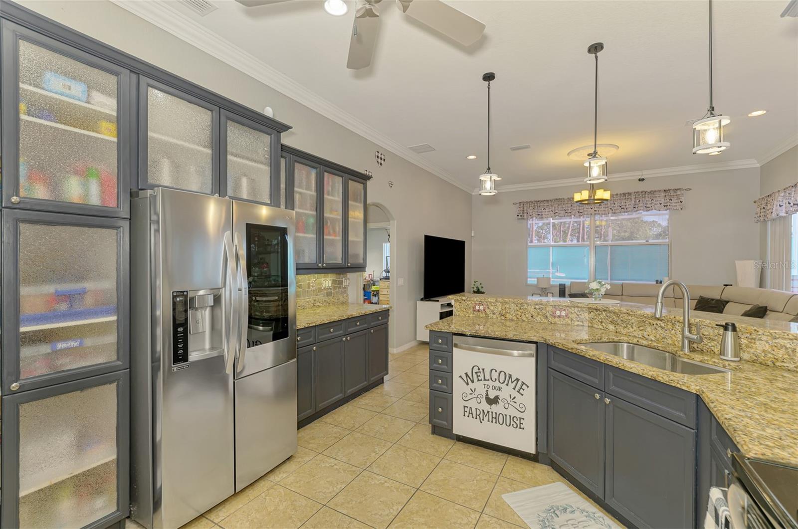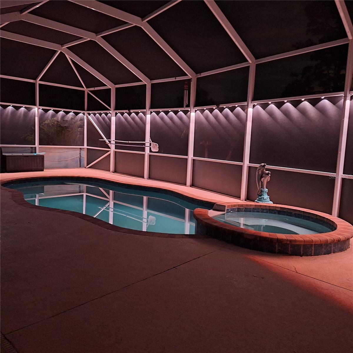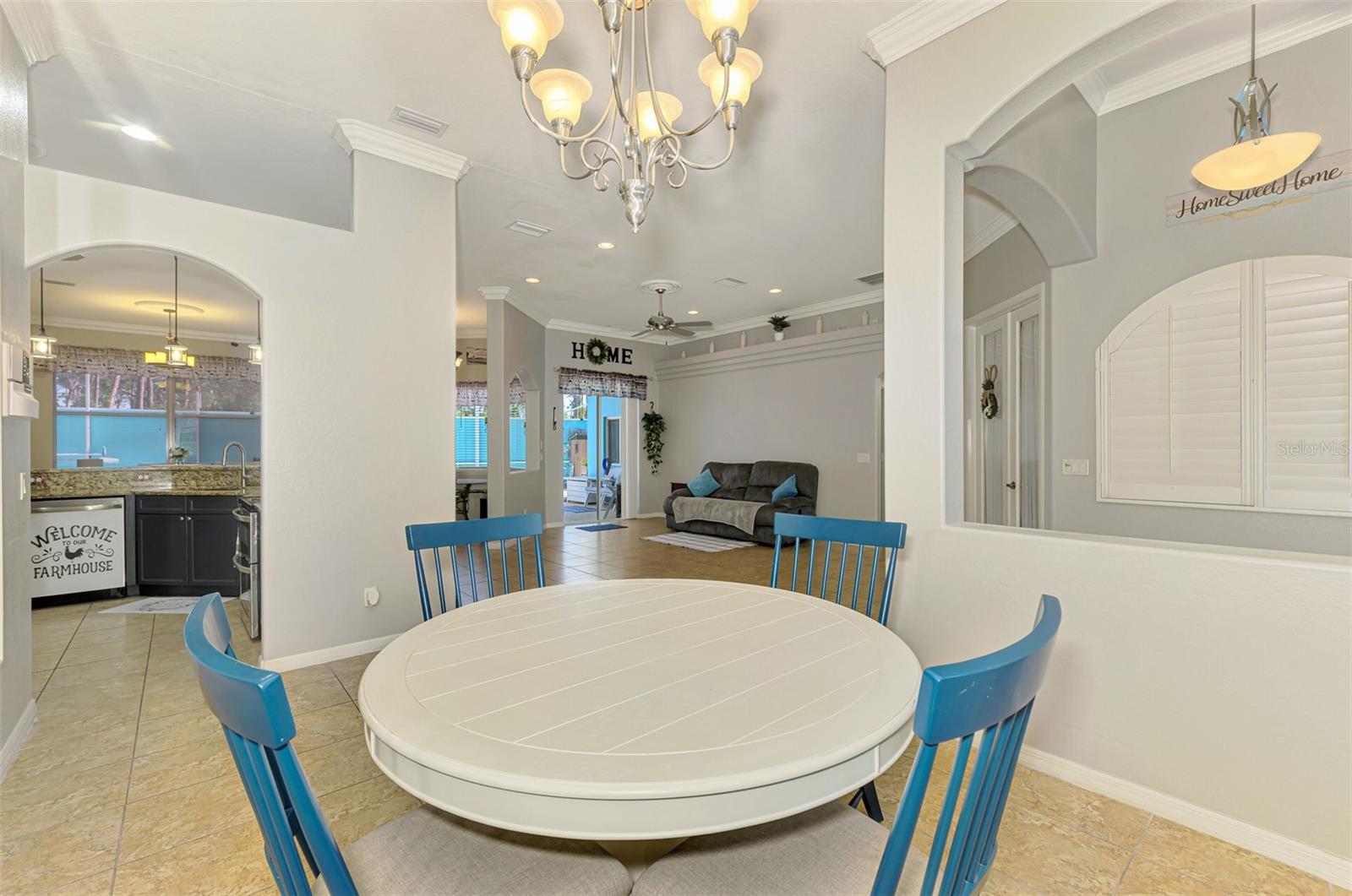 Seller is motivated and will consider all offer! Extraordinary Custom Home with Heated Pool & Spa on a Stunning Oversized Lot! This impressive 3/4-bedroom, 2-bath, 2-car garage home offers 2,370 sq. ft. under air, blending luxury, comfort, and top-tier upgrades! Situated on an oversized 11,504 sq. ft. lot, this mini estate is completely fenced and backs onto a peaceful greenbelt, creating a serene and private retreat. Step inside and experience 10-foot ceilings adorned with elegant crown molding, adding a touch of grandeur throughout. The dedicated office, complete with 8-foot glass French doors and plantation shutters, provides flexibility as a fourth bedroom if needed. Every inch of this home boasts high-end upgrades, including new tile flooring in the bedrooms and bathrooms, new plumbing fixtures, and new ceiling fans and lighting in every room—including the porch and garage. The gourmet kitchen is designed for both function and style, featuring new stainless-steel appliances, a convection double oven, abundant counter space, a large breakfast bar, and a charming breakfast nook with aquarium glass that frames breathtaking views of the sparkling pool. A formal dining room with mirrored walls and an eye-catching window adds a sophisticated touch. The primary suite is a true retreat, offering an expansive layout with a private sitting area, a luxury en-suite bathroom with dual sinks, granite countertops, a separate garden tub, and a walk-in tiled shower. The additional bedrooms are generously sized, each with ceiling fans and ample closet space. Step outside, and prepare to be amazed! The resort-style 6 foot deep heated pool and spa are surrounded by an expansive 26-foot lanai and an extended 32x36 pool deck, complete with a safety gate, dolphin fountain and a second storage shed for pool equipment. Beyond the pool cage, the property extends with a privacy easement, offering even more space to enjoy. This home is packed with upgraded features, including a whole-house reverse osmosis water purification system, new well pump, new AC (2023), new hot water heater (2022), brand new pool heater and pool pump, whole-house surge protector, fresh interior and exterior paint, a new shed, and a security system with built-in speakers. The garage features epoxy flooring, while the driveway and front porch showcase a custom dolphin design. There's even expanded parking to accommodate an RV, boat, or extra vehicles. The professionally landscaped yard is a tropical paradise, featuring $135,000 in premium landscaping, including mature palm trees, flowering shrubs, cherry trees, colored rock with weed guard protection, and custom concrete curbing around the front, side, and backyard. Home includes Hurricane shutters too. Located in North Port's desirable new home area, this spectacular property offers easy access to I-75, shopping, dining, Town Center Mall, and more. This home is one-of-a-kind—schedule your showing today!