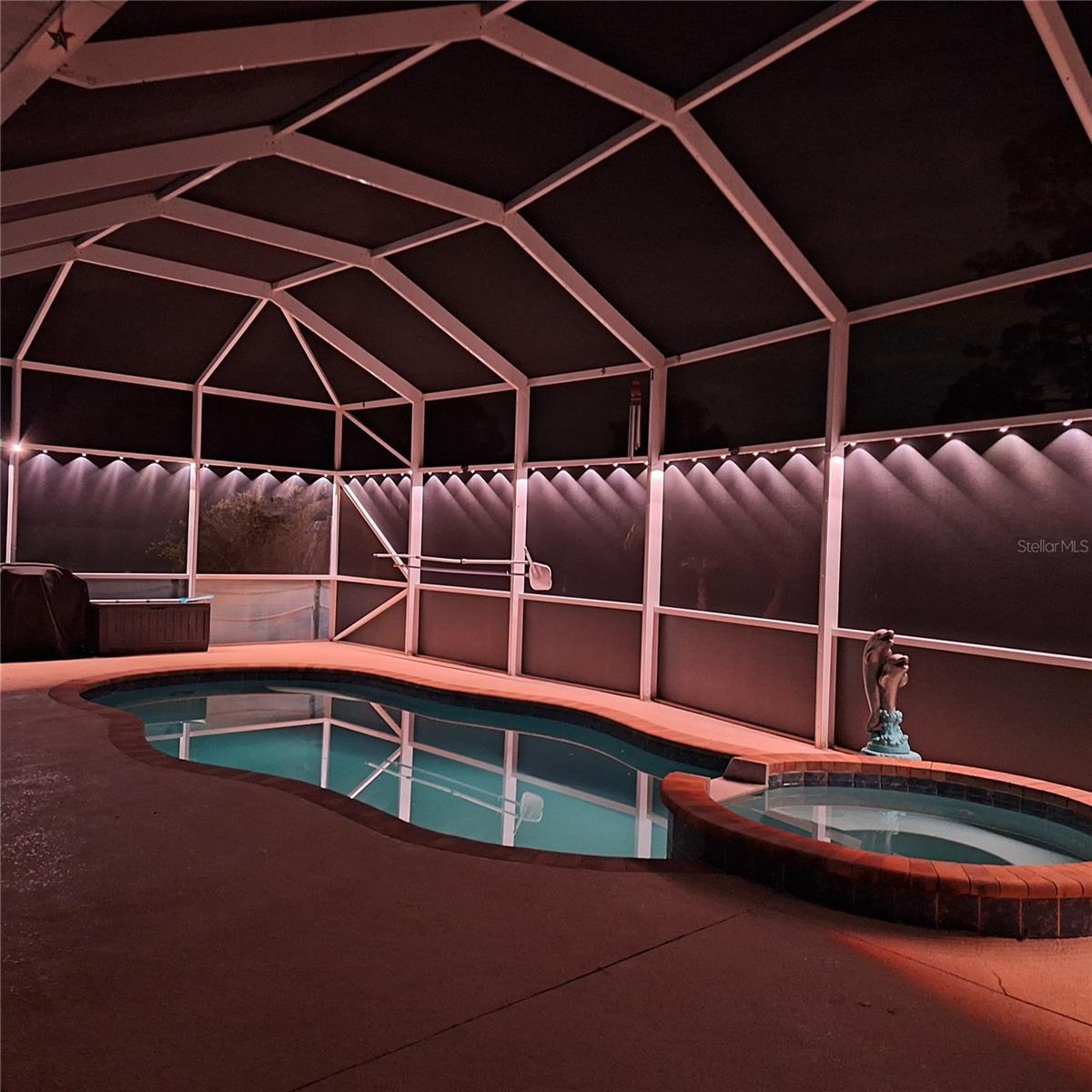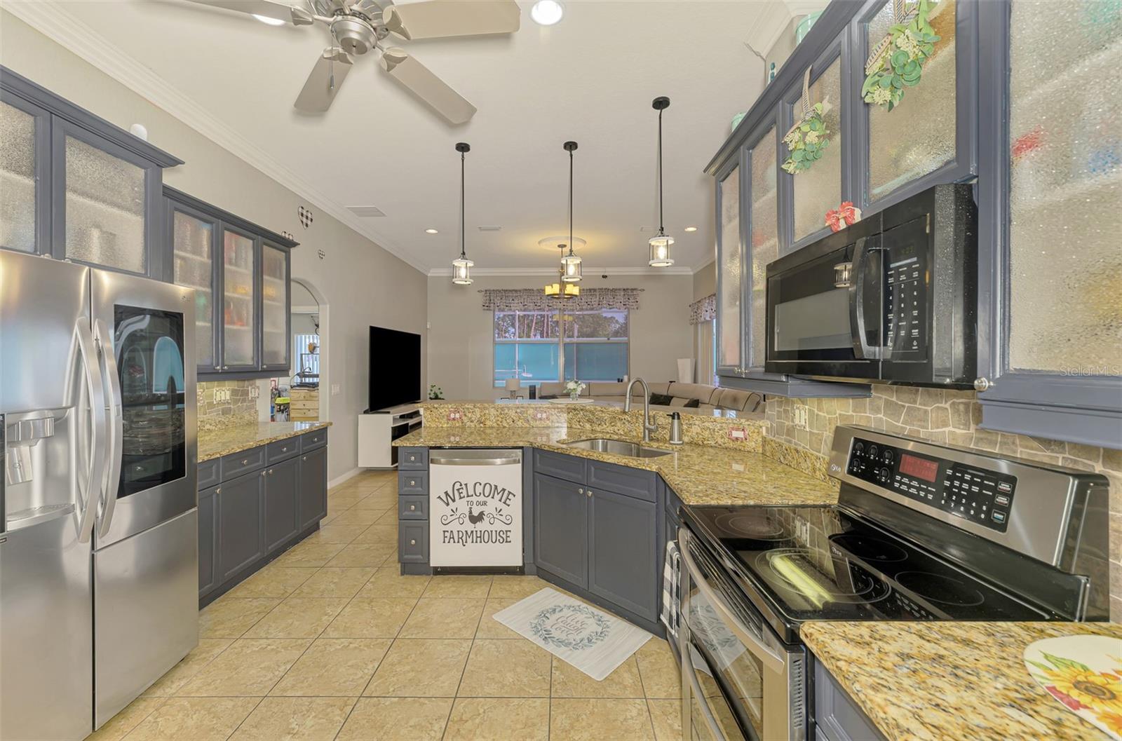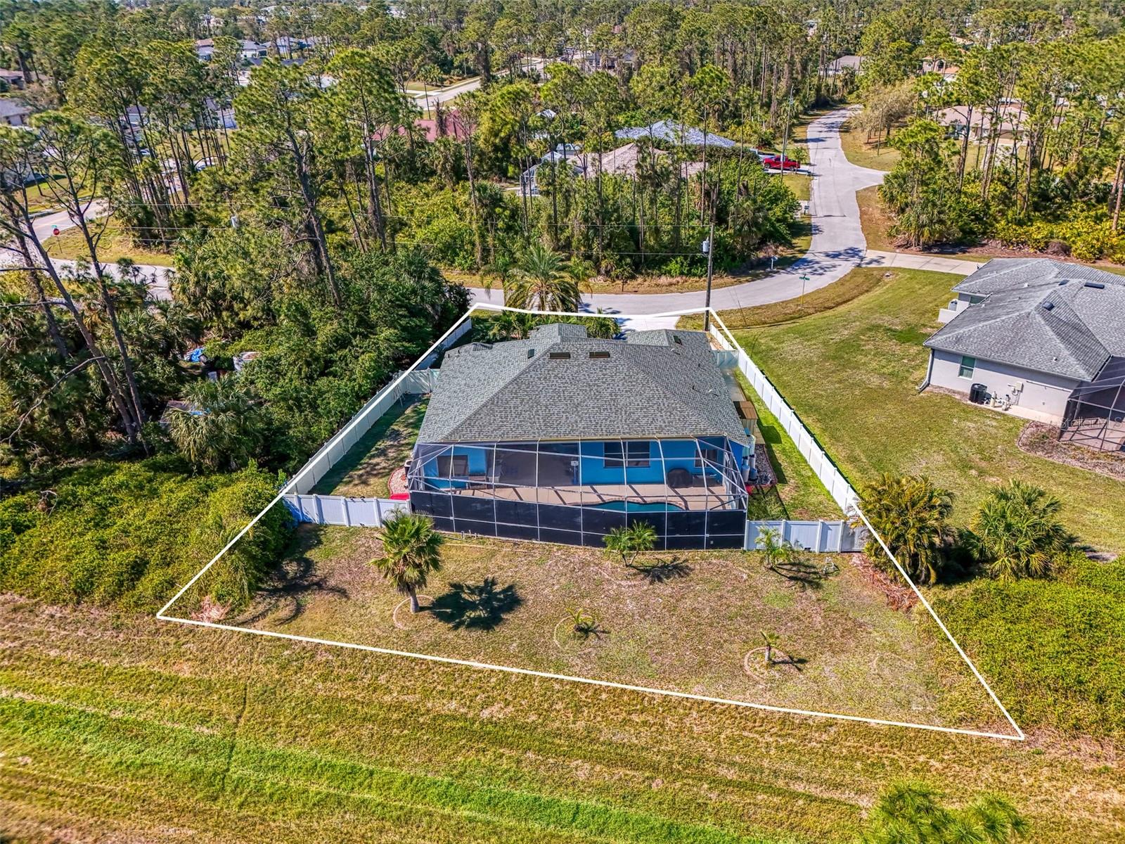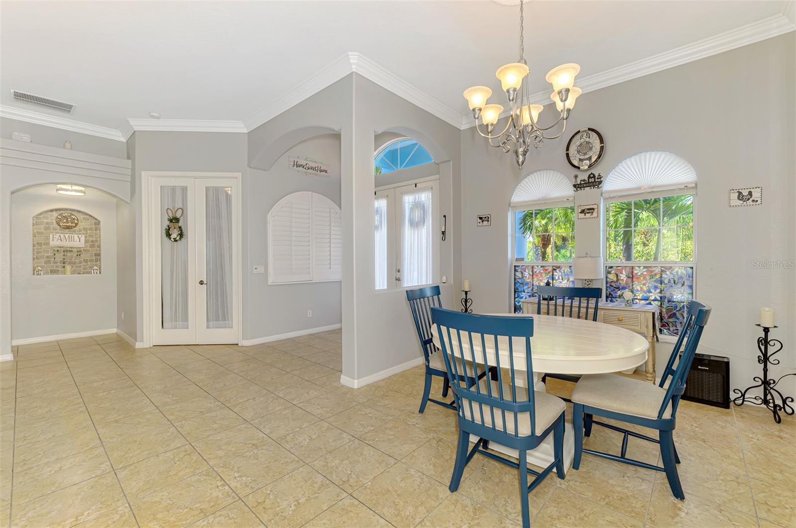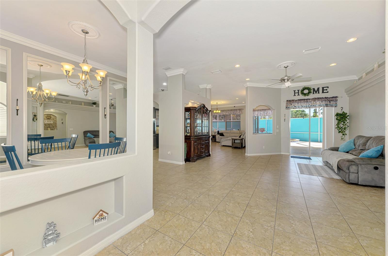 Seller is motivated and will consider all offer! Extraordinary Custom Home with Heated Pool & Spa on a Stunning Oversized Lot! This impressive 3/4-bedroom, 2-bath, 2-car garage home offers 2,370 sq. ft. under air, blending luxury, comfort, and top-tier upgrades! Situated on an oversized 11,504 sq. ft. lot, this mini estate is completely fenced and backs onto a peaceful greenbelt, creating a serene and private retreat. Step inside and experience 10-foot ceilings adorned with elegant crown molding, adding a touch of grandeur throughout. The dedicated office, complete with 8-foot glass French doors and plantation shutters, provides flexibility as a fourth bedroom if needed. Every inch of this home boasts high-end upgrades, including new tile flooring in the bedrooms and bathrooms, new plumbing fixtures, and new ceiling fans and lighting in every room—including the porch and garage. The gourmet kitchen is designed for both function and style, featuring new stainless-steel appliances, a convection double oven, abundant counter space, a large breakfast bar, and a charming breakfast nook with aquarium glass that frames breathtaking views of the sparkling pool. A formal dining room with mirrored walls and an eye-catching window adds a sophisticated touch. The primary suite is a true retreat, offering an expansive layout with a private sitting area, a luxury en-suite bathroom with dual sinks, granite countertops, a separate garden tub, and a walk-in tiled shower. The additional bedrooms are generously sized, each with ceiling fans and ample closet space. Step outside, and prepare to be amazed! The resort-style 6 foot deep heated pool and spa are surrounded by an expansive 26-foot lanai and an extended 32x36 pool deck, complete with a safety gate, dolphin fountain and a second storage shed for pool equipment. Beyond the pool cage, the property extends with a privacy easement, offering even more space to enjoy. This home is packed with upgraded features, including a whole-house reverse osmosis water purification system, new well pump, new AC (2023), new hot water heater (2022), brand new pool heater and pool pump, whole-house surge protector, fresh interior and exterior paint, a new shed, and a security system with built-in speakers. The garage features epoxy flooring, while the driveway and front porch showcase a custom dolphin design. There's even expanded parking to accommodate an RV, boat, or extra vehicles. The professionally landscaped yard is a tropical paradise, featuring $135,000 in premium landscaping, including mature palm trees, flowering shrubs, cherry trees, colored rock with weed guard protection, and custom concrete curbing around the front, side, and backyard. Home includes Hurricane shutters too. Located in North Port's desirable new home area, this spectacular property offers easy access to I-75, shopping, dining, Town Center Mall, and more. This home is one-of-a-kind—schedule your showing today!