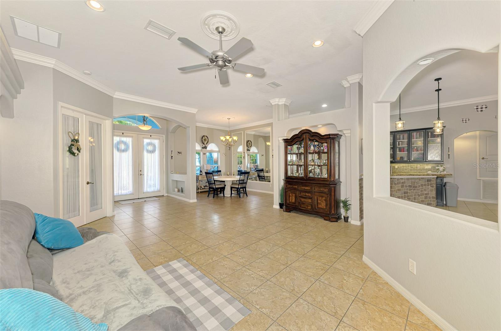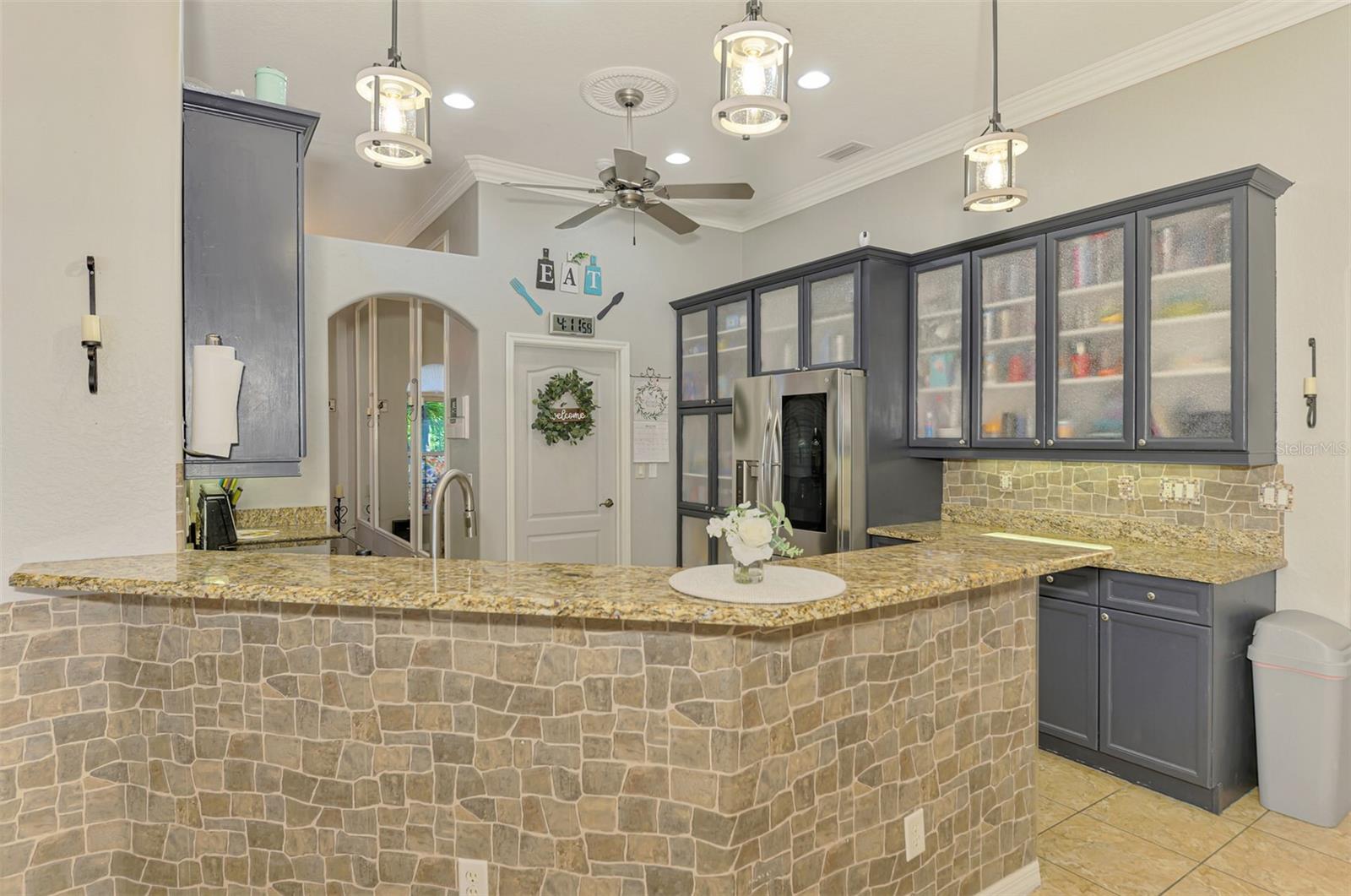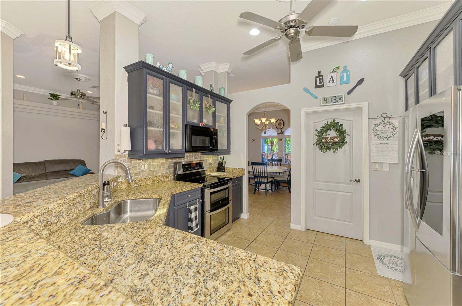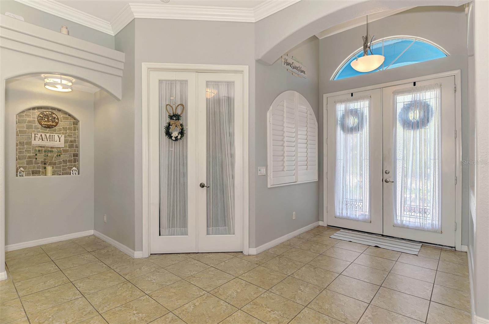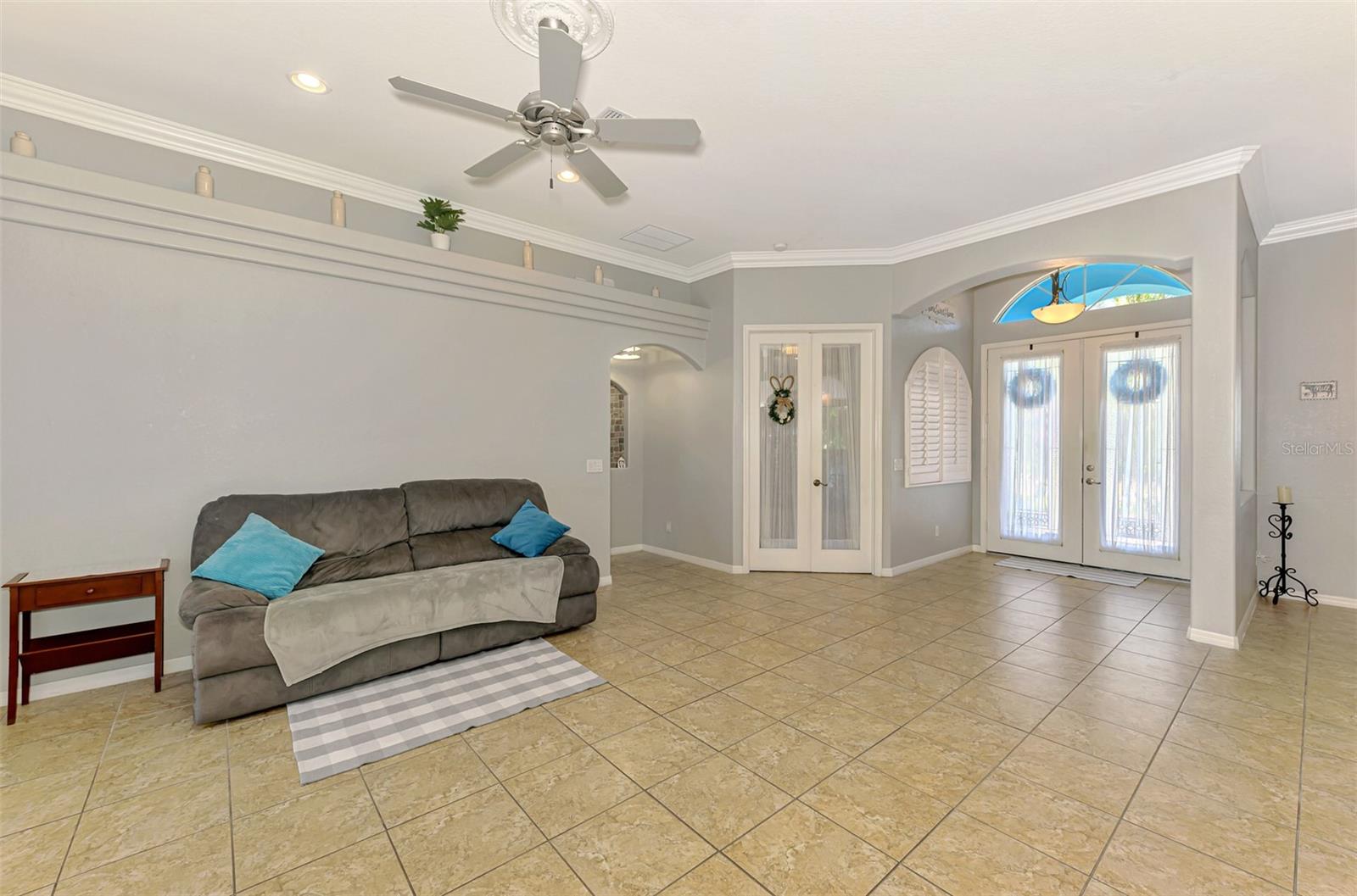 Seller is motivated and will consider all offer! Extraordinary Custom Home with Heated Pool & Spa on a Stunning Oversized Lot! This impressive 3/4-bedroom, 2-bath, 2-car garage home offers 2,370 sq. ft. under air, blending luxury, comfort, and top-tier upgrades! Situated on an oversized 11,504 sq. ft. lot, this mini estate is completely fenced and backs onto a peaceful greenbelt, creating a serene and private retreat. Step inside and experience 10-foot ceilings adorned with elegant crown molding, adding a touch of grandeur throughout. The dedicated office, complete with 8-foot glass French doors and plantation shutters, provides flexibility as a fourth bedroom if needed. Every inch of this home boasts high-end upgrades, including new tile flooring in the bedrooms and bathrooms, new plumbing fixtures, and new ceiling fans and lighting in every room—including the porch and garage. The gourmet kitchen is designed for both function and style, featuring new stainless-steel appliances, a convection double oven, abundant counter space, a large breakfast bar, and a charming breakfast nook with aquarium glass that frames breathtaking views of the sparkling pool. A formal dining room with mirrored walls and an eye-catching window adds a sophisticated touch. The primary suite is a true retreat, offering an expansive layout with a private sitting area, a luxury en-suite bathroom with dual sinks, granite countertops, a separate garden tub, and a walk-in tiled shower. The additional bedrooms are generously sized, each with ceiling fans and ample closet space. Step outside, and prepare to be amazed! The resort-style 6 foot deep heated pool and spa are surrounded by an expansive 26-foot lanai and an extended 32x36 pool deck, complete with a safety gate, dolphin fountain and a second storage shed for pool equipment. Beyond the pool cage, the property extends with a privacy easement, offering even more space to enjoy. This home is packed with upgraded features, including a whole-house reverse osmosis water purification system, new well pump, new AC (2023), new hot water heater (2022), brand new pool heater and pool pump, whole-house surge protector, fresh interior and exterior paint, a new shed, and a security system with built-in speakers. The garage features epoxy flooring, while the driveway and front porch showcase a custom dolphin design. There's even expanded parking to accommodate an RV, boat, or extra vehicles. The professionally landscaped yard is a tropical paradise, featuring $135,000 in premium landscaping, including mature palm trees, flowering shrubs, cherry trees, colored rock with weed guard protection, and custom concrete curbing around the front, side, and backyard. Home includes Hurricane shutters too. Located in North Port's desirable new home area, this spectacular property offers easy access to I-75, shopping, dining, Town Center Mall, and more. This home is one-of-a-kind—schedule your showing today!