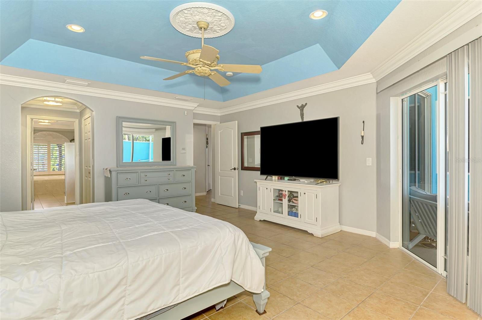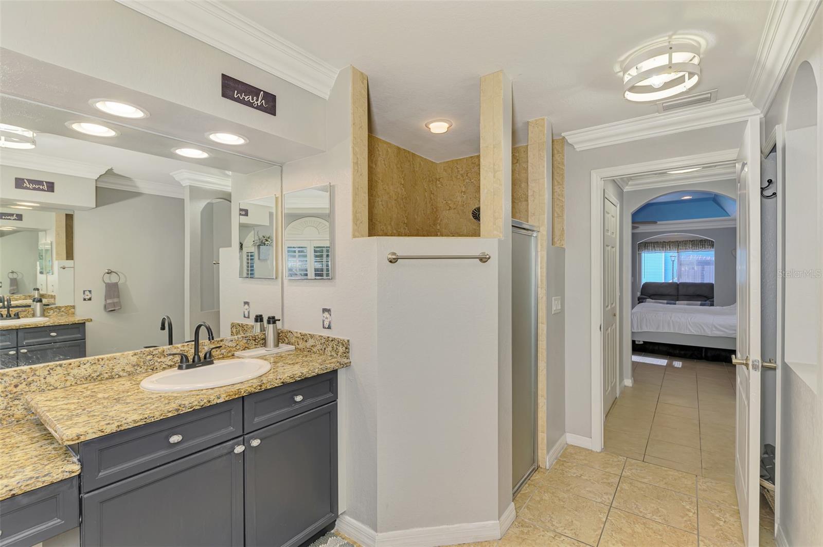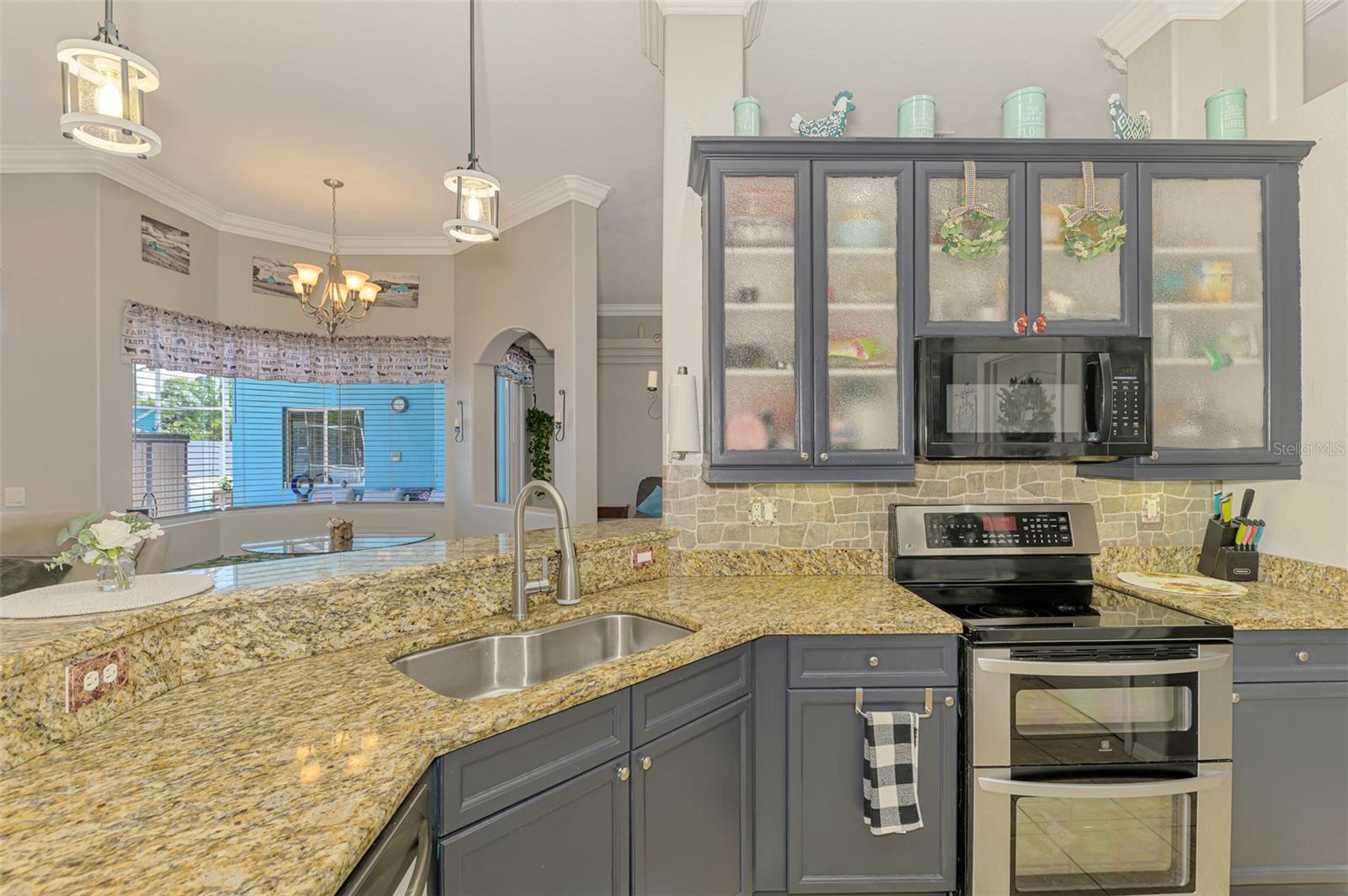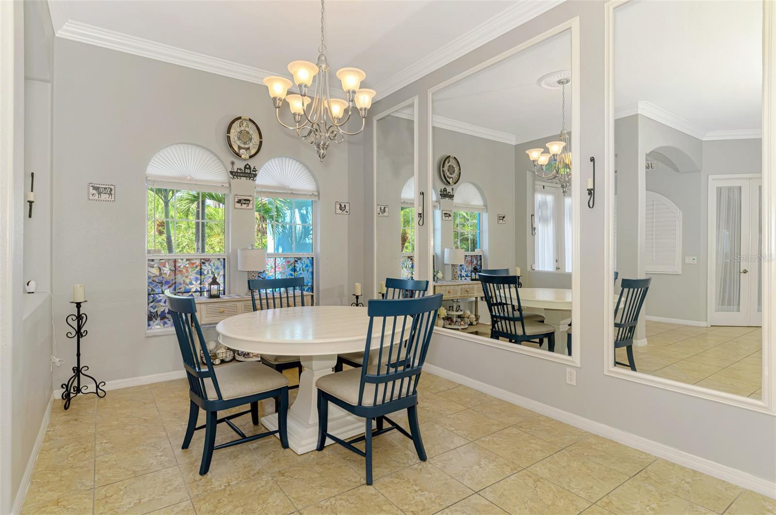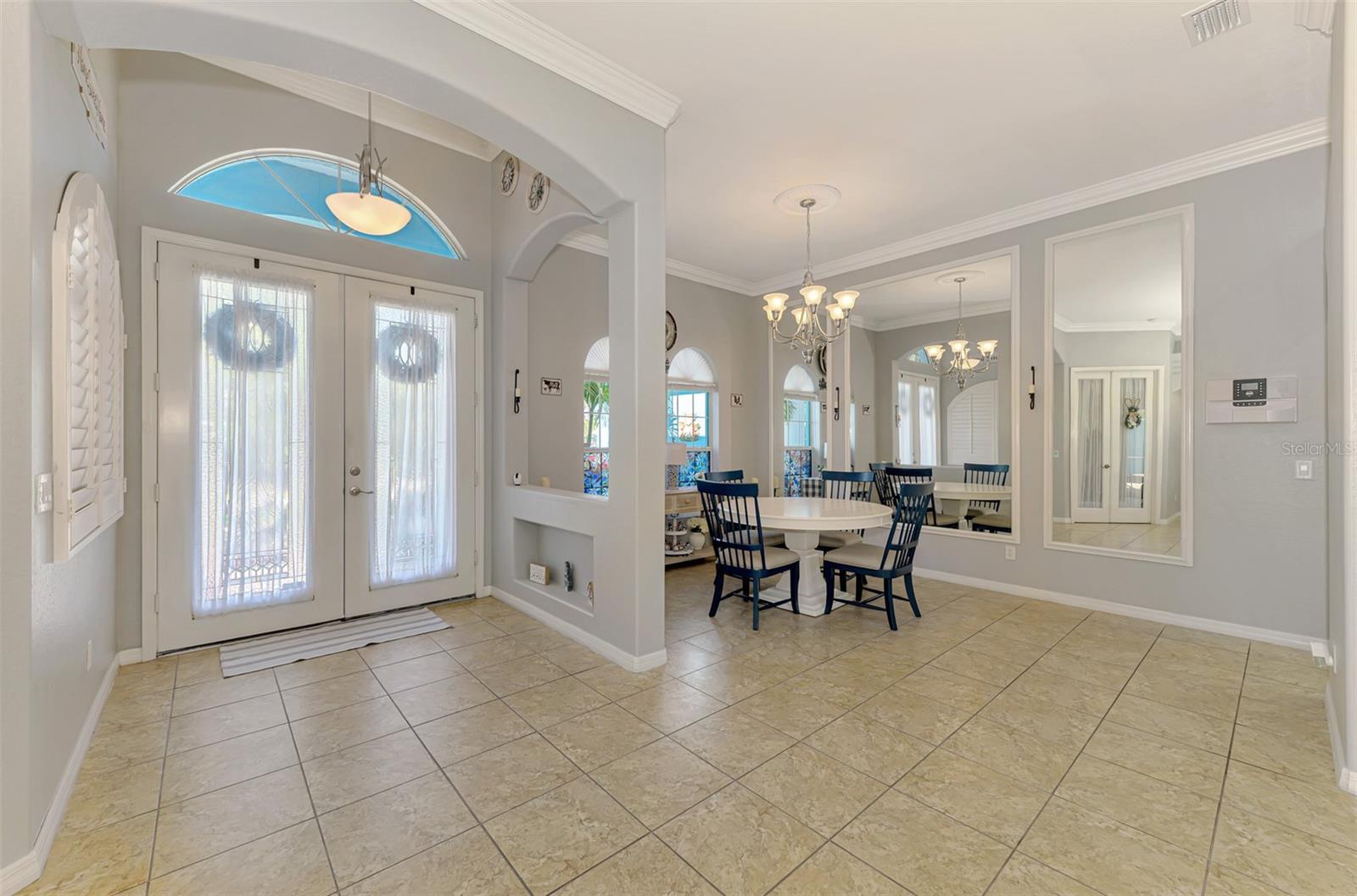 Seller is motivated and will consider all offer! Extraordinary Custom Home with Heated Pool & Spa on a Stunning Oversized Lot! This impressive 3/4-bedroom, 2-bath, 2-car garage home offers 2,370 sq. ft. under air, blending luxury, comfort, and top-tier upgrades! Situated on an oversized 11,504 sq. ft. lot, this mini estate is completely fenced and backs onto a peaceful greenbelt, creating a serene and private retreat. Step inside and experience 10-foot ceilings adorned with elegant crown molding, adding a touch of grandeur throughout. The dedicated office, complete with 8-foot glass French doors and plantation shutters, provides flexibility as a fourth bedroom if needed. Every inch of this home boasts high-end upgrades, including new tile flooring in the bedrooms and bathrooms, new plumbing fixtures, and new ceiling fans and lighting in every room—including the porch and garage. The gourmet kitchen is designed for both function and style, featuring new stainless-steel appliances, a convection double oven, abundant counter space, a large breakfast bar, and a charming breakfast nook with aquarium glass that frames breathtaking views of the sparkling pool. A formal dining room with mirrored walls and an eye-catching window adds a sophisticated touch. The primary suite is a true retreat, offering an expansive layout with a private sitting area, a luxury en-suite bathroom with dual sinks, granite countertops, a separate garden tub, and a walk-in tiled shower. The additional bedrooms are generously sized, each with ceiling fans and ample closet space. Step outside, and prepare to be amazed! The resort-style 6 foot deep heated pool and spa are surrounded by an expansive 26-foot lanai and an extended 32x36 pool deck, complete with a safety gate, dolphin fountain and a second storage shed for pool equipment. Beyond the pool cage, the property extends with a privacy easement, offering even more space to enjoy. This home is packed with upgraded features, including a whole-house reverse osmosis water purification system, new well pump, new AC (2023), new hot water heater (2022), brand new pool heater and pool pump, whole-house surge protector, fresh interior and exterior paint, a new shed, and a security system with built-in speakers. The garage features epoxy flooring, while the driveway and front porch showcase a custom dolphin design. There's even expanded parking to accommodate an RV, boat, or extra vehicles. The professionally landscaped yard is a tropical paradise, featuring $135,000 in premium landscaping, including mature palm trees, flowering shrubs, cherry trees, colored rock with weed guard protection, and custom concrete curbing around the front, side, and backyard. Home includes Hurricane shutters too. Located in North Port's desirable new home area, this spectacular property offers easy access to I-75, shopping, dining, Town Center Mall, and more. This home is one-of-a-kind—schedule your showing today!