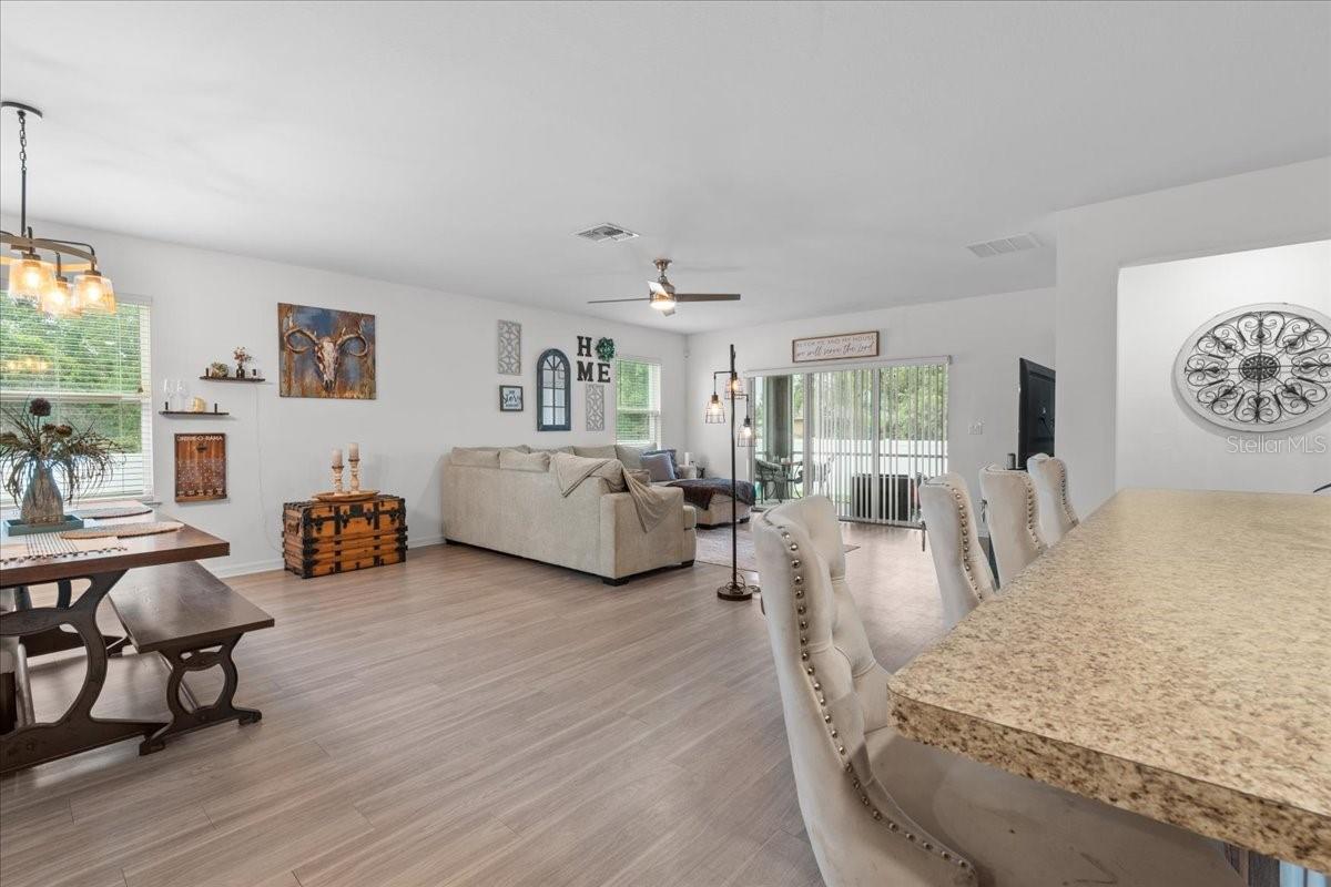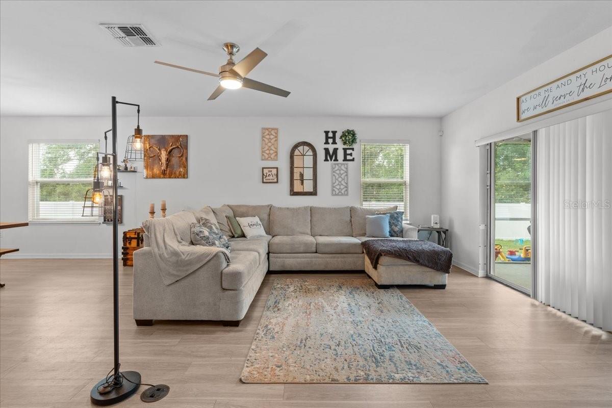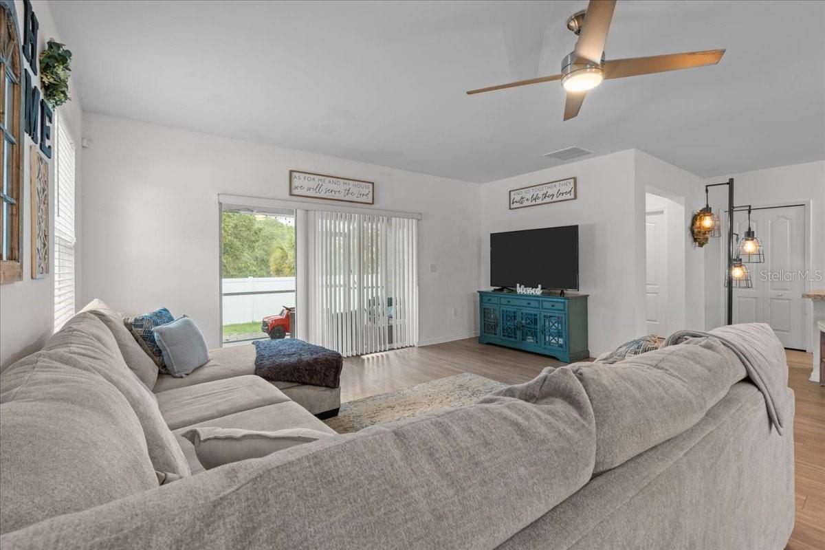 Don't miss out on this must see home in the heart of North Port — a beautifully maintained and thoughtfully designed 4-bedroom, 2-bathroom residence offering 2,141 sq. ft. of bright and airy living space. From the moment you arrive, you’ll appreciate the long driveway and inviting curb appeal that flows right into a 2-car garage. Step inside to discover a spacious open floor plan that flows effortlessly, filled with natural light throughout. Modern light fixtures and ceiling fans compliment the warm, welcoming ambiance. The heart of the home is the stylish eat-in kitchen, featuring a large island, ample counter space, and updated finishes — perfect for cooking, entertaining, or casual meals. The openness makes it easy to stay connected while prepping dinner or hosting guests. The primary suite is a private retreat, complete with a dual vanity, a large soaking tub, and a walk-in shower — offering the perfect space to relax and recharge. All bedrooms are generously sized, providing flexibility and comfort for family members or guests. You'll also love the extra flex space, ideal for a home office, playroom, or study area, giving you the room to customize the home to your lifestyle. Step outside to the fully fenced backyard — a perfect space for pets, gardening, or weekend barbecues. Whether you're relaxing under the stars or soaking up the sunshine, this backyard is ready for making memories. Located just minutes from A-rated schools, local restaurants, and the exciting North Port Aquatic Center — featuring a lazy river, water slides, and a resort-style pool — you’ll enjoy a location that truly has it all. Don’t miss out on this incredible opportunity to own a piece of North Port paradise — where space, comfort, and convenience come together beautifully!