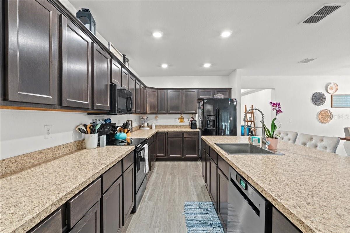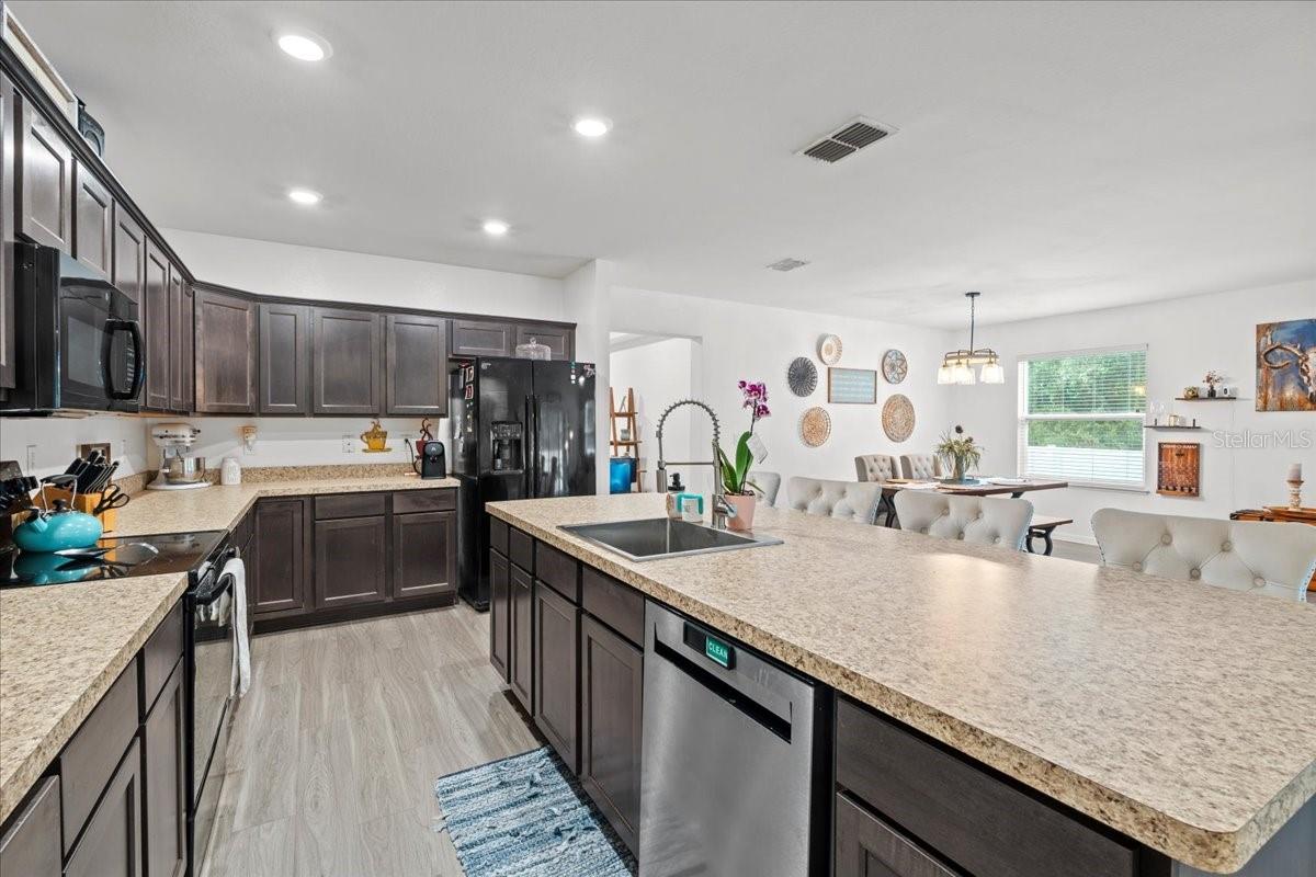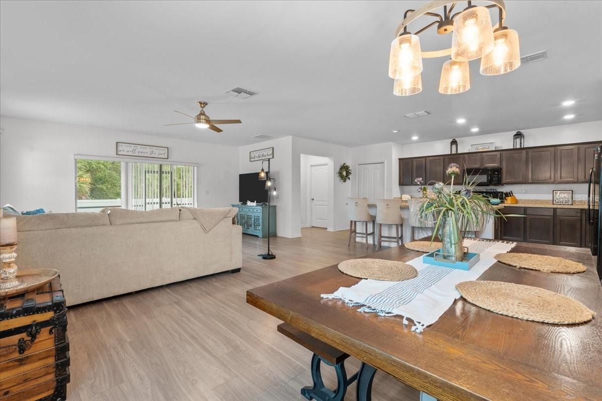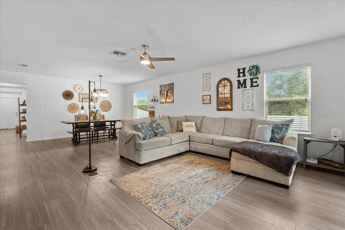 Don't miss out on this must see home in the heart of North Port — a beautifully maintained and thoughtfully designed 4-bedroom, 2-bathroom residence offering 2,141 sq. ft. of bright and airy living space. From the moment you arrive, you’ll appreciate the long driveway and inviting curb appeal that flows right into a 2-car garage. Step inside to discover a spacious open floor plan that flows effortlessly, filled with natural light throughout. Modern light fixtures and ceiling fans compliment the warm, welcoming ambiance. The heart of the home is the stylish eat-in kitchen, featuring a large island, ample counter space, and updated finishes — perfect for cooking, entertaining, or casual meals. The openness makes it easy to stay connected while prepping dinner or hosting guests. The primary suite is a private retreat, complete with a dual vanity, a large soaking tub, and a walk-in shower — offering the perfect space to relax and recharge. All bedrooms are generously sized, providing flexibility and comfort for family members or guests. You'll also love the extra flex space, ideal for a home office, playroom, or study area, giving you the room to customize the home to your lifestyle. Step outside to the fully fenced backyard — a perfect space for pets, gardening, or weekend barbecues. Whether you're relaxing under the stars or soaking up the sunshine, this backyard is ready for making memories. Located just minutes from A-rated schools, local restaurants, and the exciting North Port Aquatic Center — featuring a lazy river, water slides, and a resort-style pool — you’ll enjoy a location that truly has it all. Don’t miss out on this incredible opportunity to own a piece of North Port paradise — where space, comfort, and convenience come together beautifully!