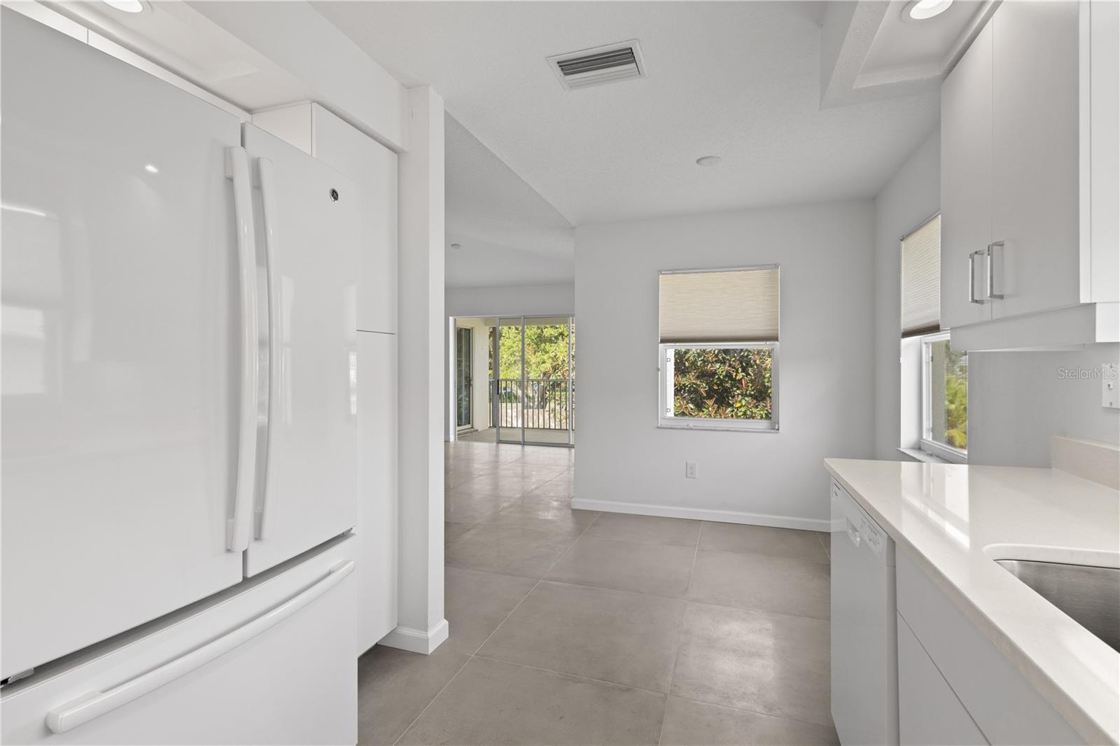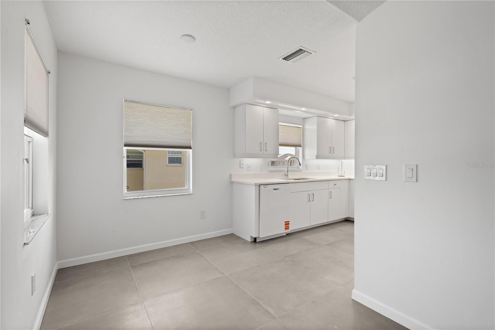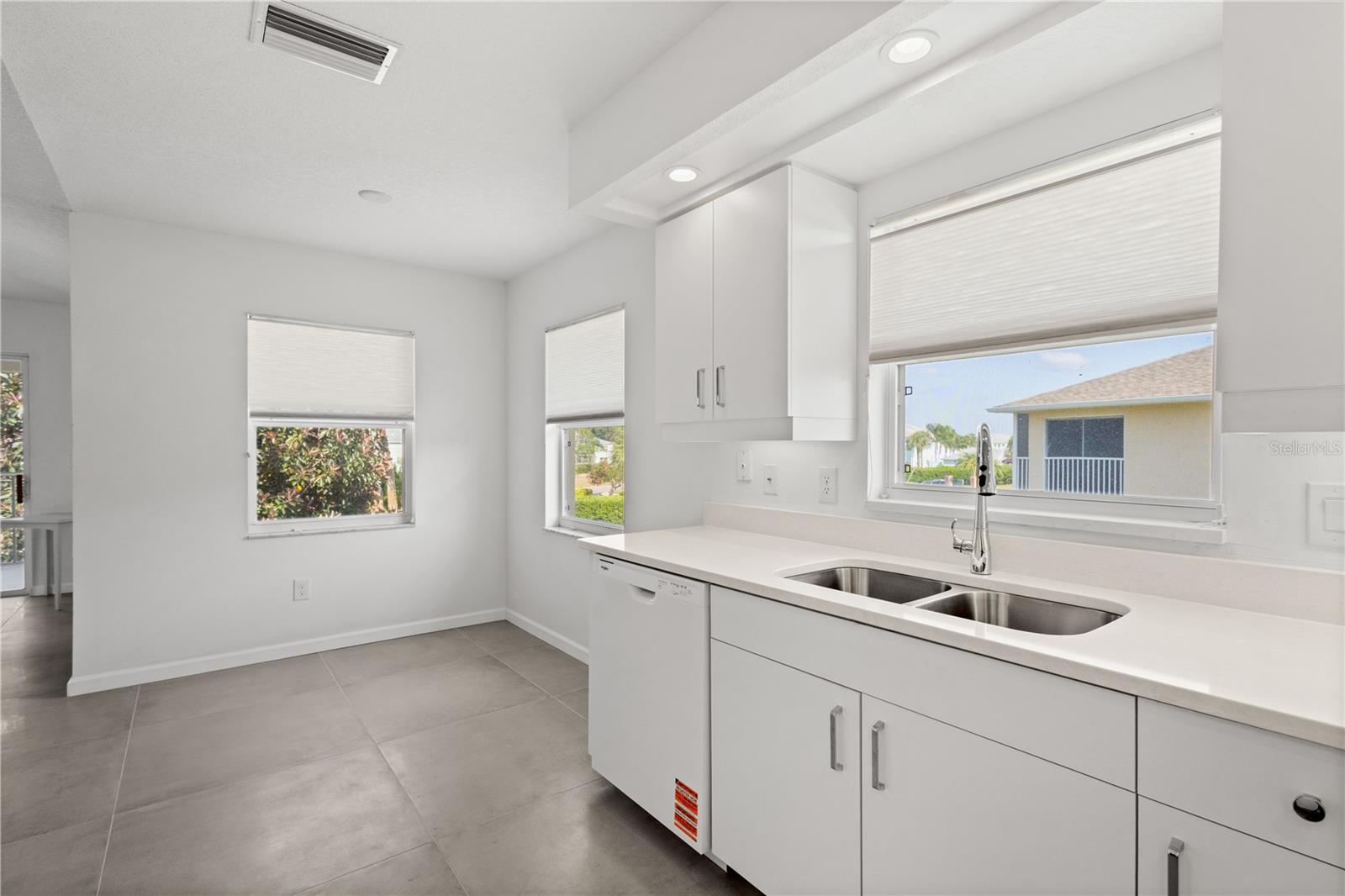 WOW! Come enjoy this beautiful completely updated MOVE IN READY 2 bedroom 2 bath condo in Sabal Trace at Linkside! This spacious home with over 1300 sq ft is light and bright with new 32”X32” soft gray porcelain tile throughout the main living area. Lots of windows to allow in the natural light and provide a great open feel. The updated kitchen is enhanced with new appliances, white cabinetry with under cabinet lighting and recessed over cabinet lighting, rich looking quartz counter tops, and window over the stainless steel sink. The dinette area just off the kitchen is surrounded by windows for even more of an open feel… the perfect place to start your day! The combination dining room, with new light fixture, and living area are complimented with sliding doors that lead out to your private balcony. The generous size primary bedroom has new carpeting, with ensuite bath, two closets, walk in shower, vanity with dual sinks. The primary bedroom also features sliding doors that lead out to your private balcony. This is a true split floor plan with the nice size guest bedroom, with new carpeting, is located on the opposite side of the home providing the ultimate in privacy for you and your guests. The adjacent guest bathroom offers a shower/tub combination, white cabinet vanity. Lots of extras in this special home including, nice size laundry room, large storage closet, storm door, all new comfort height commodes, all freshly painted inside, Hunter Douglas blinds and Vertiglide shades, updated plumbing fixtures, newer AC 2022, and newer water heater 2023! The HOA is making all repairs from previous storms to the Linkside Community and it will be back to it previous glory to make everything like new again! Roof replacements, repairs, painting, new carports and dumpster areas are being completely rebuilt. This location is ideal, close to restaurants, shopping, local beaches, Cool Today Park and Warm Mineral Springs. NOW is the time to make this home yours and enjoy the carefree Florida lifestyle!