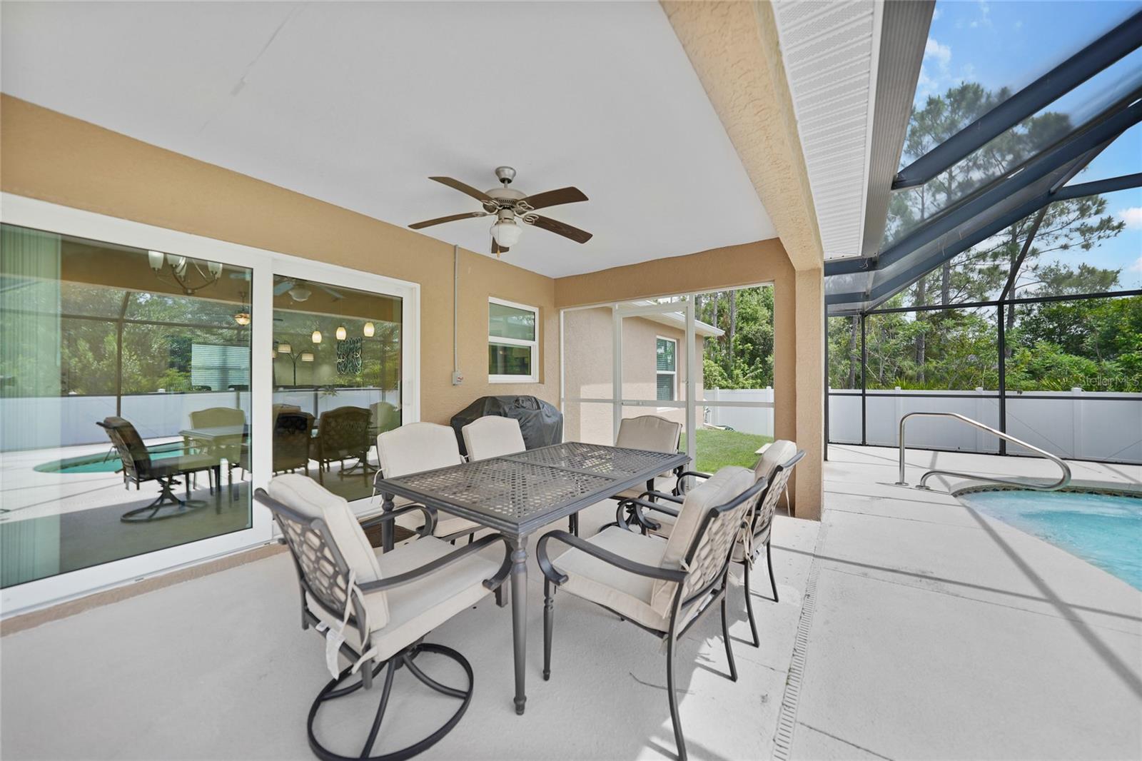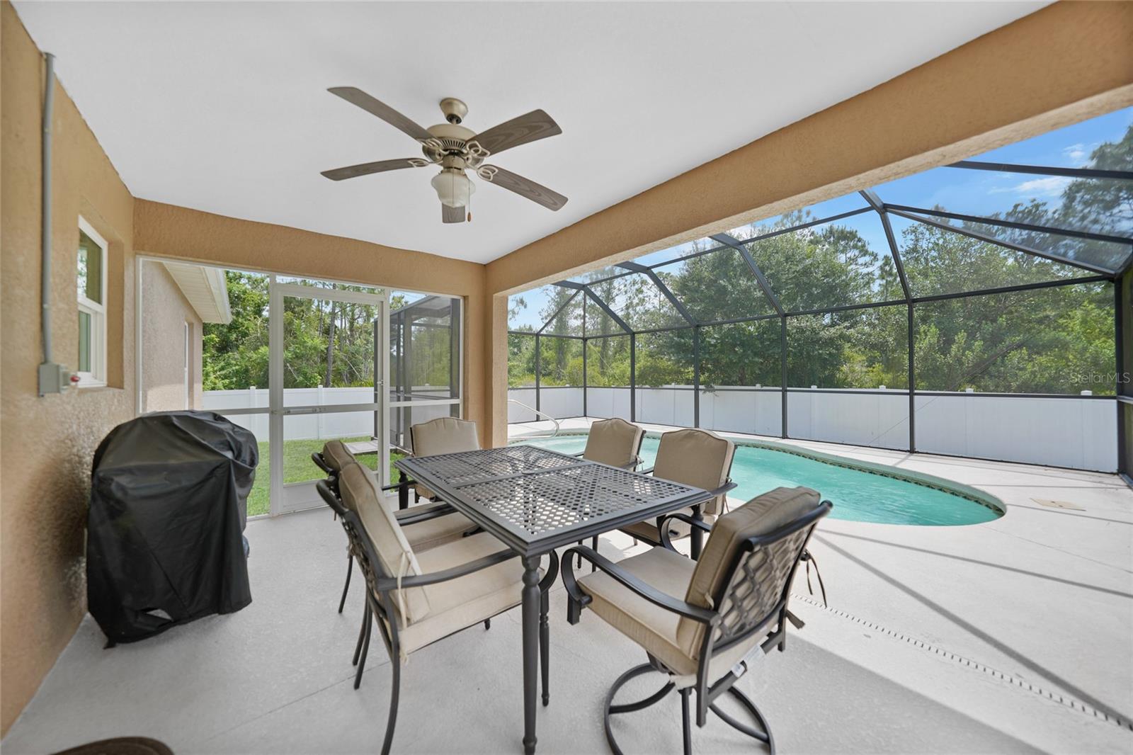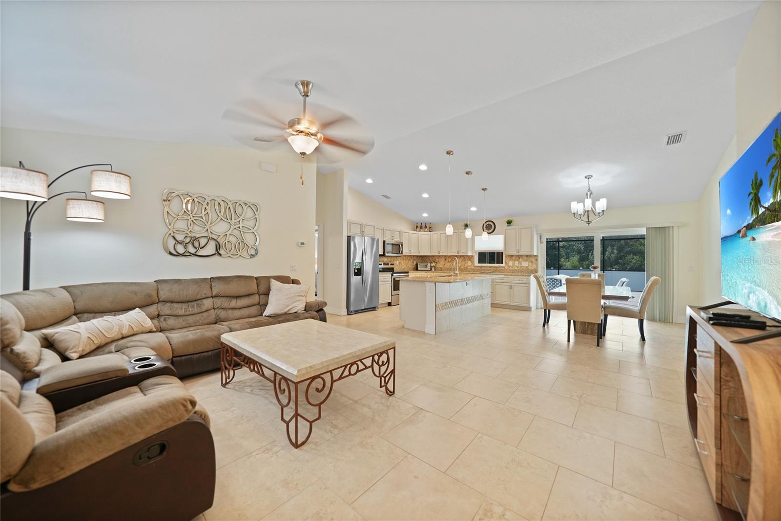 Welcome to this beautiful turnkey... fully furnished home ideally located near I-75 and Sumter Boulevard, offering quick access to Wellen Park, Coco Plum Plaza, the Braves Spring Training Center, and some of Florida’s most breathtaking beaches. Owner used this home as a seasonal residence since construction. The central location combines convenience with lifestyle, putting shopping, dining, entertainment, and outdoor adventures just minutes away. Inside, the home is loaded with premium features and stylish finishes. Hurricane impact windows, tile flooring throughout the entire home, enhancing both durability and elegance. The spacious kitchen is a chef’s dream, complete with granite countertops, custom cabinetry, large kitchen island, and stainless steel appliances. Soaring ceilings add to the open and airy feel of the living spaces. The split floor plan provides privacy and functionality. The primary suite includes walk in closet, dual sinks and walk-in shower, offering a comfortable and serene retreat. On the opposite side of the home, two guest suites share a well appointed bathroom with a tub and shower combination. Step outside to your private backyard oasis featuring a sparkling blue pool, a covered and screened porch for year-round enjoyment, and a fully fenced yard, irrigation...perfect for entertaining or simply relaxing in your own slice of paradise. Bonus- not in a flood zone and no HOA. Recently updated HVAC, hot water heater and pool filter. This home has everything you need for comfortable Florida living!