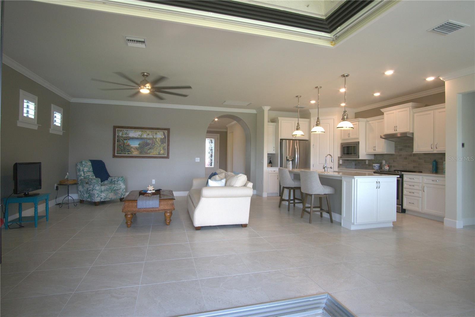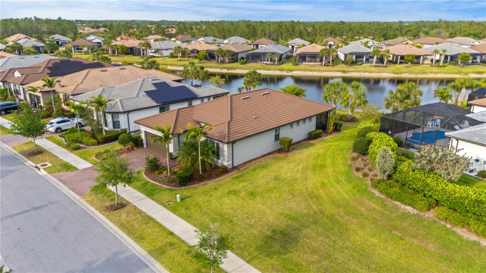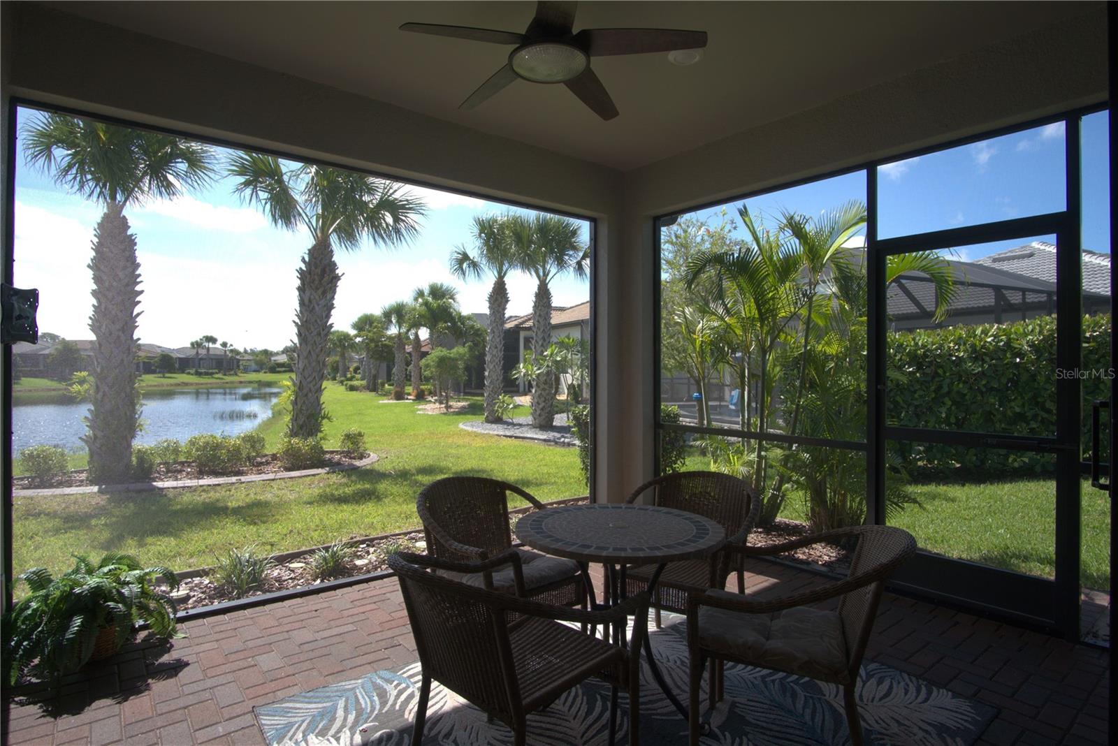 Welcome to this beautifully maintained 3-bedroom, 2-bathroom home in the highly sought-after 55+ gated community of Cypress Falls. Perfectly situated on a private lot with serene water views and no backyard neighbors, this home offers a rare blend of elegance, comfort, and vibrant community living. Step inside to discover a bright, open-concept layout that effortlessly connects the living, dining, and kitchen areas—ideal for entertaining or simply relaxing. The gourmet kitchen features modern appliances, ample counter space, and a convenient breakfast bar, making everyday living a joy. The spacious master suite is a true retreat, complete with dual vanities, a walk-in shower, private toilet room, and a generous walk-in closet. Two additional bedrooms offer plenty of natural light and storage, while a flexible den provides the perfect space for an office, library, or creative nook. Zero-entry sliding doors open to a peaceful private patio, where you can enjoy your morning coffee while taking in the tranquil water views. Designed with both comfort and safety in mind, the home also includes hurricane protection for year-round peace of mind. Beyond your front door, Cypress Falls offers a resort-style lifestyle with amenities like a clubhouse, heated lagoon and resistance pools, tennis and pickleball courts, a fitness center, and a wide variety of social clubs and activities. From yoga and tai chi to card games and crafting, there’s something for everyone. Whether you’re looking for a peaceful retreat or an active social scene, this home offers the best of both worlds. Come see why life in Cypress Falls is so special—you’re going to love it here.