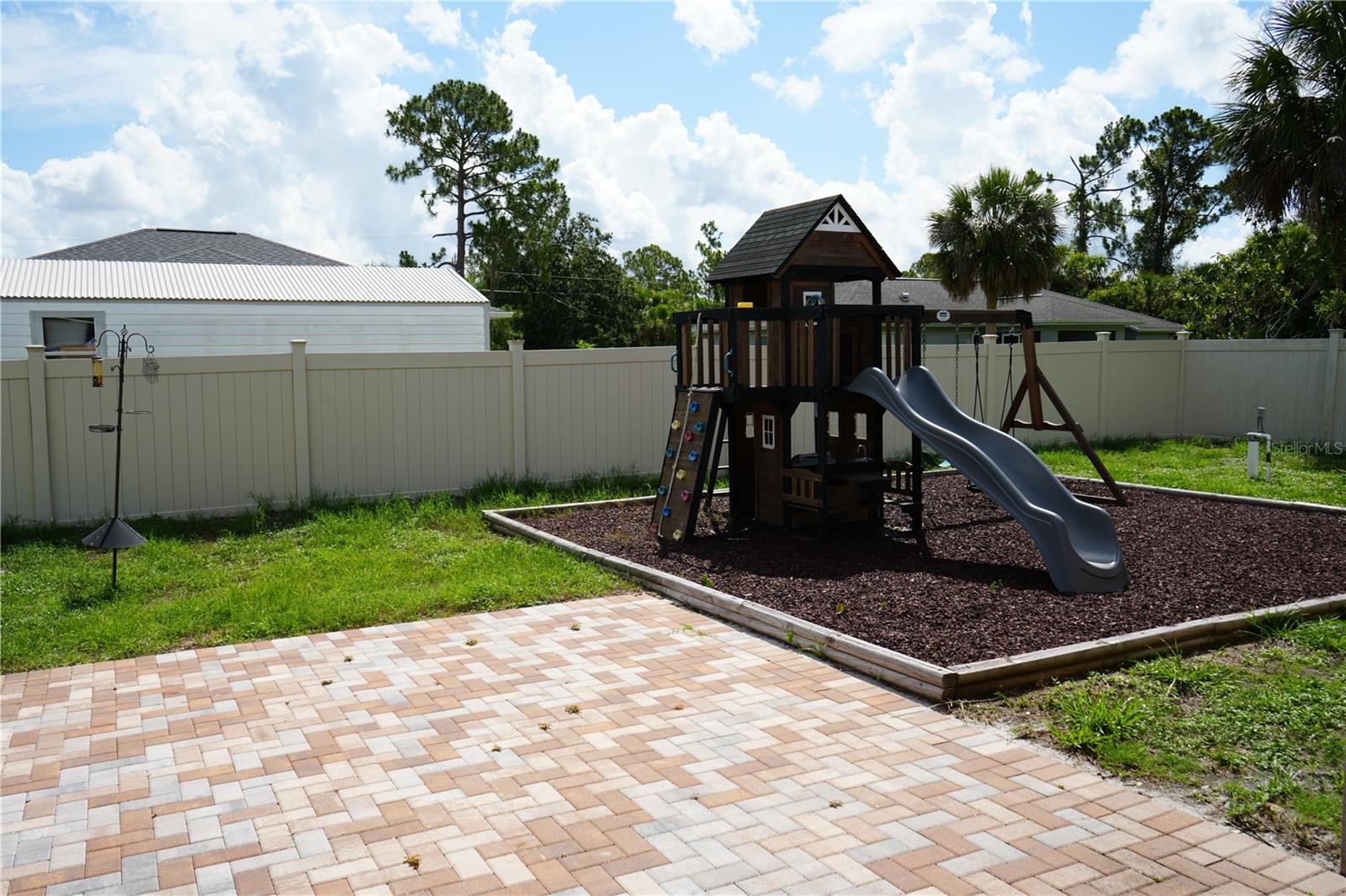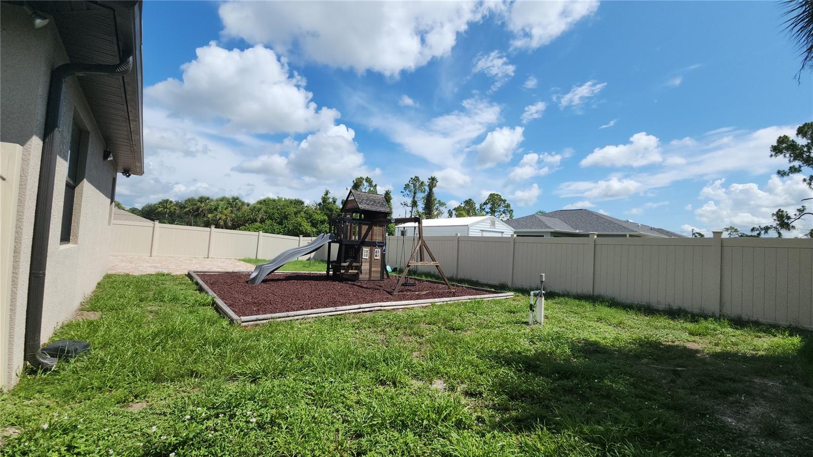 Welcome to this well-maintained 3-bedroom, 2-bathroom home situated on a corner lot, nestled in a quiet, peaceful neighborhood, in the heart of North Port, Florida. Built in 2016, this property offers the perfect blend of modern living and Florida Charm. Open Concept layout with split bedroom floor plan. Primary suite with en-suite bath. Spacious kitchen with modern appliances and plenty of cabinet space, even has a separate pantry. Fully fenced in backyard- perfect for kids, pets, and privacy. Two car garage with ample driveway parking. Located close to shopping, schools, parks and I-75. Whether you are a first-time homebuyer, growing family, or snowbird looking for a sunny escape, this home checks all the boxes. This property is in a non-flood zone.