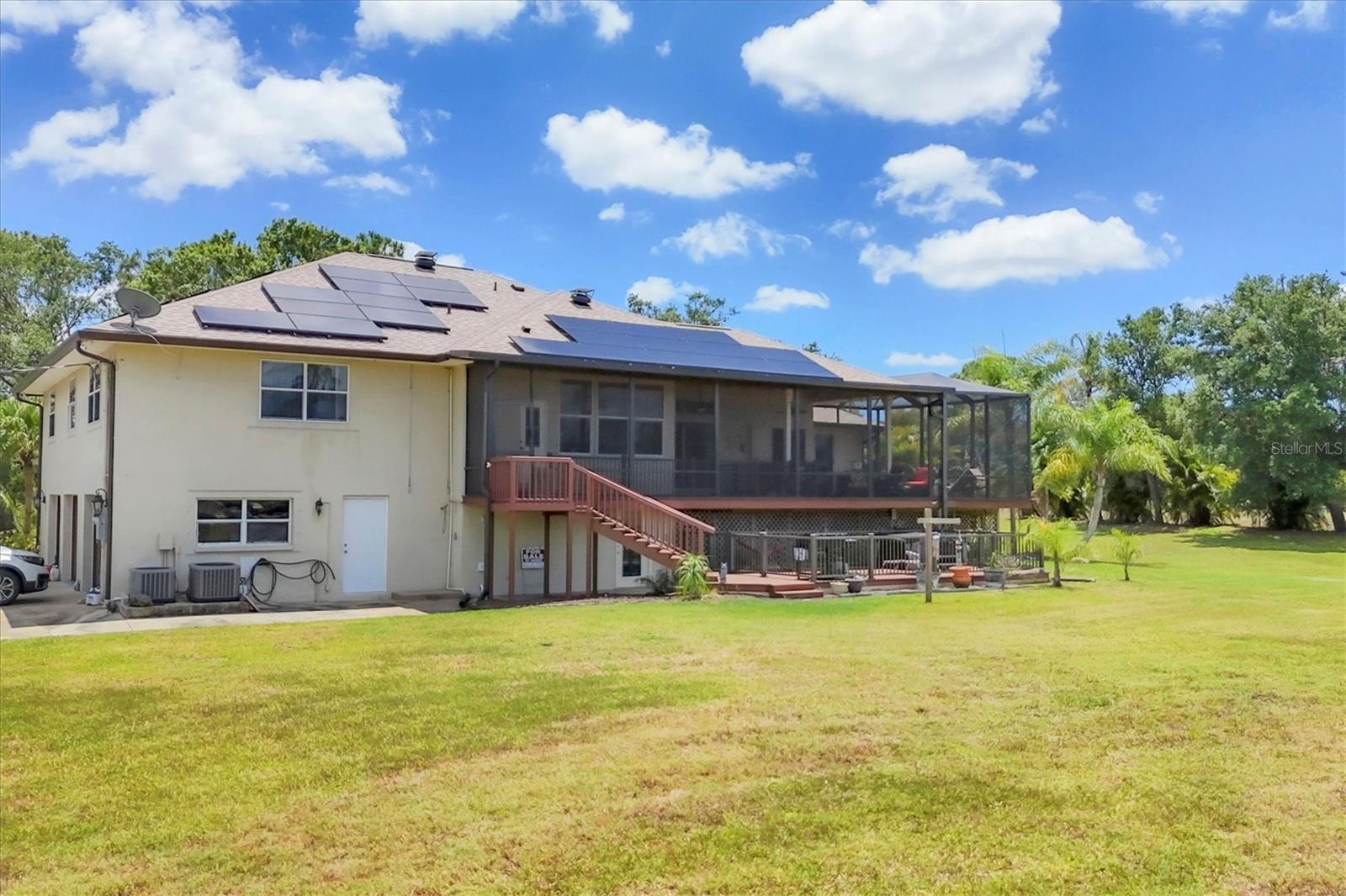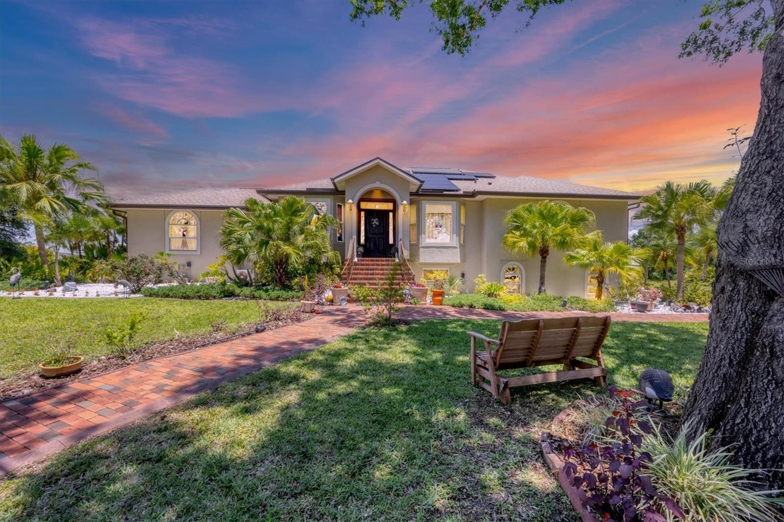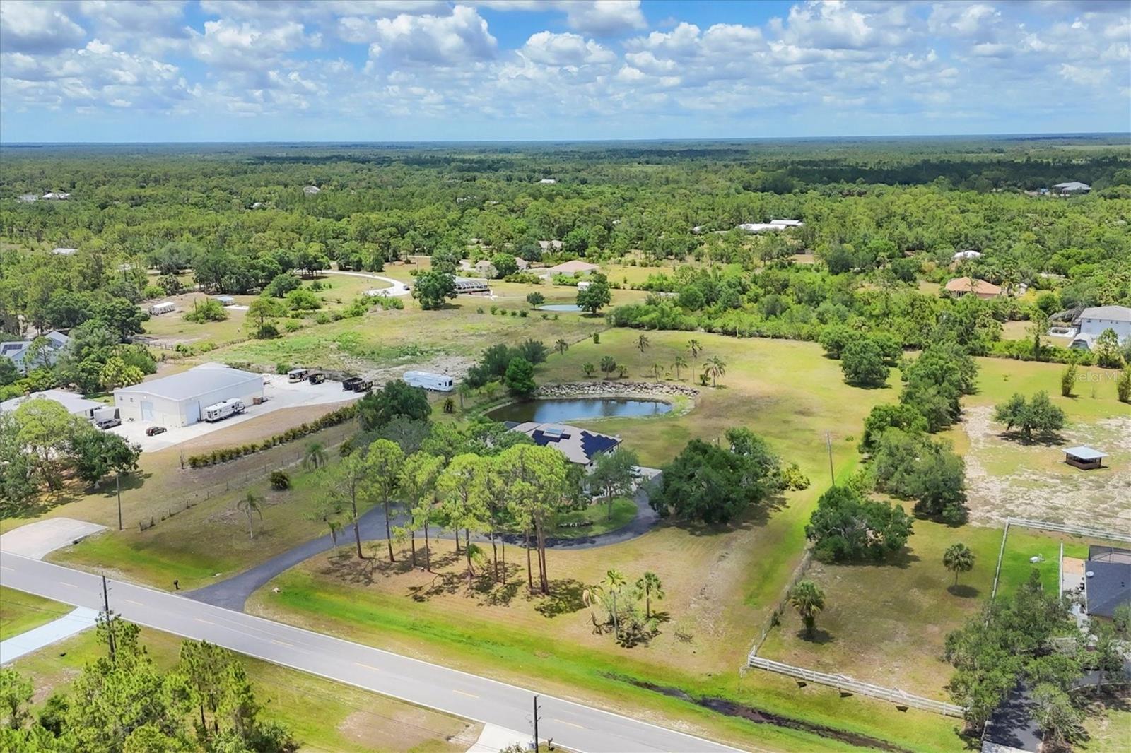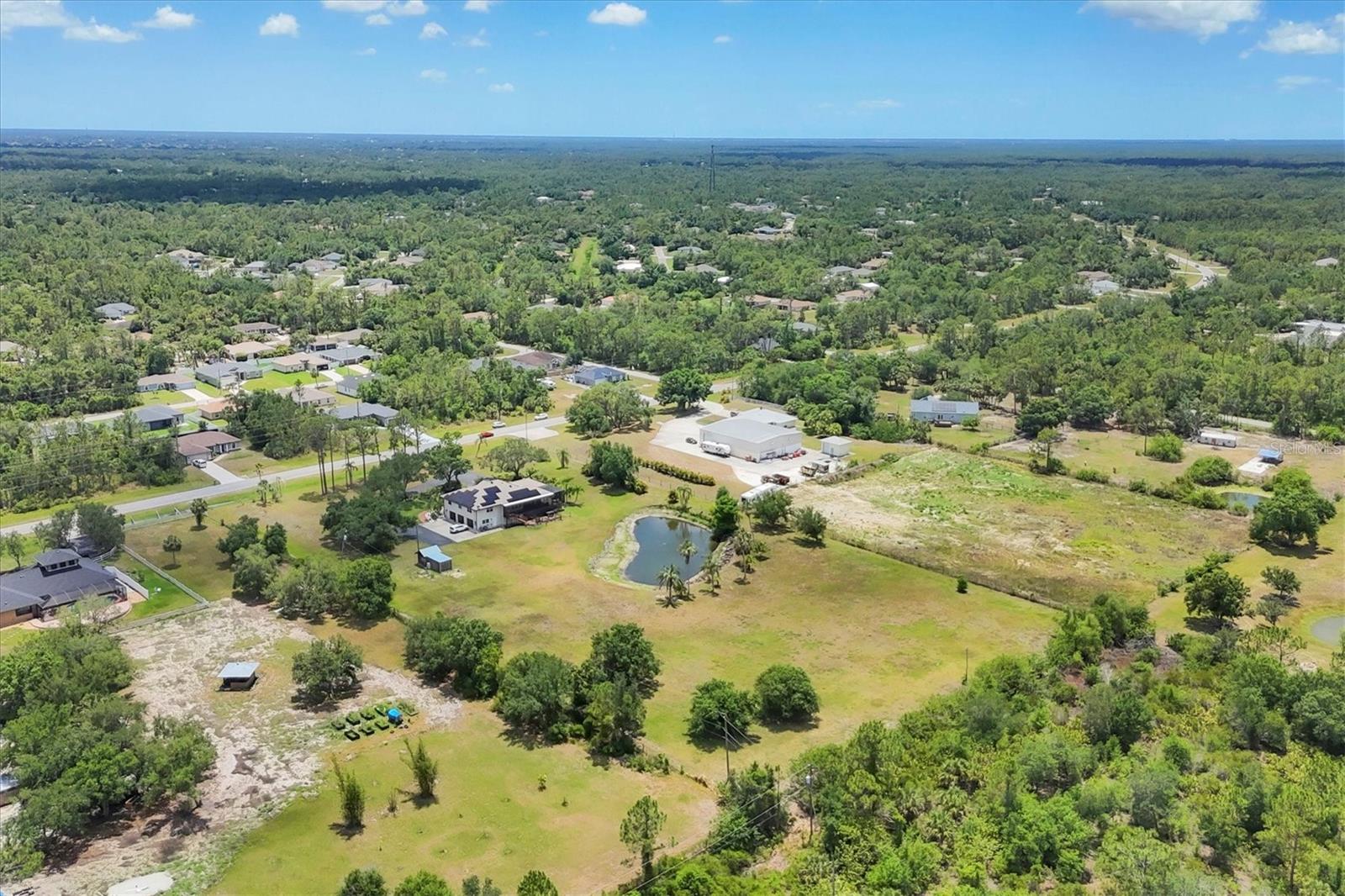 *Seller is offering $10,000 credit toward buyer’s closing costs* Elegant Custom Estate on Over 4 Acres with In-Law Suite – No Flood Insurance Required! Welcome to your private retreat just minutes from town! This stunning 4-bedroom + den, 3.5-bath custom home with a 3-car garage sits on over 4 acres of serene, agriculturally zoned land that is ideal for horses, farm animals, or simply embracing a peaceful country lifestyle. Step inside to soaring ceilings, rich Bolivian Rosewood flooring, and an open-concept layout that blends everyday comfort with timeless elegance. The main living area features oversized sliding pocket doors that open fully to a screened Trex deck, creating seamless indoor-outdoor living, perfect for entertaining. The thoughtfully designed kitchen combines form and function with Cherrywood cabinetry, granite countertops, a tile backsplash, stainless steel appliances, a counter-height breakfast bar, and a sunny breakfast nook overlooking tranquil pond views. A separate family room and formal dining room add to the home's versatility, while a dedicated office makes working from home a breeze. A split-bedroom layout offers privacy for everyone. The guest wing includes two bedrooms, a full bath plus a 1/2 bath with stackable washer/dryer, along with generous closet space. The expansive primary suite, with private lanai access offers two closets—including a large walk-in—and a spa-inspired bathroom featuring granite counters, dual sinks, custom cabinetry, a jetted soaking tub, and a beautifully tiled walk-in shower. One of the home’s most unique features is the approx. 2,000 SQFT in-law suite, providing outstanding flexibility for multigenerational living, guest accommodations, or rental income. With its own private entrance and interior access, it includes a spacious living/dining area, oversized bedroom, full bath, kitchenette, wood plank style tile flooring throughout, a large laundry room, and its own mini-split A/C system. Enjoy outdoor living at its finest with your choice of spaces, from the upper screened lanai to the open-air lower deck that features a hot tub! The perfect space for watching fish jump in your private pond, taking in the peaceful surroundings, or stargazing at night. This country estate is loaded with upgrades, including a new roof, gutters, and upgraded enclosure screens (2022), Hurricane-rated garage doors with epoxy flooring, new flooring in guest bedrooms, whole-home solar energy system, dual HVAC systems and 18” attic insulation, whole-house reverse osmosis water system, dual water heaters (solar and hybrid), central vacuum and invisible pet fencing, well-fed irrigation system and backyard shed, tropical landscaping with landscape lighting, RV parking with hookup, plus a portable Generac generator is included (not currently connected). Best of all, this home is not located in a flood zone—flood insurance is not required, offering peace of mind and additional savings. Agricultural zoning allows you to fully enjoy a rural lifestyle. Bring your horses, plant a garden, or raise animals while still being just minutes from I-75, Gulf beaches, shopping, dining, and parks. This exceptional property offers elegance, space, and versatility, a rare opportunity that won’t last. Schedule your private showing today and see everything this one-of-a-kind estate has to offer!