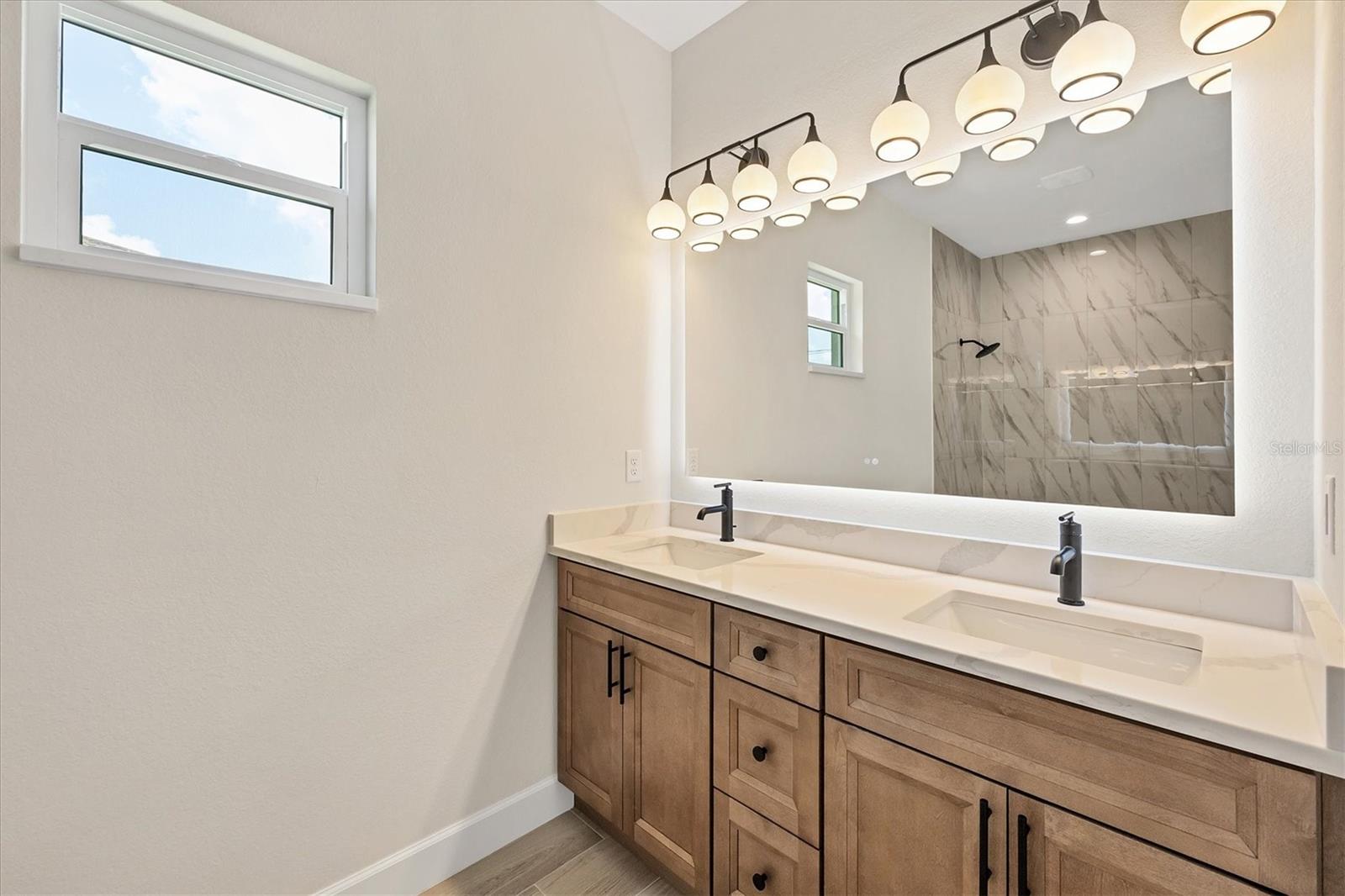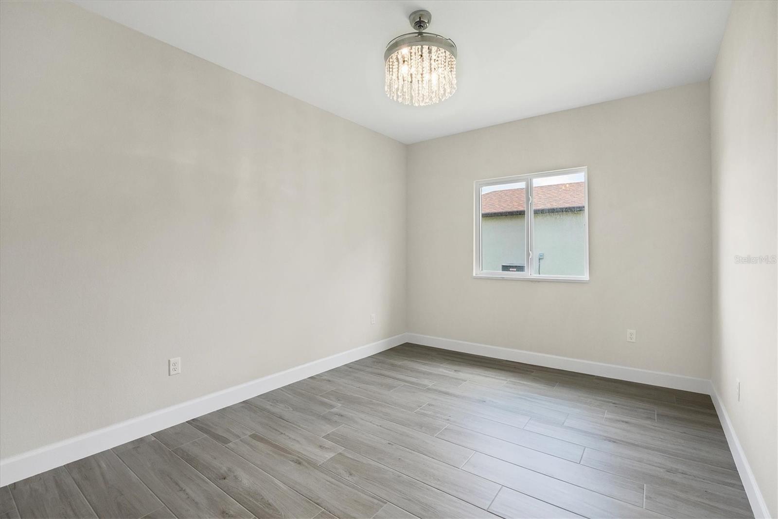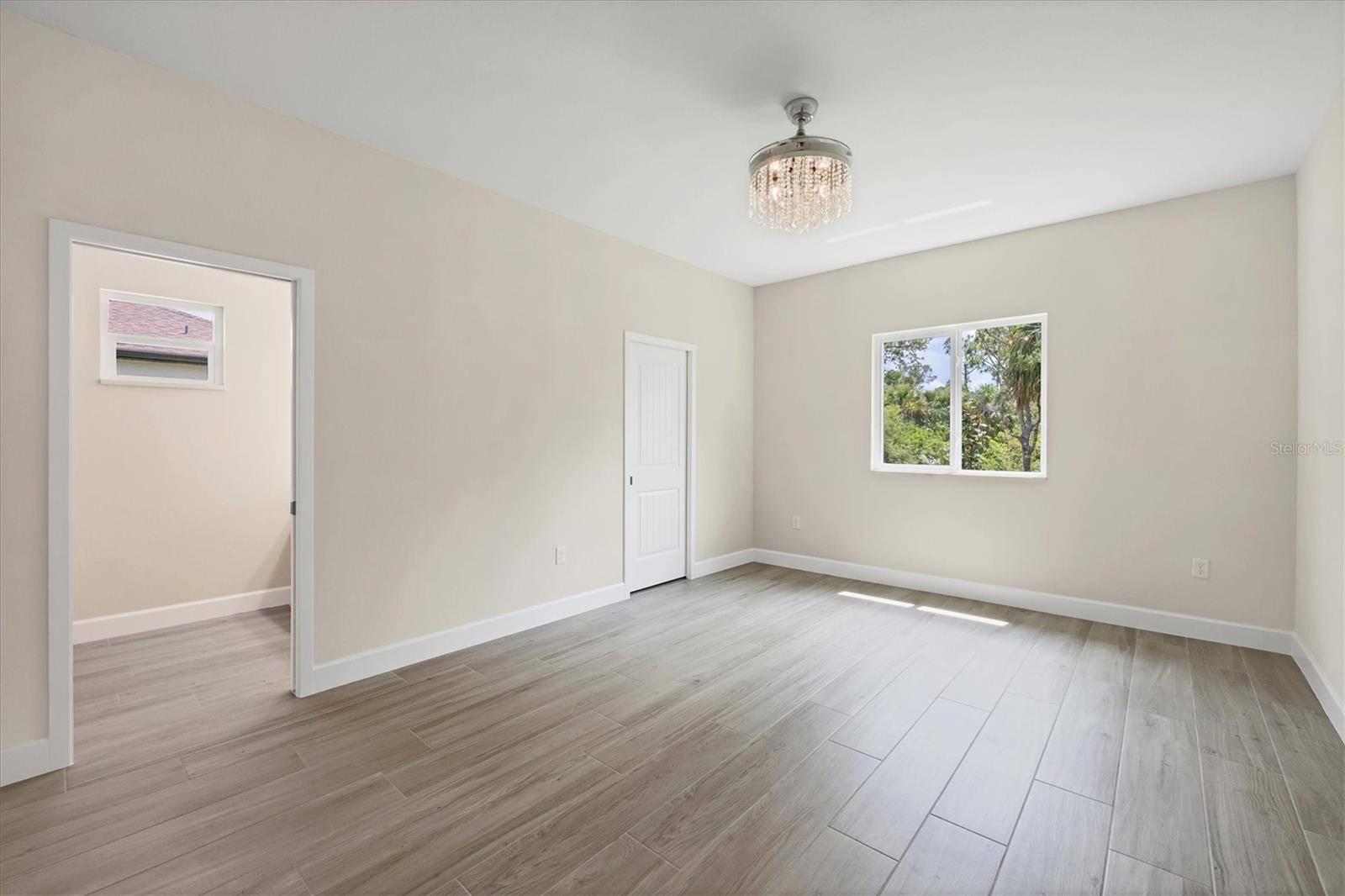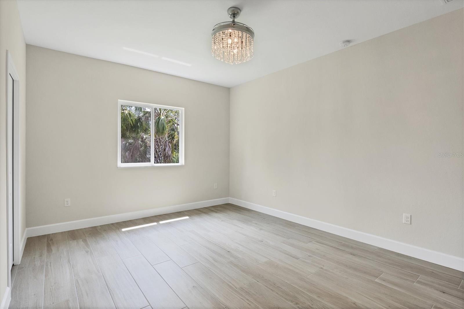 FRESHWATER CANAL VIEW. Brand-new modern classic luxury home featuring 3 bedrooms, 2 bathrooms, and a fully enclosed office (optional 4th BR) with soaring 9.4' ceilings. Located in a prime area with no HOA and outside the flood zone. Interior showcases Spanish porcelain tile throughout, impact-resistant windows and doors, and an open-concept living space with large double doors leading to a tiled lanai overlooking a peaceful freshwater canal. The chef’s kitchen includes quartz countertops, 42" soft-close cabinets, under/over cabinet lighting, stainless steel appliances, range hood, and stylish backsplash. The primary suite offers a walk-in closet and spa-like en-suite bath with a double vanity, linen closet, and walk-in shower with bench. Both bathrooms have full-length tiled shower walls. MOEN plumbing fixtures are featured throughout the entire home for consistent quality and style. Additional highlights: Interior laundry room with sink, seamless gutters, quartz windowsills, and designer lighting throughout.