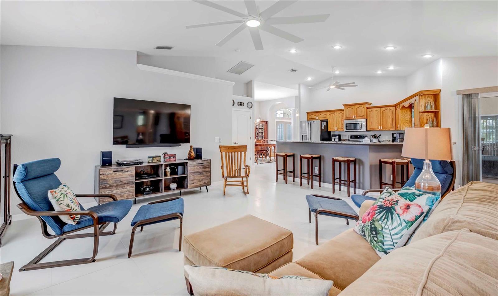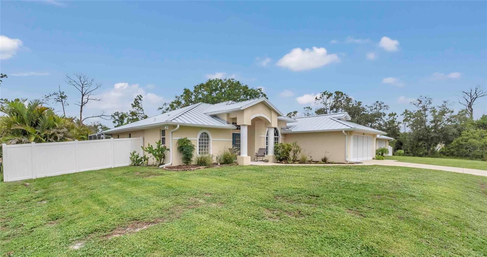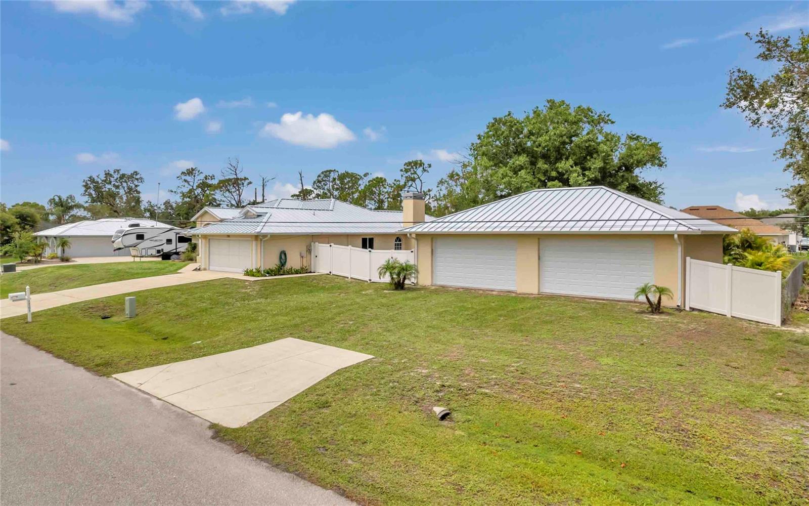 Welcome to your Florida retreat! Tucked away on an oversized lot with mature tropical landscaping in sunny North Port, this spacious 4 bedroom, 2 bathroom pool home offers that relaxed, coastal lifestyle you’ve been dreaming of. From the moment you open the door, you’re welcomed by tall ceilings, tons of natural light, and an immediate view of the heated pool — the kind of first impression that makes every day feel like a getaway. With over 2,300 square feet of clean-kept living space, this home was designed for comfort, functionality, and good vibes. The kitchen has been fully remodeled and shines with upgraded granite countertops & stainless steel appliances,— perfect for everything from quick breakfasts to weekend hosting. Ceramic tile flows throughout the home, keeping things cool, low-maintenance, and cohesive. The primary suite is a total retreat, complete with custom walk-in closets and a recently remodeled walk-in shower that gives off spa energy. Two additional bedrooms provide space for guests or family, while the dedicated office offers a quiet, tucked-away spot for working from home, creative projects, or just closing the door and having some “you time.” Step out back, and your Florida lifestyle kicks into full gear — the heated pool is the centerpiece of a backyard built for both relaxing and entertaining. Surrounded by lush, mature landscaping, a paver deck fire pit area, and a fully fenced yard, there’s room for the whole family, pets, hammocks, and good times under the stars. Saving the best for last - for those who need space to tinker, create, or store all the toys — the detached, air-conditioned 4-car garage with impact-resistant doors checks all the boxes. Whether it’s your workshop, gym, or weekend escape space, it’s ready to go. And yes — it gets even better: This home is not in a flood zone — so no flood insurance required There’s no HOA and no CDD — enjoy your space and your freedom The split floor plan offers privacy and flow The home has been meticulously maintained, and you can feel the pride of ownership in every detail Just a short drive to shopping, dining, nature trails, golf, and the Gulf Coast’s best beaches Whether you're lounging by the pool, working in your home office, or relaxing around the fire pit at sunset, this home offers the perfect blend of chill, charm, and space to truly live. Come experience what easy Florida living really feels like.