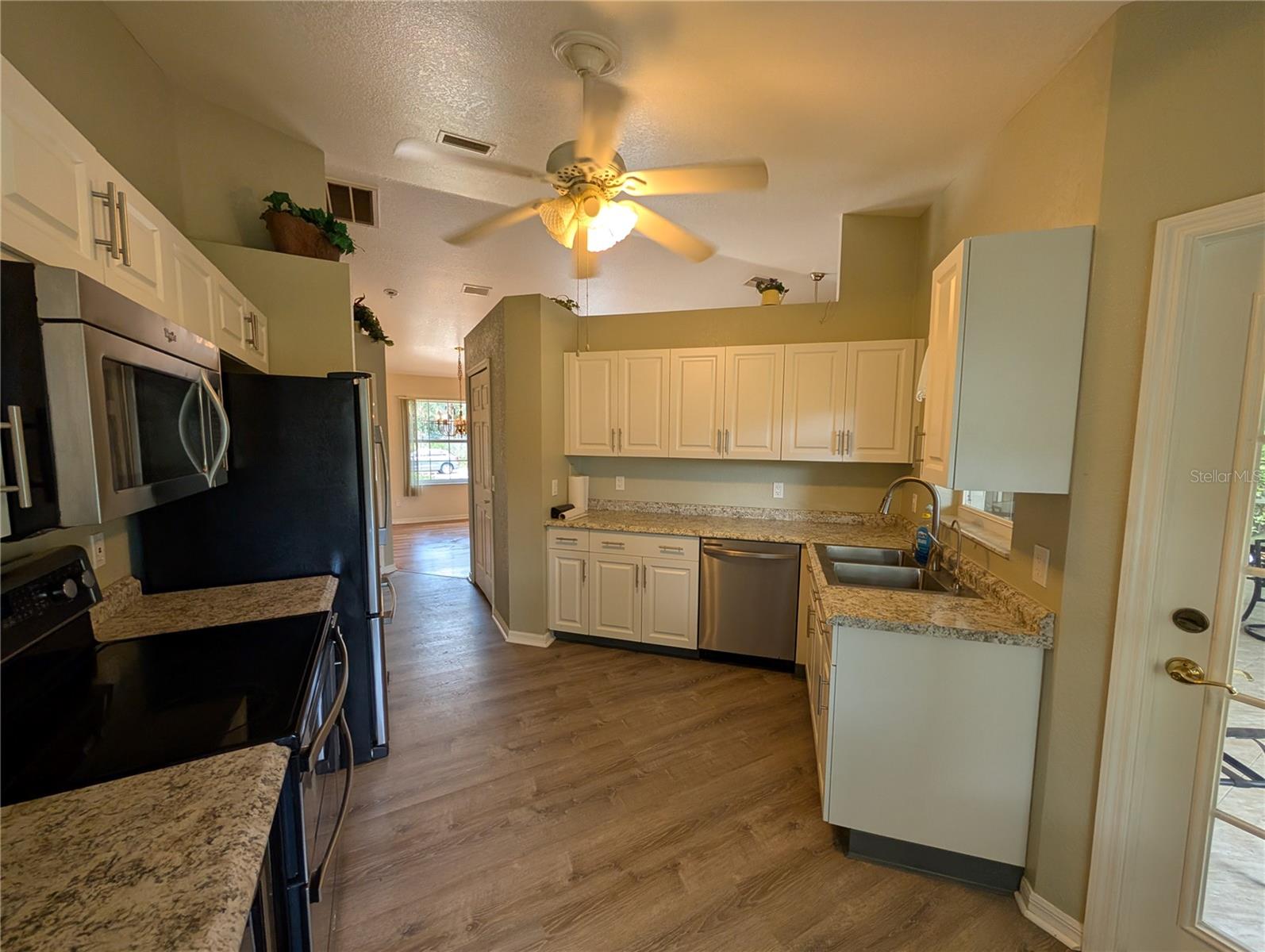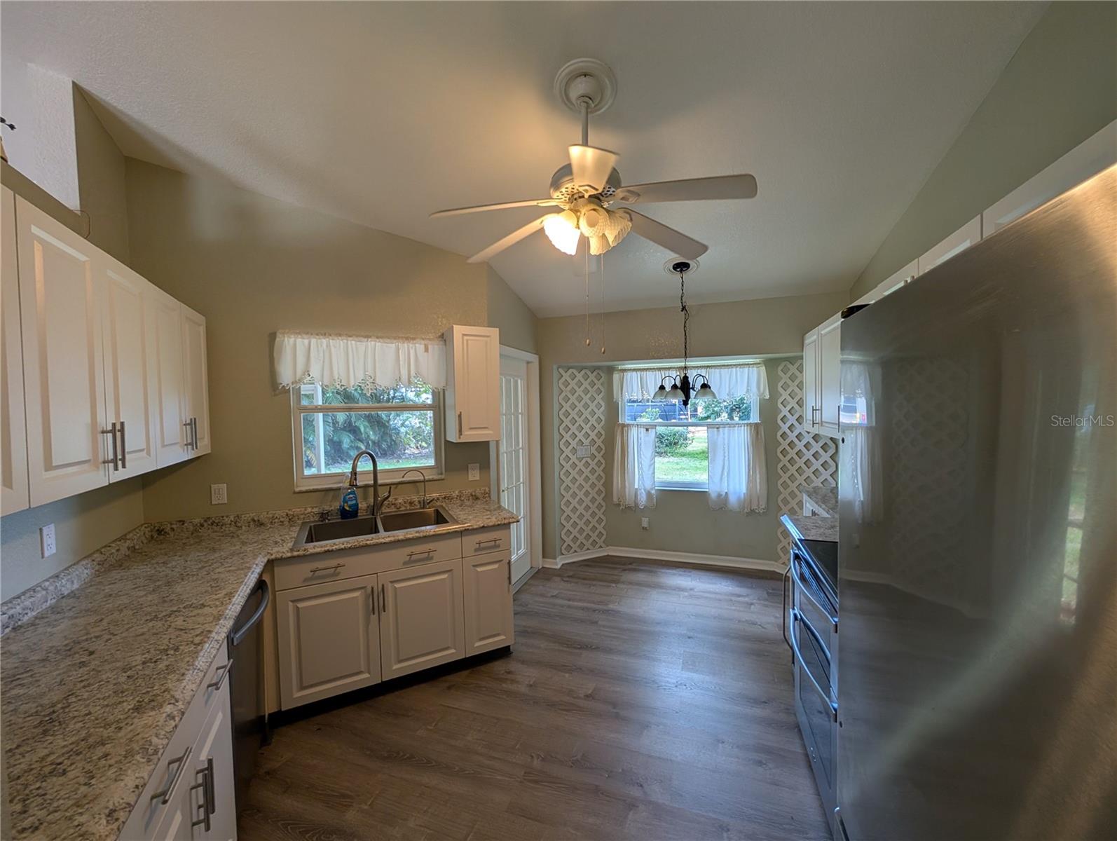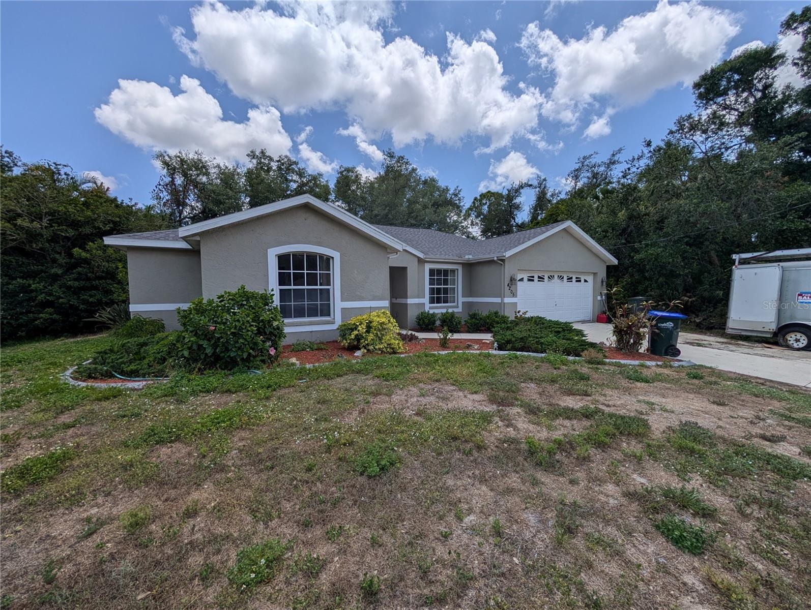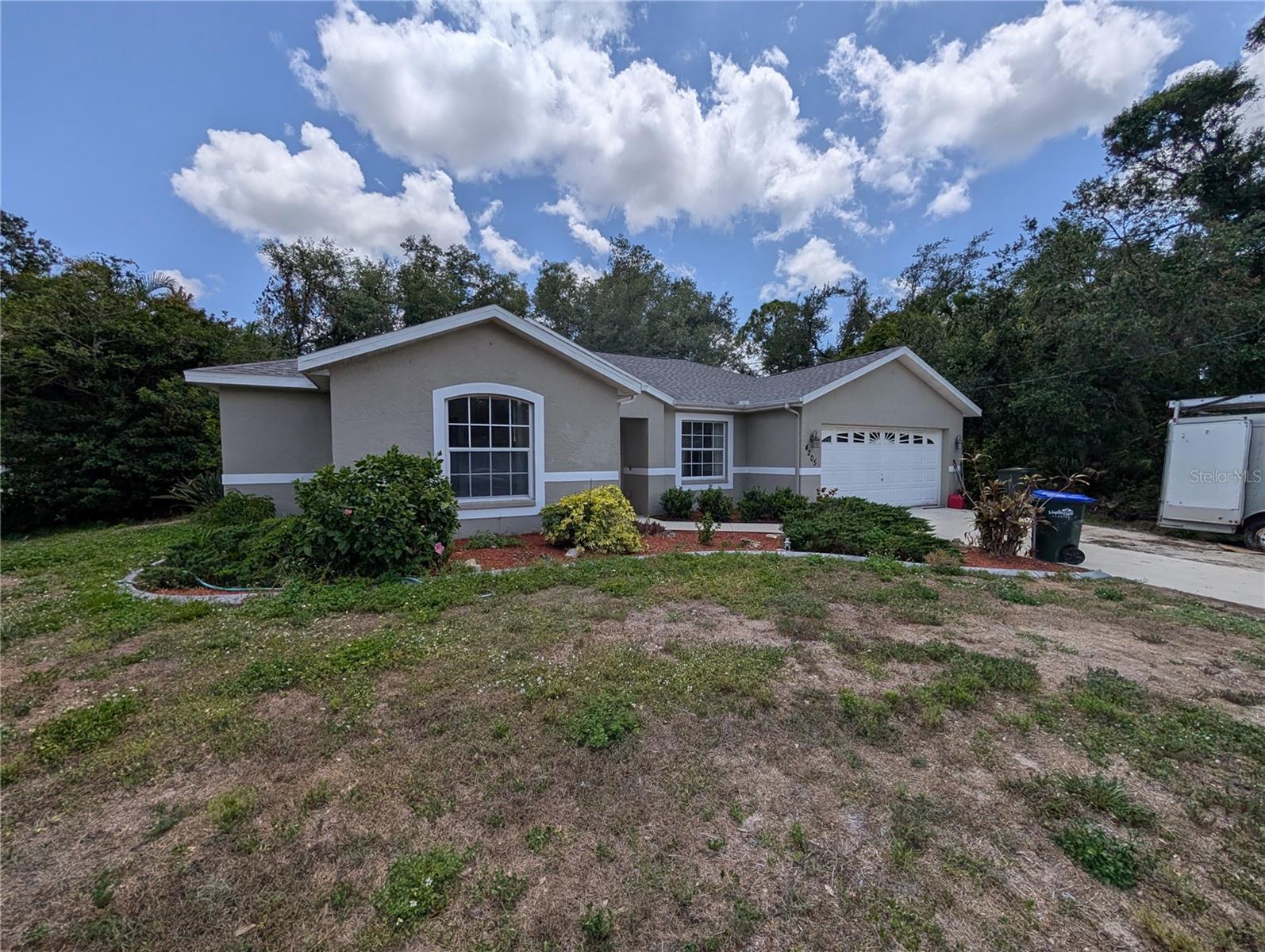 Discover this affordable 3-bedroom, 2-bathroom residence in desirable North Port! Situated conveniently less than 5 minutes from Interstate 75 and with shopping just moments away, this home offers both ease of access and local amenities. Inside, you'll find vaulted ceilings in the living room that seamlessly connect to the lanai and backyard. The kitchen provides ample space for a table, and there's a separate formal dining area. The thoughtful split bedroom design ensures a private master retreat. The property also includes a 2-car attached garage, a nice driveway, and a substantial backyard. While the home needs some wall and ceiling cleaning and fresh paint to eliminate a smoke odor, the price reflects this, and new carpets have been installed in the secondary bedrooms. Don't let this fantastic opportunity pass you by!
