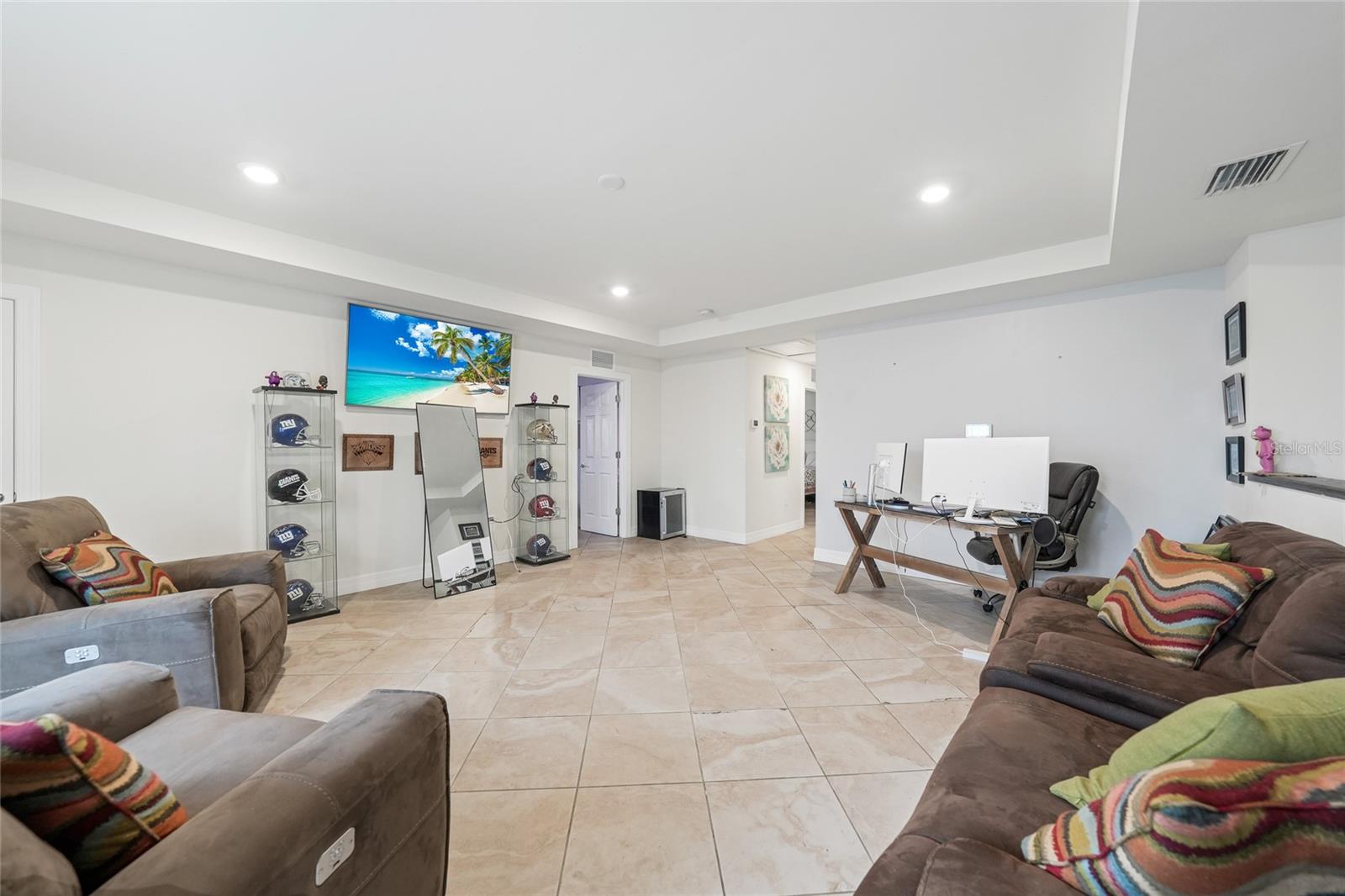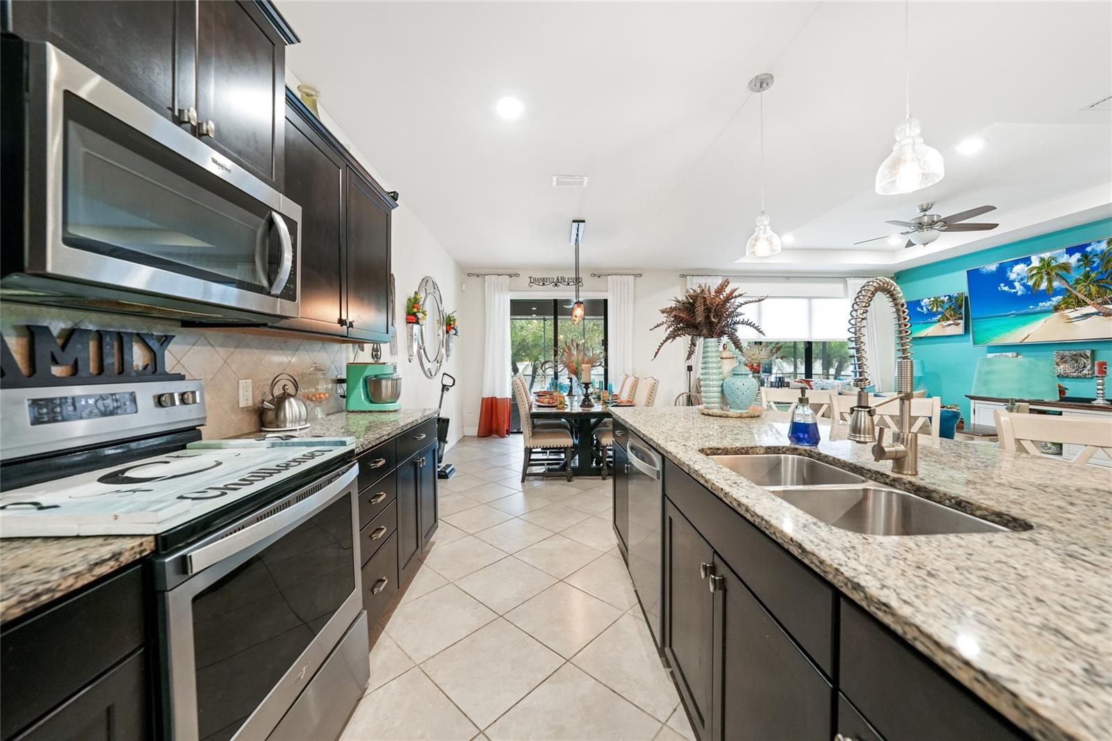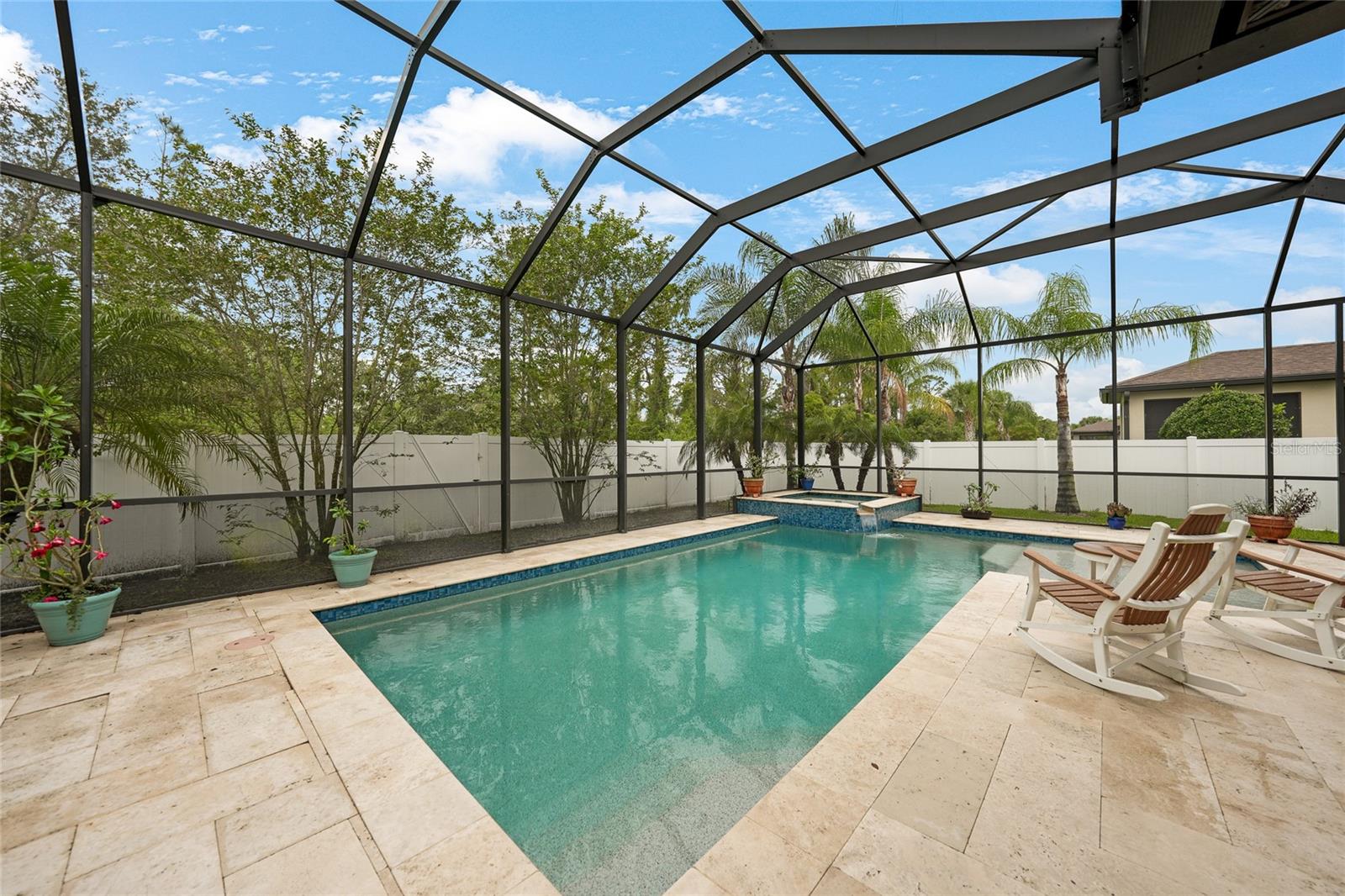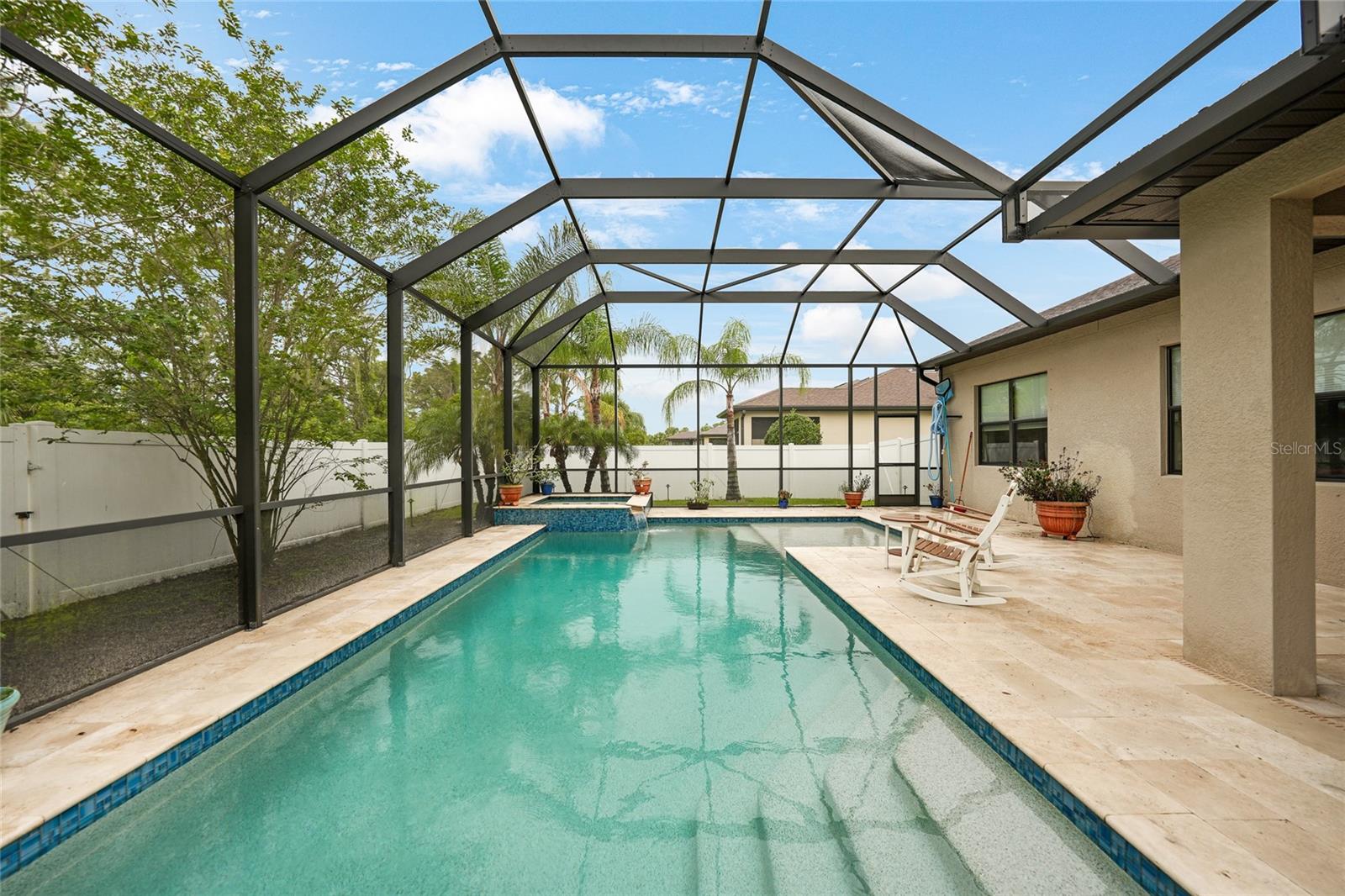 Nestled in the desirable Cedar Grove community of North Port, Florida, 2515 Sherman Oak Dr offers an exceptional living experience with 2,856 sq ft of meticulously designed space. Built in 2018, this two-story residence features 4 spacious bedrooms and 2.5 baths, combining modern elegance with everyday functionality. Upon entering, you'll be greeted by an open-concept layout adorned with neutral ceramic tile flooring set on the diagonal, creating a seamless flow throughout the main living areas. The gourmet kitchen is a chef's dream, equipped with stainless steel appliances, granite countertops, a large island with ample seating, and a walk-in pantry for added convenience. Adjacent to the kitchen, the expansive great room serves as the heart of the home, offering versatile space for relaxation and entertainment. The primary suite, conveniently located on the first floor, boasts tray ceilings, dual walk-in closets, and an ensuite bath featuring a glass-enclosed walk-in shower and dual-sink vanity. Upstairs, you'll find three additional bedrooms, a full bath, and a spacious loft area, perfect for a home office or playroom. Step outside to your private oasis, where a screened-in lanai houses a custom-built, heated underground pool and spa, surrounded by lush landscaping and enhanced with LED lighting for a tranquil ambiance. The fenced backyard ensures privacy, making it an ideal spot for year-round relaxation and entertaining. This home is situated within the Cedar Grove community, offering residents access to a community pool, playground, and sidewalks, fostering a friendly and active neighborhood atmosphere. Conveniently located near major highways, shopping centers, and top-rated schools, 2515 Sherman Oak Dr presents a rare opportunity to own a luxurious home in a prime location.