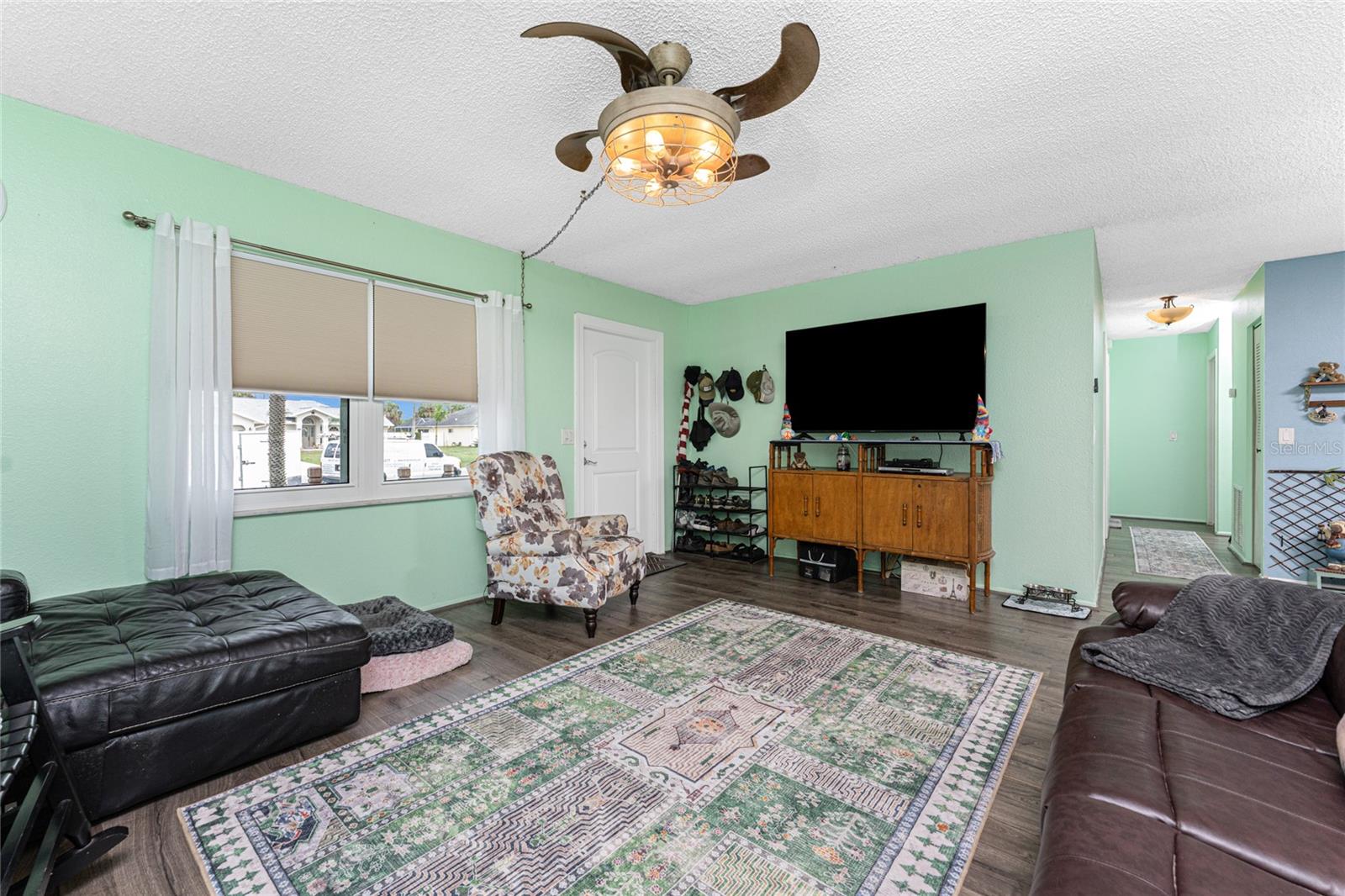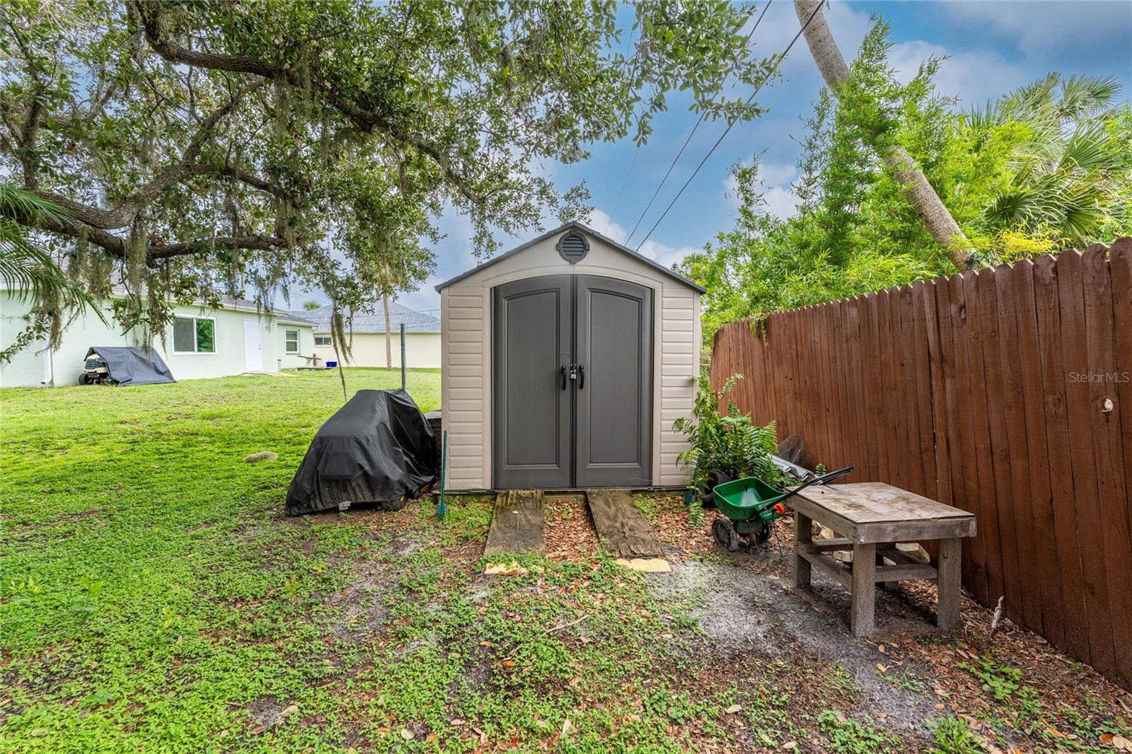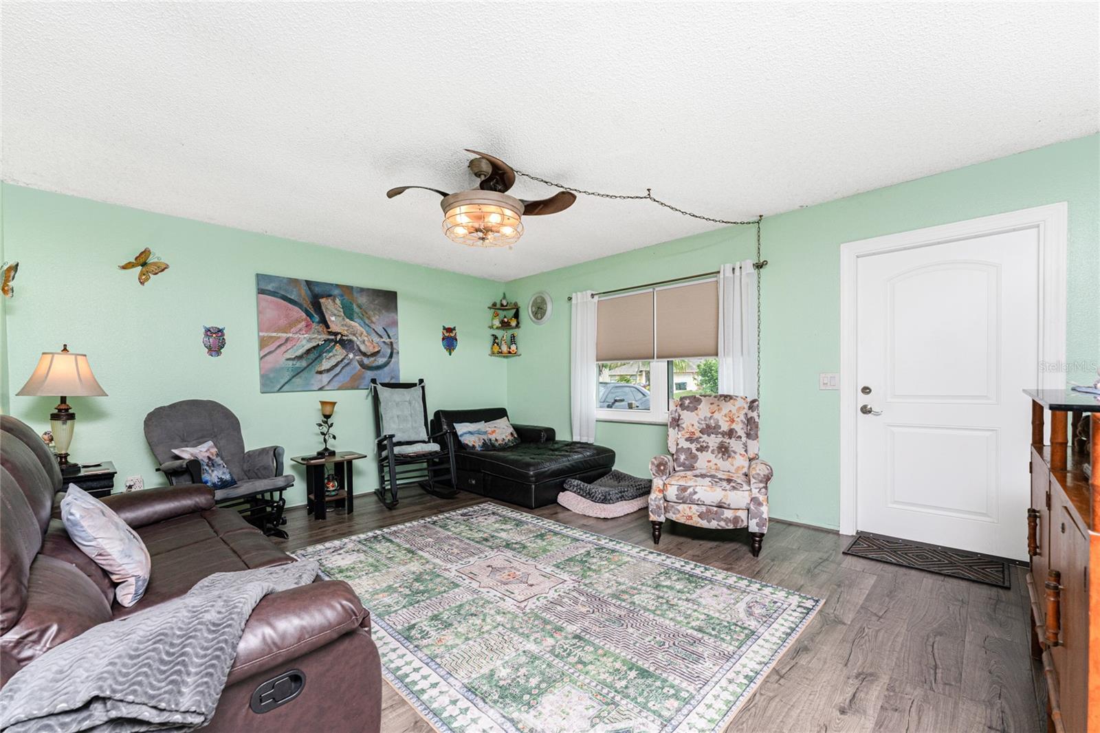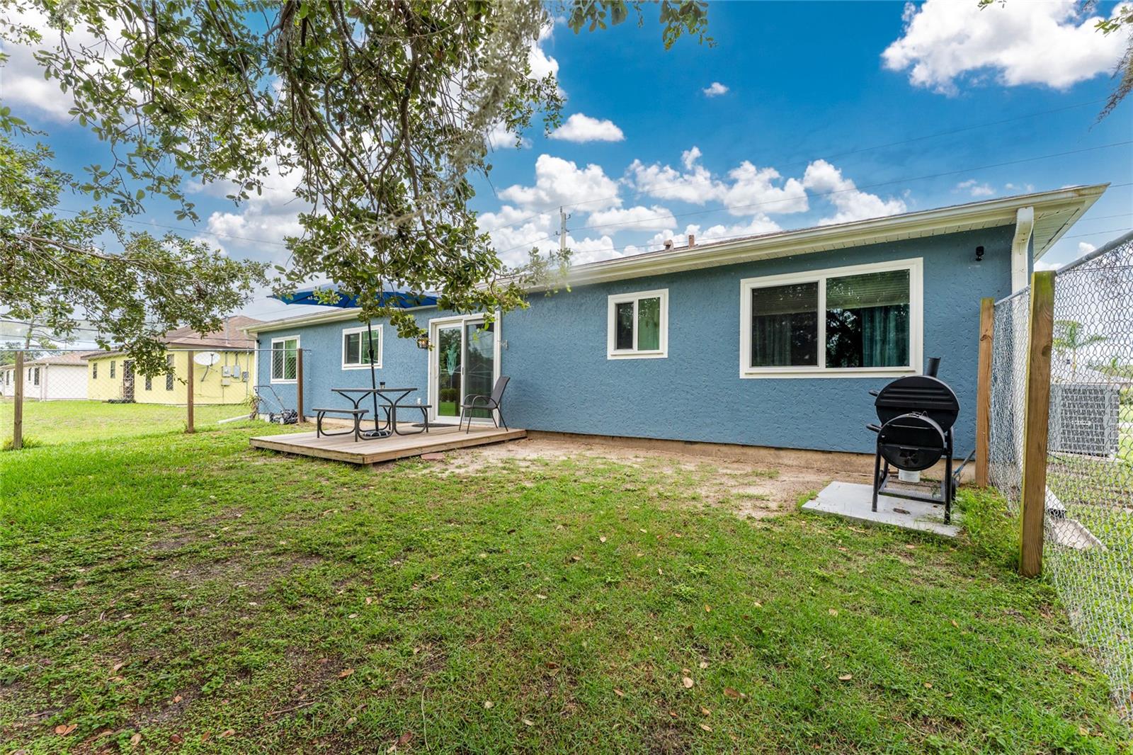 Absolutely perfect starter home ready for you to move in! This charming property features a BRAND NEW SEPTIC with NO increase in price, NEWER ROOF installed in 2020, giving you peace of mind for years to come. Enjoy incredible energy efficiency and storm protection with ALL NEW HURRICANE IMPACT DOORS and WINDOWS, complete with a transferrable lifetime warranty (yes, even the screens!). Taxes reflect PACE loan for windows and doors, which will be paid off at closing. Taxes will be reduced considerably. Stay cool and comfortable with a NEWER A/C system installed in 2022. You'll love the inviting front patio, perfect for relaxing. Inside, find stylish updated fans and light fixtures throughout, along with durable and attractive Pergo flooring in most of the home. The kitchen shines with newer appliances, including a high-quality Bosch dishwasher. Out back you will find a pet fenced area and some shade to cool off. This home is truly move-in ready and waiting for you to make it your own! FHA/VA buyers WELCOME.