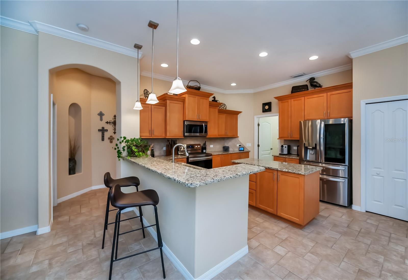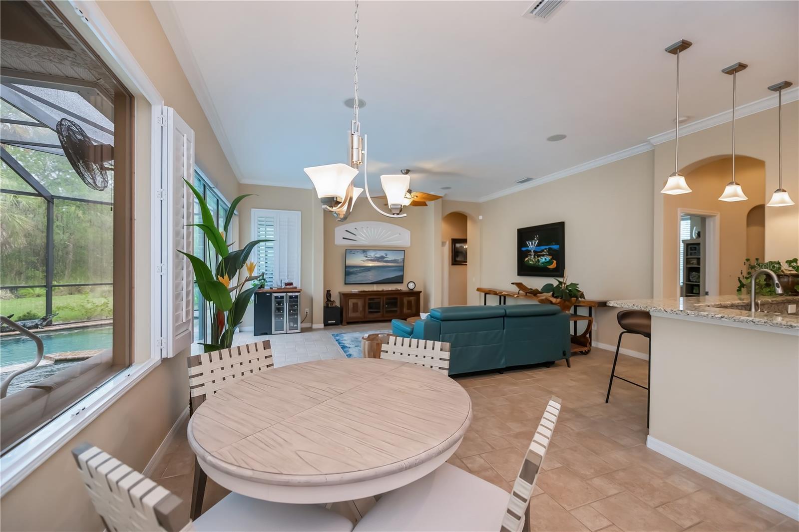 RARE PRESERVE VIEWS(on a 13,000 sq ft lot) awaits for DESIRABLE PRIVACY HERE with a lush tropical side yard within the LUXURIOUS & MAINTENANCE FREE gated community of Heron Creek Golf & Country Club. SIMPLY THE BEST! IMPRESSIVE SALTWATER POOL/ HEATED SPA custom NOHL CREST built home showcases 3Beds/3Baths/Office PLUS Full 3 CAR GARAGE w its own GREE mini split A/C, effortless electric storage lifts, and a stunning epoxy floor.BRING YOUR TOYS & YOUR HOBBYS! MAGNIFICENT CURB APPEAL sets this home apart, w a rich paver driveway, soaring covered entryway, stunning leaded glass double doors, concrete curbing + UNRIVALED NATURE VIEWS & NOT IN A FLOOD ZONE. Sophisticated foyer/entry has wonderful architectural accents including high ceilings, rounded corners, crown molding, abundant natural light from sunburst/picture frame window, decorator alcoves, sleek plantation shutters,& a soothing natural color palette.This open concept has a spacious living room, formal dining room, plus large great room with pocketing sliders seamlessly to lanai, entertaining is in fact, effortless.The kitchen is chef worthy, providing panoramic dinette seating overlooking the zen-like lanai/extensive grounds /sparkling pool and relaxing spa. Granite counter tops, convenient breakfast bar, staggered crown topped wood cabinets, tiled backsplash, full pantry, stainless appliances, and wonderful island provides ample space for more than one chef in the kitchen.The master suite is spa-like with private patio access, abundant closet space and magical ensuite bath including 2 decorator vanities , dual sinks, upgraded shower & a glamorous garden tub to relax lavishly under starlit nights.Guests have 2 excellent choice suites to stay in, both sharing a nicely appointed middle POOL BATH and there is an additional option as a 4th bedroom currently an office.RELAX YEAR ROUND in the heated spa ( it has upgraded high efficiency titanium heat), lounge on its cozy sun-shelf within the sprawling SALTWATER POOL, BBQ and grill poolside, there is a huge covered cooking station included, too! OUTDOOR LIVING AT ITS BEST, enjoying with friends or family night or day, the deck is also enriched with pavers & easy care. Endless vistas of nature from your relaxing lanai backs up to serene lakes and the lush golf course landscapes creating a true symphony fully igniting all your senses. Inside laundry, NEW TILE ROOF, HVAC upgrades including 2025 Rheem 5 ton, new R39 insulation throughout, insulated garage door & recent plumbing add peace of mind and extra value.There are no CDD FEES here & HOA include lawn care, trimming trees & shrubs, mulching, irrigation,cable tv & internet.Enjoy the first-class amenities available, teeing off on the meticulously manicured Arthur Hills design 27 hole golf course, enjoy a swim in the resort style pool, work out in the updated fitness center, engage in friendly competition on the 5 Har-Tru tennis courts, or enjoy the casual and fine dining options in the 20,000 sq ft Clubhouse. This vibrant community, w a robust social calendar, has something for everyone.Closest to private exit gate this fantastic location provides easiest commuting to shopping and dining at City Center,Aquatic Center, WELLEN PARK,Warm Mineral Springs, COOL TODAY PARK (The Atlanta Braves Spring Training Stadium),City Green w events like Music On The Lawn.Here is your opportunity,PRIVACY PLUS a beautiful PARK-LIKE ESTATE home, & amenity laden lifestyle.SCHEDULE YOUR PRIVATE SHOWING TODAY!