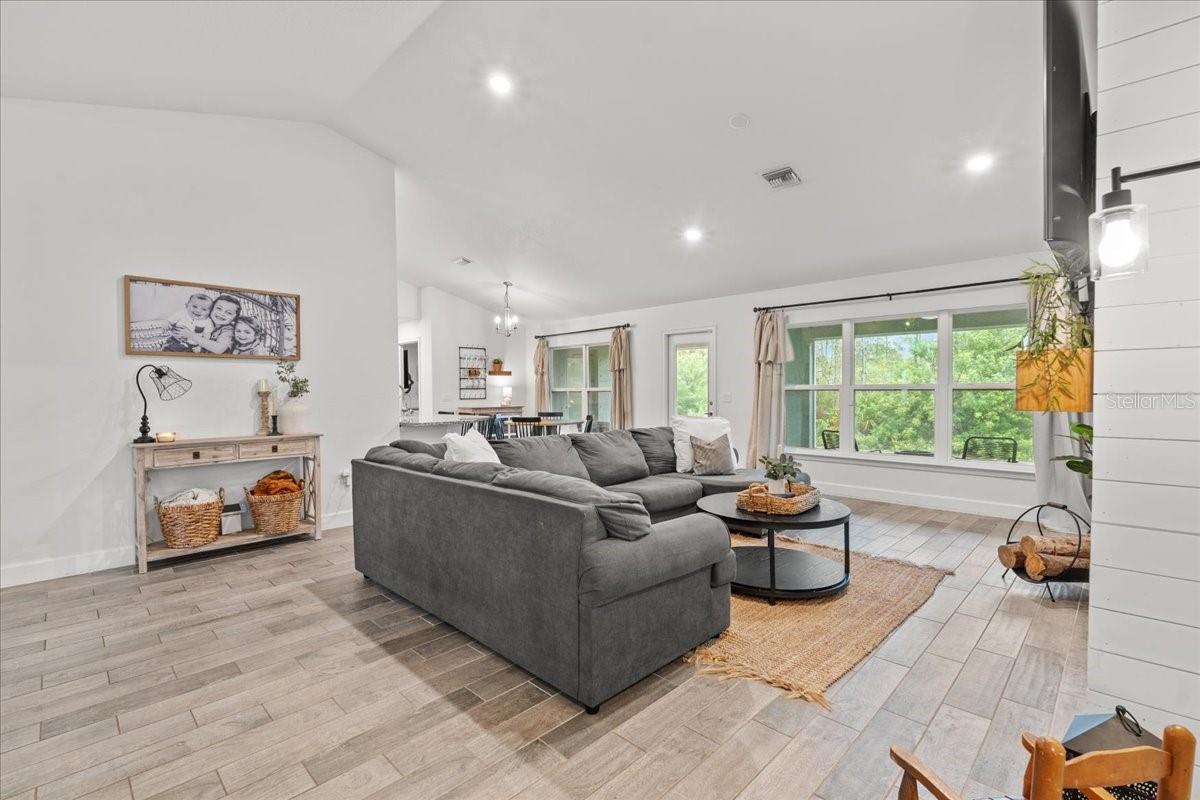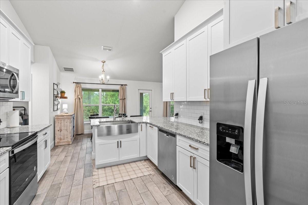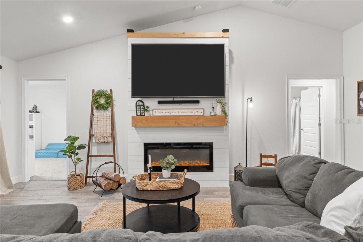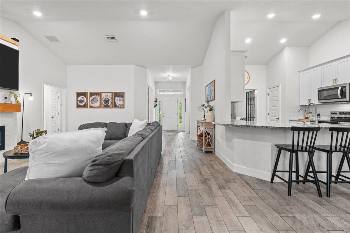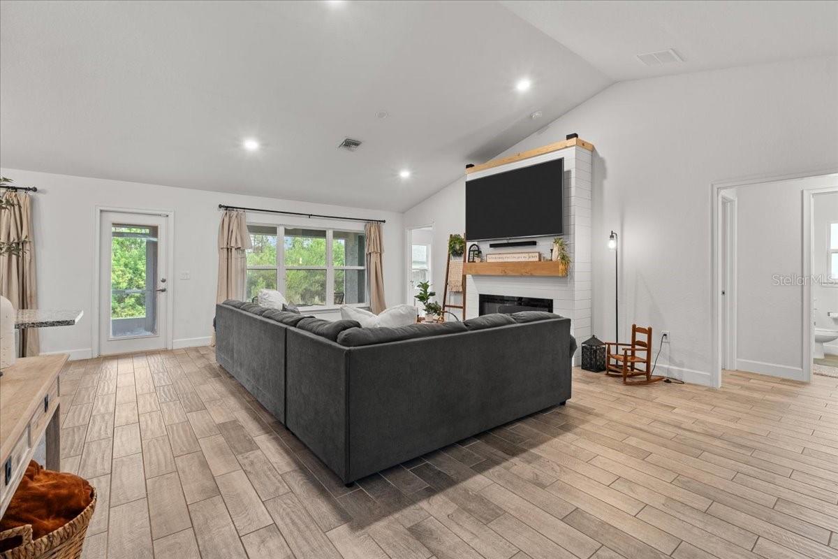 Welcome to this gorgeous and spacious 4-bedroom, 2-bathroom plus den/office, farmhouse-style home, nestled in the heart of North Port, Florida. Blending Southern charm with modern design, this home offers both functionality and style, ideal for those looking for warm, open living spaces with rustic elegance. Step inside to a bright, airy layout with vaulted ceilings and an expansive open-concept design that seamlessly connects the living room, dining area, and kitchen areas. Natural light pours in through oversized energy-efficient windows, illuminating the beautiful wood plank tile flooring that flows throughout the main living space complimented by 5 1/4 " tall baseboards. At the heart of the home is a stunning farm-style kitchen featuring: 42" soft close White shaker cabinets with large brushed steel hardware, stainless steel appliances and gleaming quartz countertops that lay over a large peninsula with breakfast bar seating and a deep apron-front farmhouse sink. Classic subway tile backsplash accents the space perfectly. Just off the kitchen you'll find a magazine cover worthy living room complete with a custom built fireplace that instantly draws you into the space with a true feeling of welcomeness. The primary suite is a tranquil retreat with an oversized bedroom space, dual vanities, a frameless glass walk-in shower, and dual large walk-in closets. On the other right hand side of the home you'll find three additional spacious bedrooms plus a guest bath, that are perfect for kids, guests, or creative spaces, all carrying the warm farmhouse aesthetic with soft neutral tones and crafted accents. The den/office offers versatility—ideal as a home office, playroom, or reading nook or whatever your heart may desire. Out back, enjoy an expansive covered lanai perfect for relaxing or entertaining. The backyard offers room for a future pool, garden, or play area. Located in a quiet and desirable North Port neighborhood, this home provides easy access to I-75, local parks, top-rated schools, shopping, and the Gulf Coast’s pristine beaches. You’ll enjoy a tranquil residential feel with modern conveniences at your fingertips. This North Port beauty is move-in ready and packed with charm, offering the perfect blend of modern comfort and rustic farmhouse elegance. Ideal for those who crave space, style, and a touch of country warmth in a Florida setting. So don't let your dream home become someone else's address. Setup your showing today!