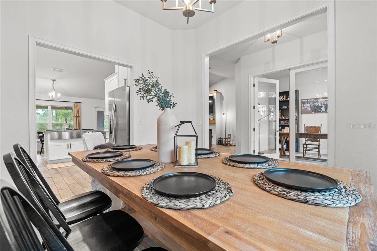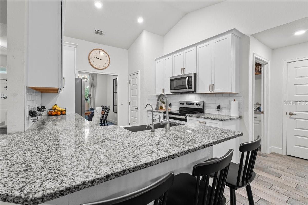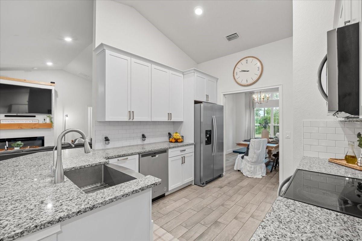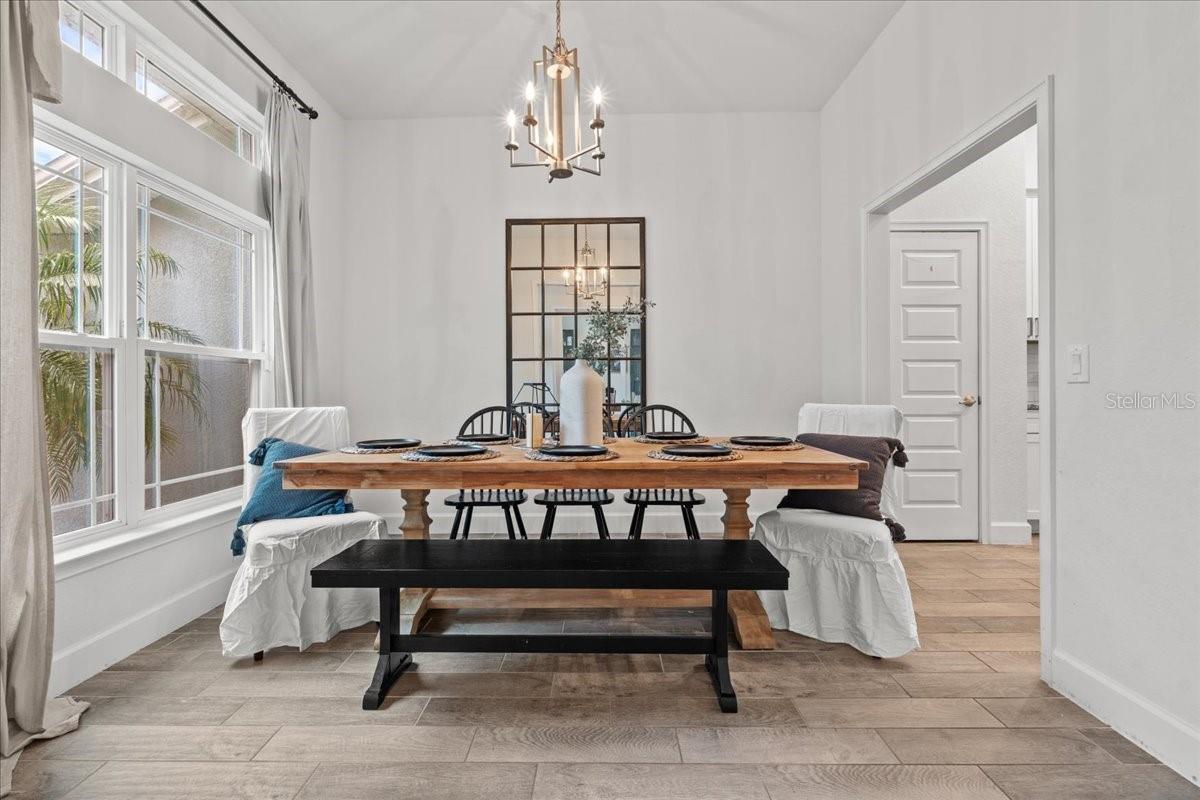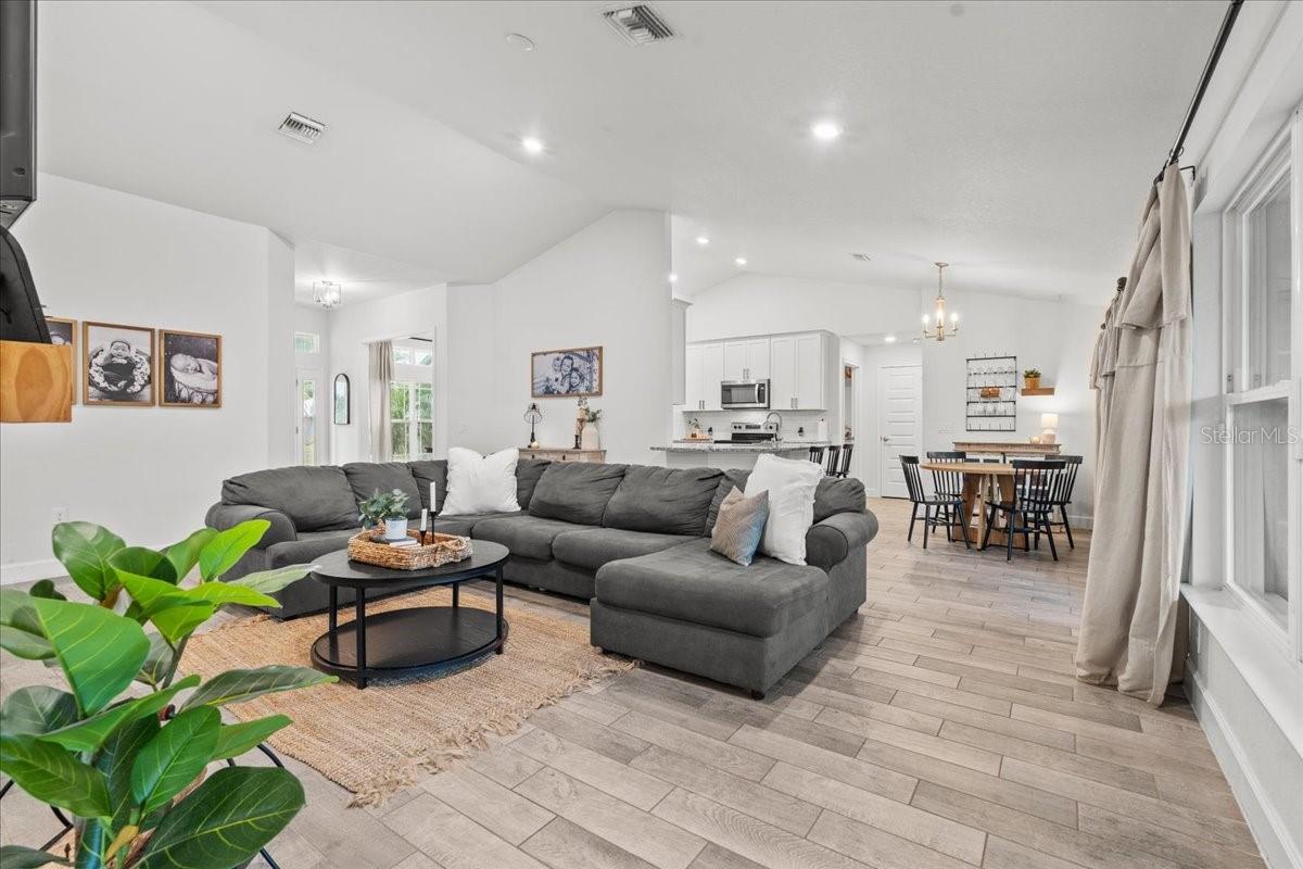 Welcome to this gorgeous and spacious 4-bedroom, 2-bathroom plus den/office, farmhouse-style home, nestled in the heart of North Port, Florida. Blending Southern charm with modern design, this home offers both functionality and style, ideal for those looking for warm, open living spaces with rustic elegance. Step inside to a bright, airy layout with vaulted ceilings and an expansive open-concept design that seamlessly connects the living room, dining area, and kitchen areas. Natural light pours in through oversized energy-efficient windows, illuminating the beautiful wood plank tile flooring that flows throughout the main living space complimented by 5 1/4 " tall baseboards. At the heart of the home is a stunning farm-style kitchen featuring: 42" soft close White shaker cabinets with large brushed steel hardware, stainless steel appliances and gleaming quartz countertops that lay over a large peninsula with breakfast bar seating and a deep apron-front farmhouse sink. Classic subway tile backsplash accents the space perfectly. Just off the kitchen you'll find a magazine cover worthy living room complete with a custom built fireplace that instantly draws you into the space with a true feeling of welcomeness. The primary suite is a tranquil retreat with an oversized bedroom space, dual vanities, a frameless glass walk-in shower, and dual large walk-in closets. On the other right hand side of the home you'll find three additional spacious bedrooms plus a guest bath, that are perfect for kids, guests, or creative spaces, all carrying the warm farmhouse aesthetic with soft neutral tones and crafted accents. The den/office offers versatility—ideal as a home office, playroom, or reading nook or whatever your heart may desire. Out back, enjoy an expansive covered lanai perfect for relaxing or entertaining. The backyard offers room for a future pool, garden, or play area. Located in a quiet and desirable North Port neighborhood, this home provides easy access to I-75, local parks, top-rated schools, shopping, and the Gulf Coast’s pristine beaches. You’ll enjoy a tranquil residential feel with modern conveniences at your fingertips. This North Port beauty is move-in ready and packed with charm, offering the perfect blend of modern comfort and rustic farmhouse elegance. Ideal for those who crave space, style, and a touch of country warmth in a Florida setting. So don't let your dream home become someone else's address. Setup your showing today!