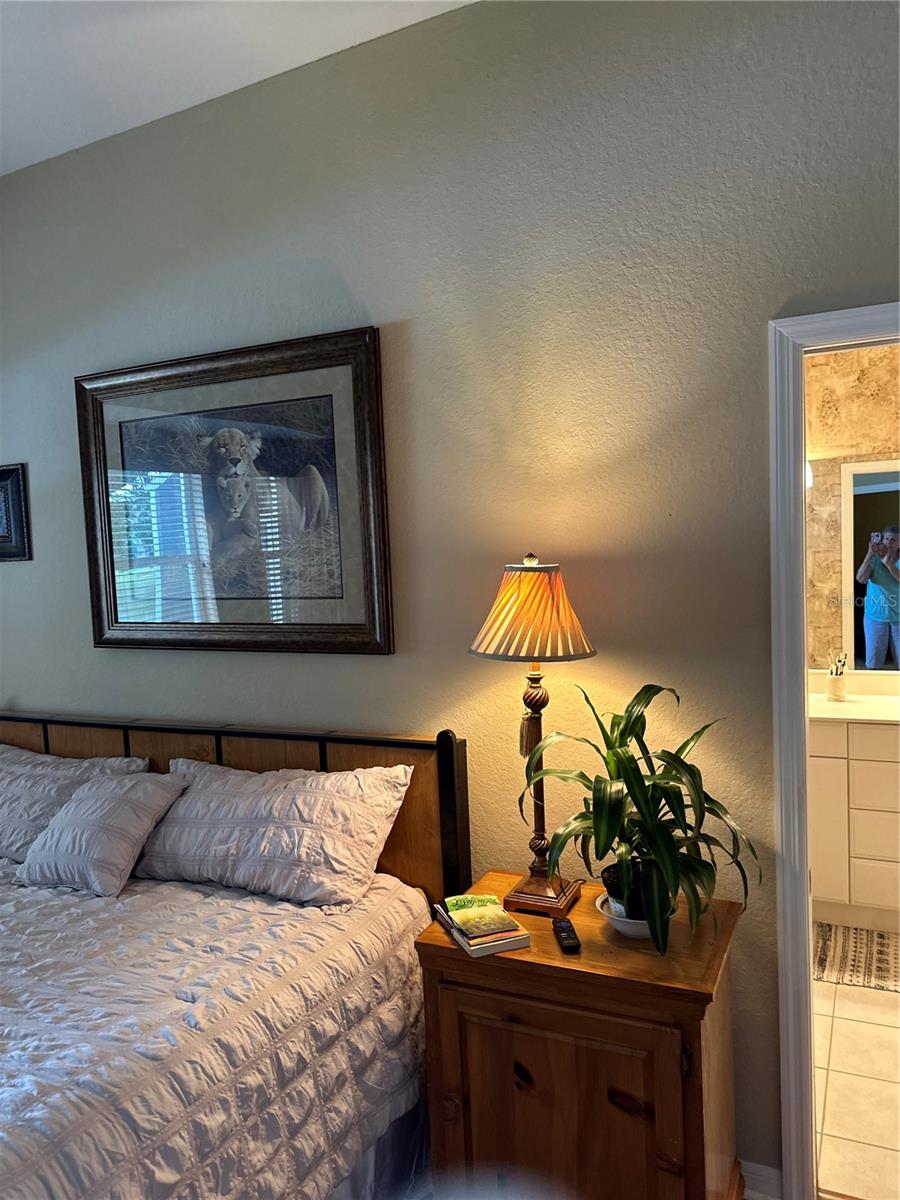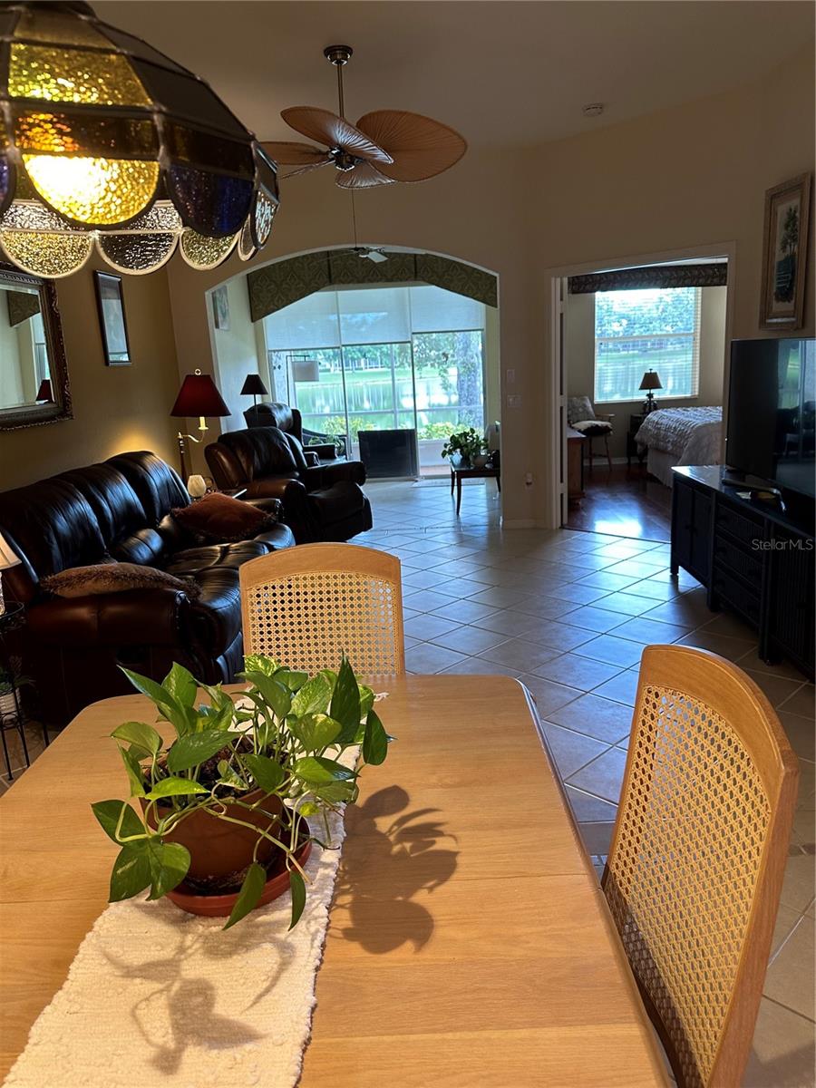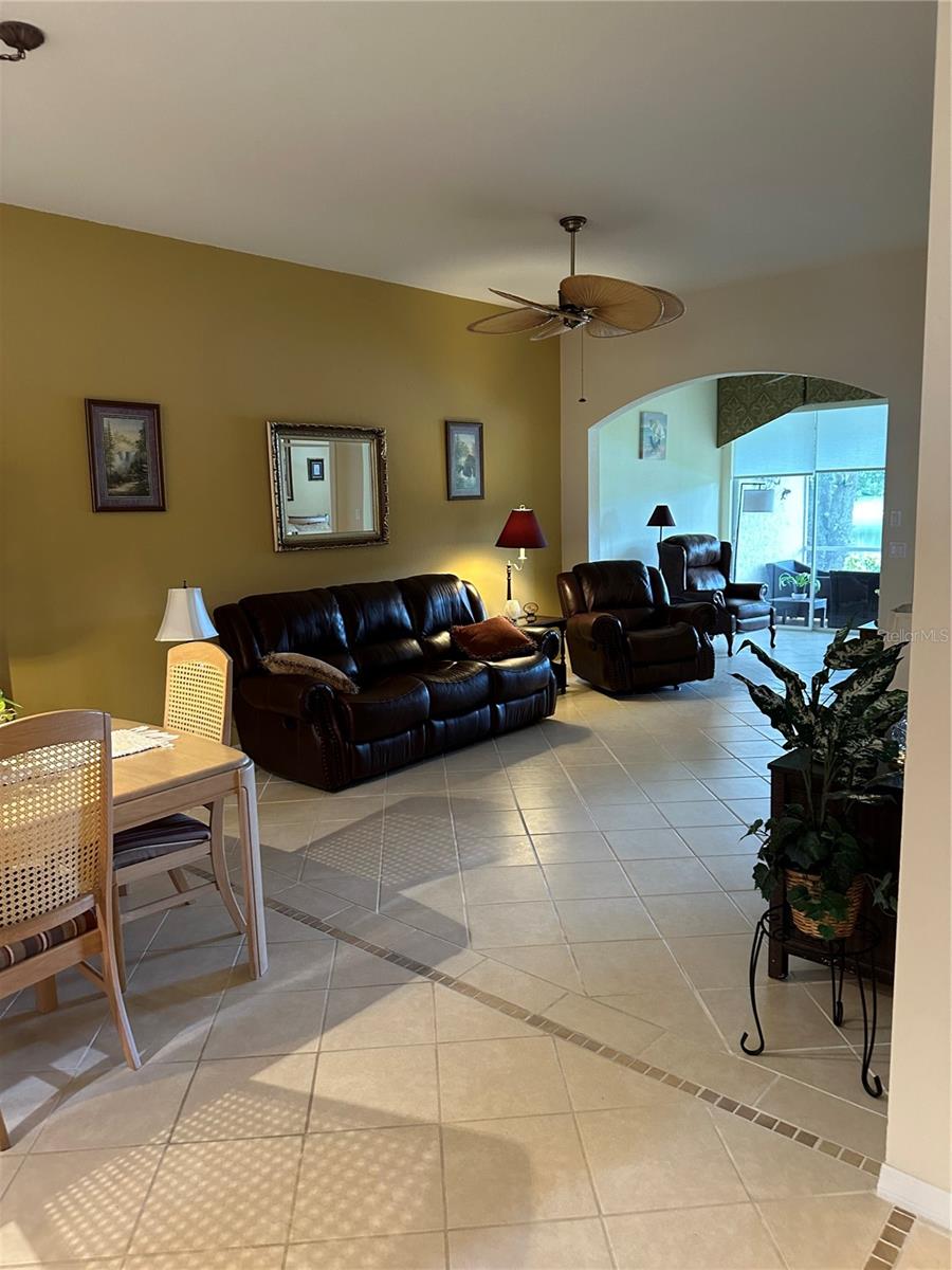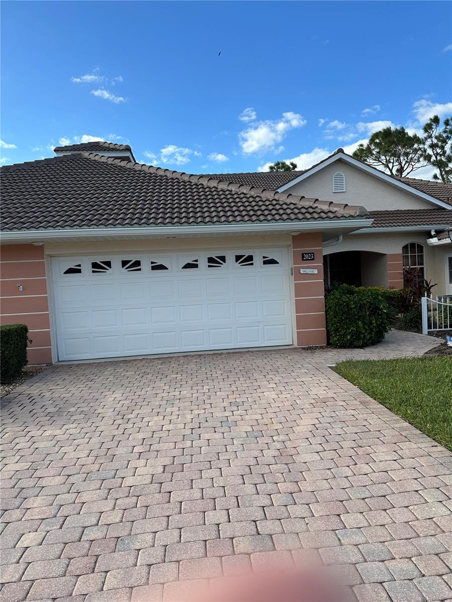 New Roof 2024! Gated Community - no age requirements. Roof assessment paid. Lake View, Soaring Ceilings in this fully Furnished, Turn-key, maintenance-free villa! The flexible floor plan offers endless possibilities, including a spacious kitchen and a great room. The oversized, eat-in kitchen boasts newer appliances, ample cabinetry (including 42” upper cabinets), under-cabinet lighting, and plenty of storage space. This villa features three bedrooms, one currently styled as a den/office complete with a built-in bookcase and closet, plus a bonus Florida room equipped with sun/privacy shades. The private master suite includes a cozy bay window, a huge walk-in closet, and a master bath with dual vanities and a walk-in shower. The guest bedroom features double doors and a walk-in closet. Natural light abounds through numerous windows, all outfitted with blinds and custom treatments. Enjoy the charming covered lanai with its brick flooring. There's also an additional uncovered paver patio ideal for grilling or sunbathing. The oversized garage offers even more storage options. This villa is close to the community pool and clubhouse, which includes a catering kitchen for hosting events. Additionally, you’ll have access to the master community's pool, clubhouse, fitness center, tennis courts, and pickleball courts. A variety of scheduled activities are available for residents to enjoy. Please note, the golf course is privately owned and currently closed.