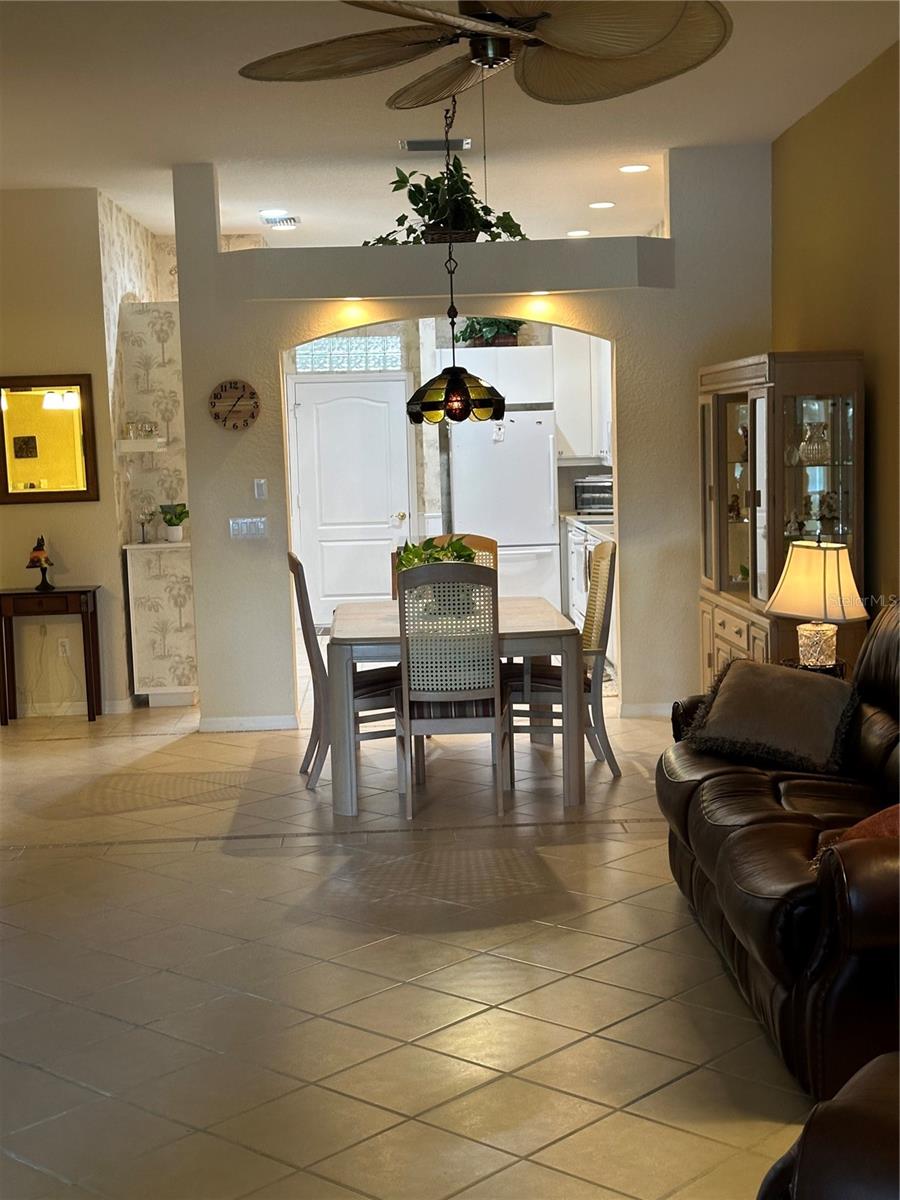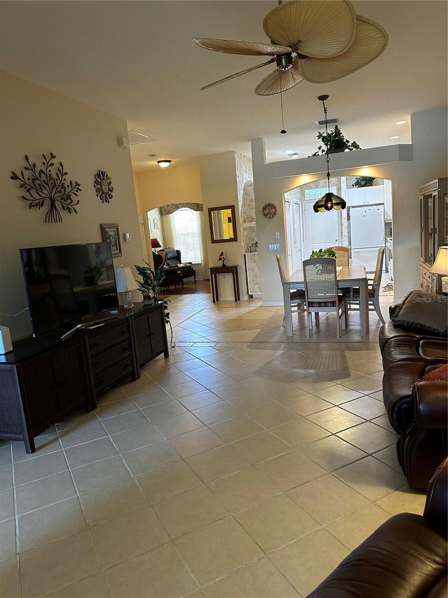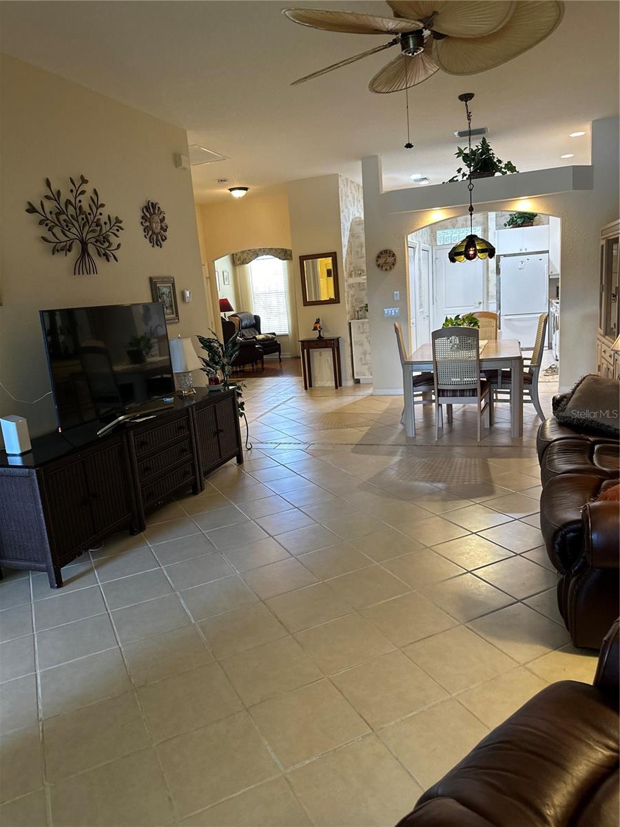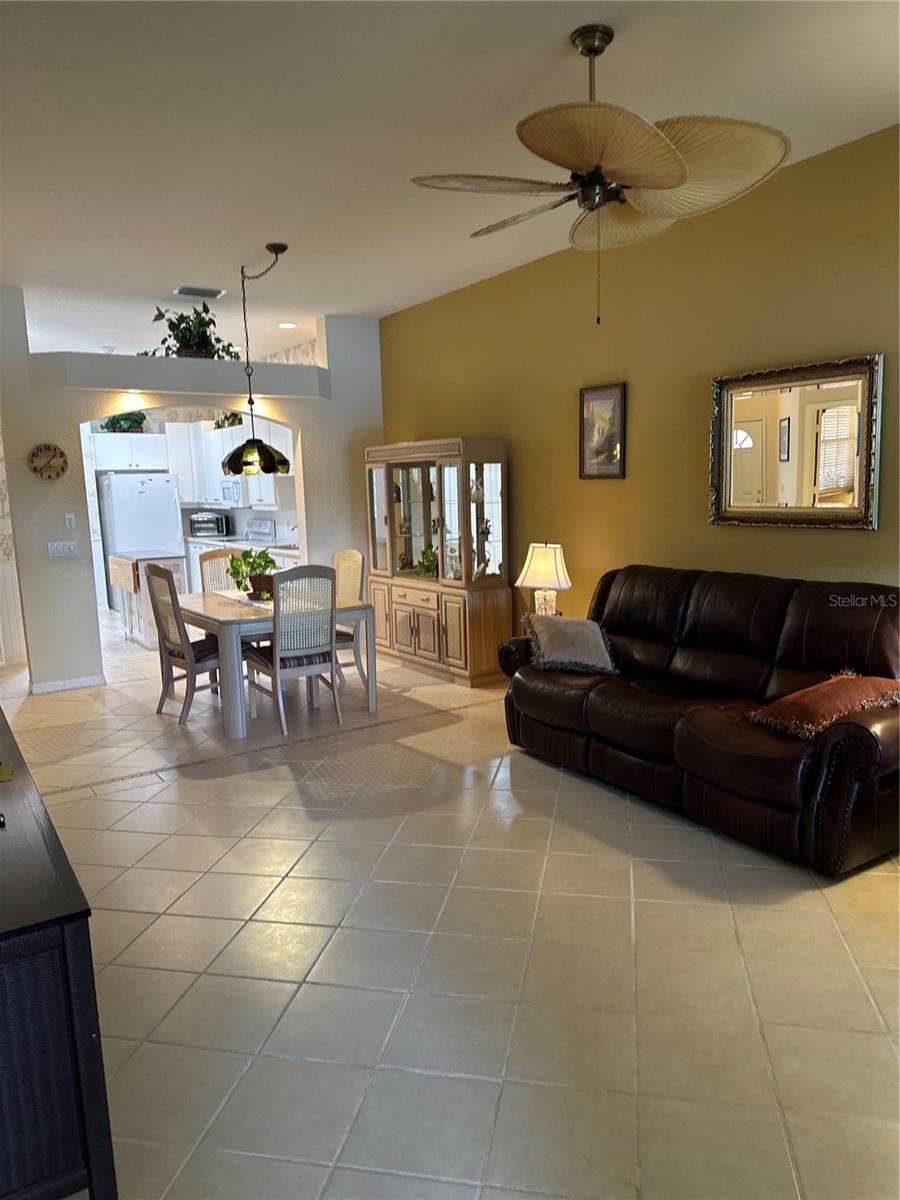 New Roof 2024! Gated Community - no age requirements. Roof assessment paid. Lake View, Soaring Ceilings in this fully Furnished, Turn-key, maintenance-free villa! The flexible floor plan offers endless possibilities, including a spacious kitchen and a great room. The oversized, eat-in kitchen boasts newer appliances, ample cabinetry (including 42” upper cabinets), under-cabinet lighting, and plenty of storage space. This villa features three bedrooms, one currently styled as a den/office complete with a built-in bookcase and closet, plus a bonus Florida room equipped with sun/privacy shades. The private master suite includes a cozy bay window, a huge walk-in closet, and a master bath with dual vanities and a walk-in shower. The guest bedroom features double doors and a walk-in closet. Natural light abounds through numerous windows, all outfitted with blinds and custom treatments. Enjoy the charming covered lanai with its brick flooring. There's also an additional uncovered paver patio ideal for grilling or sunbathing. The oversized garage offers even more storage options. This villa is close to the community pool and clubhouse, which includes a catering kitchen for hosting events. Additionally, you’ll have access to the master community's pool, clubhouse, fitness center, tennis courts, and pickleball courts. A variety of scheduled activities are available for residents to enjoy. Please note, the golf course is privately owned and currently closed.