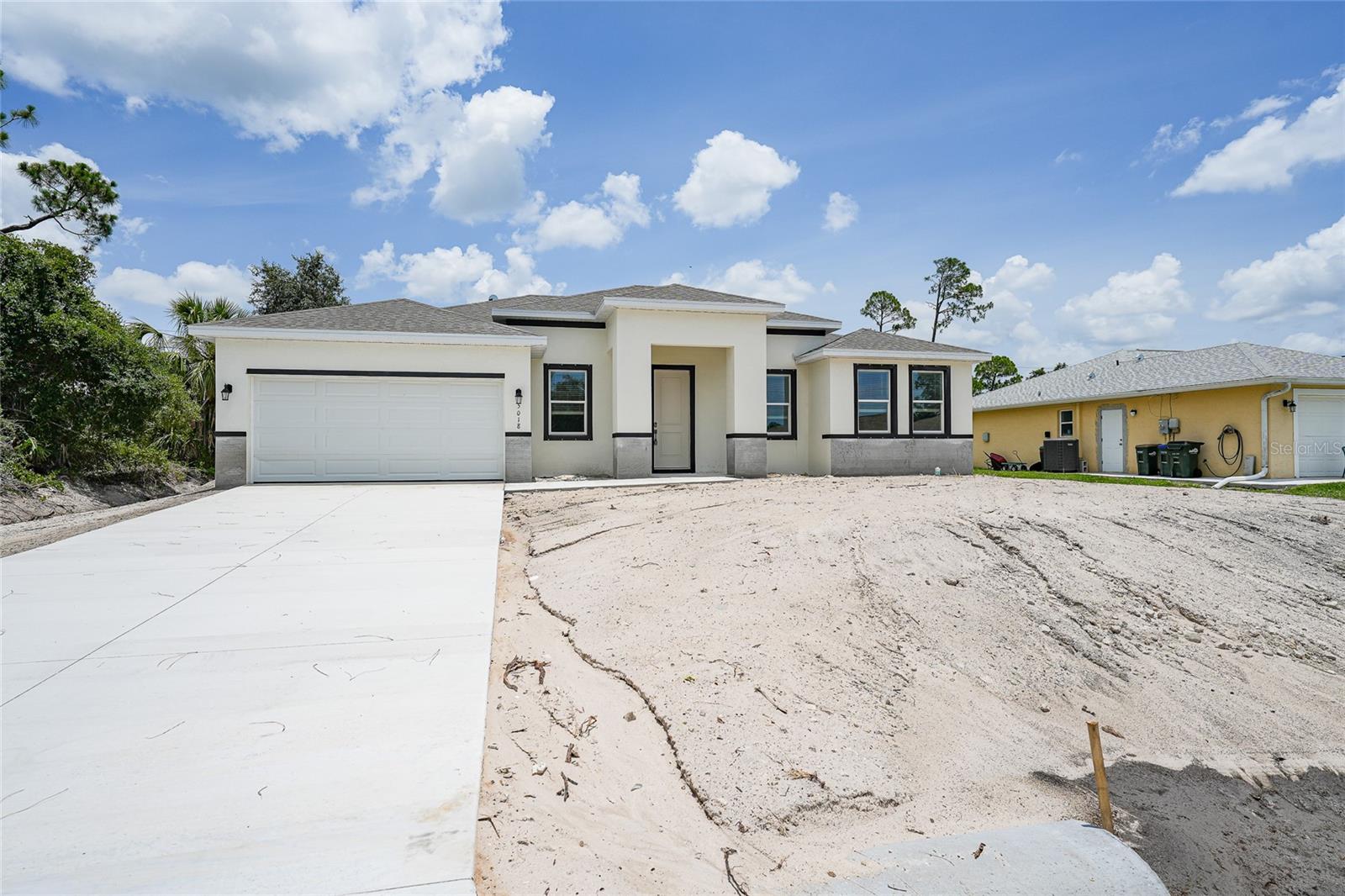 UNDER CONSTRUCTION DUE TO BE COMPLETED IN AROUND 30 DAYS!!!! Welcome to 5018 Cillette Avenue in North Port, FL—a beautifully designed 3-bedroom, 2-bathroom home with a 2-car garage and 1,663 square feet of open living space, built by EcoSun Homes, Southwest Florida’s leading net-zero home builder. Located in a desirable X flood zone with no flood insurance required and no HOA, this home offers peace of mind while being just a short drive from Sarasota’s vibrant shopping, dining, and Gulf beaches. Inside, you’ll find 9’4” ceilings, Low-E windows, and a thoughtfully designed open floor plan perfect for entertaining family and friends. The full kitchen appliance package, modern finishes, and beautiful stonework on the front elevation provide both comfort and curb appeal. Built with energy efficiency in mind, the home features spray foam insulation in the attic, concrete block insulation, a hybrid water heater, clean air filtration system, 16 SEER A/C, and an insulated front door. All homes are pre-wired for solar, and buyers have the option to add solar panels for $20,000, which may qualify for a one-time tax credit of up to $10,000 and offer average annual utility savings of approximately $6,000. Smart home features include keyless entry and remote-controlled garage access, and a built-in pest control system is installed in the walls, which can be activated via HomeTeam Defense with a monthly subscription. This home also includes a 2-10 warranty and a 10-year structural warranty, offering long-term protection and value. With no HOA, no flood zone, and exceptional energy-efficient upgrades, 5018 Cillette Ave offers the perfect balance of modern convenience, sustainability, and affordability in a growing Southwest Florida community.