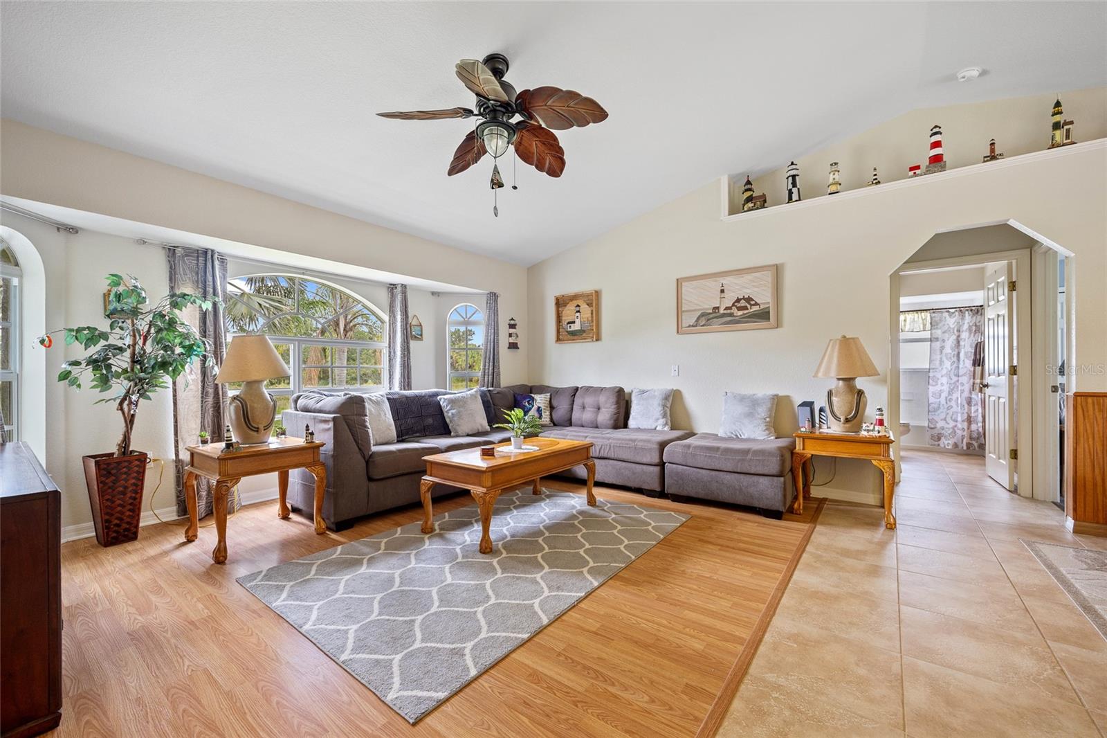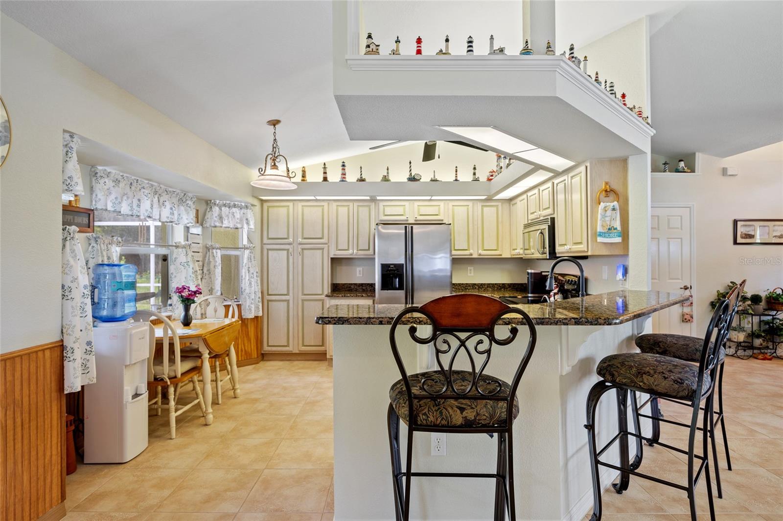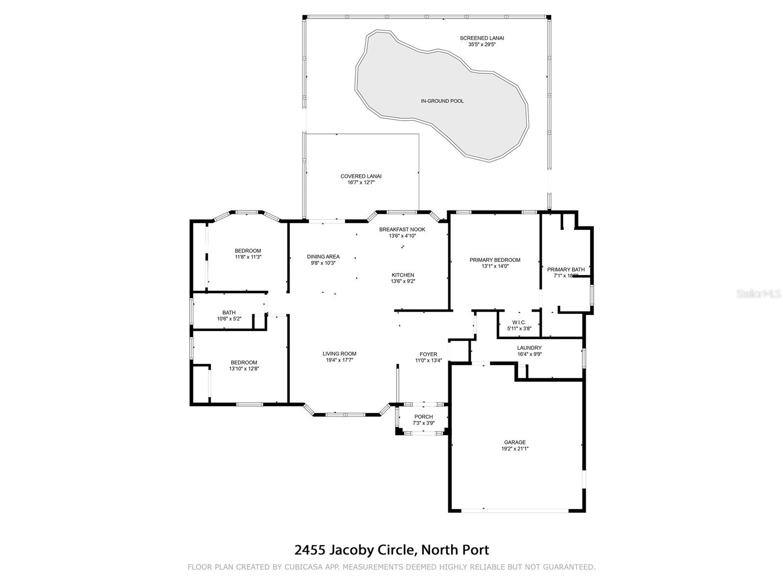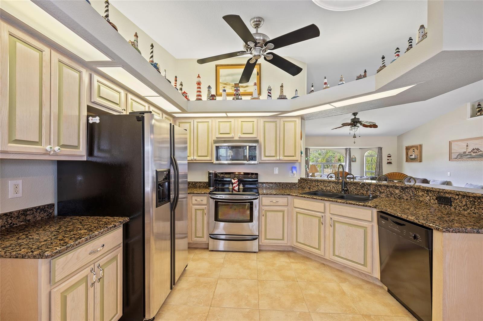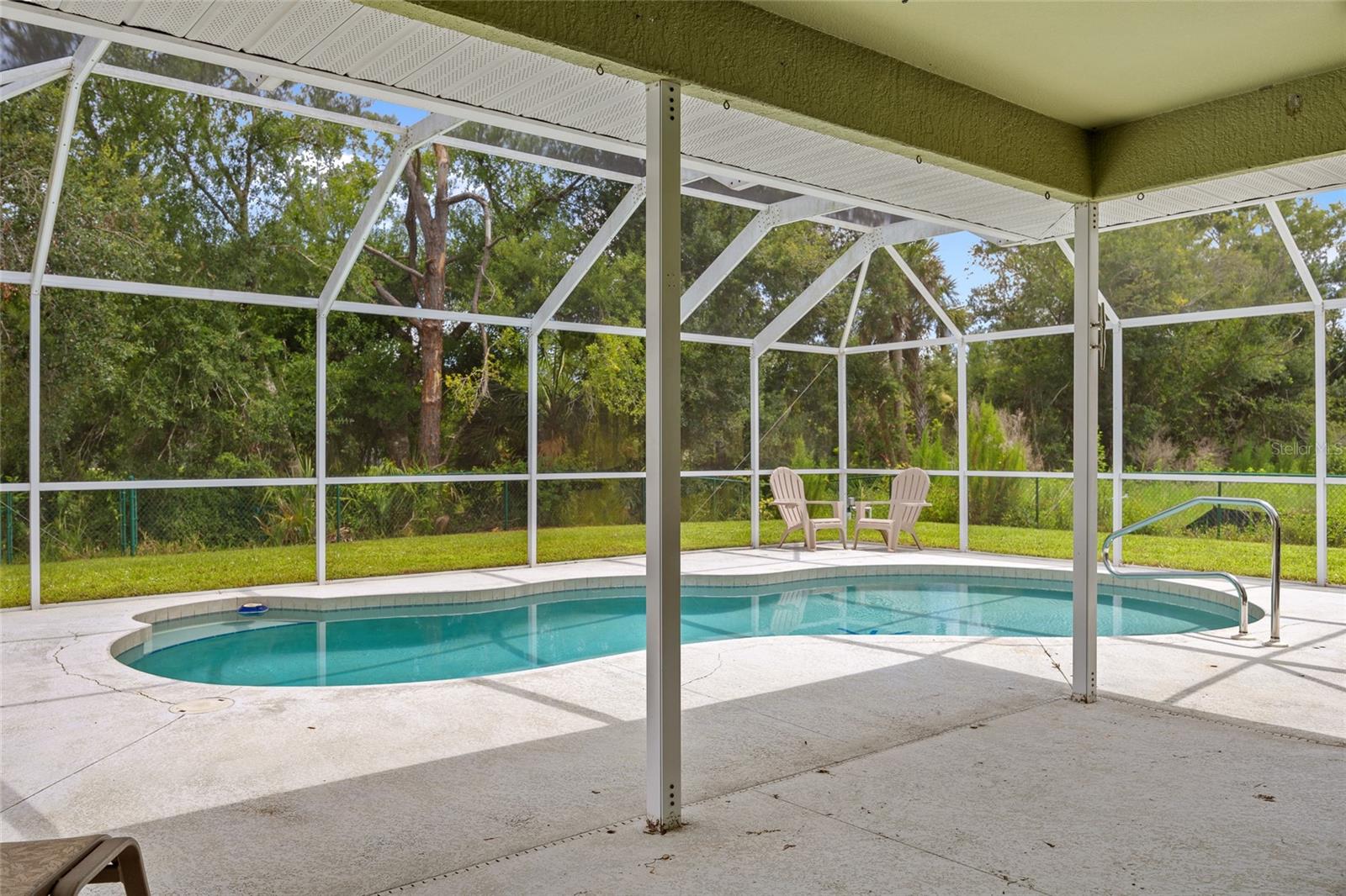 SPACIOUS 3 BEDROOM, 2 BATH, 2-CAR GARAGE CANAL FRONT POOL HOME IN NORTH PORT! This home features 1,623 sf of living space, high ceilings, laminate and tile flooring throughout. The kitchen offers an abundance of cabinetry, granite counters, stainless steel appliances, and breakfast bar that overlooks the dining and family room. Generous primary bedroom has views of the pool and lanai area, walk-in closet and private ensuite featuring dual sinks, soaker tub, and walk-in shower. Split floor plan ensures privacy, with two additional bedrooms sharing a full guest bath. Additional upgrades and features include newer roof 2022, hot water heater 2024, pool pump 2024, well pump 2024, water softener 2024, canal lot, nicely landscaped exterior, screen front entry and inside laundry room. Step outside to a covered lanai with screened pool overlooking fenced backyard with mature trees for privacy. Located near I-75, Murdock shopping and restaurant district, schools, hospitals and outdoor activities. Don’t miss this opportunity! Schedule your private showing today!