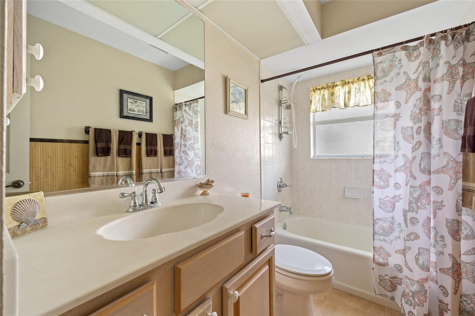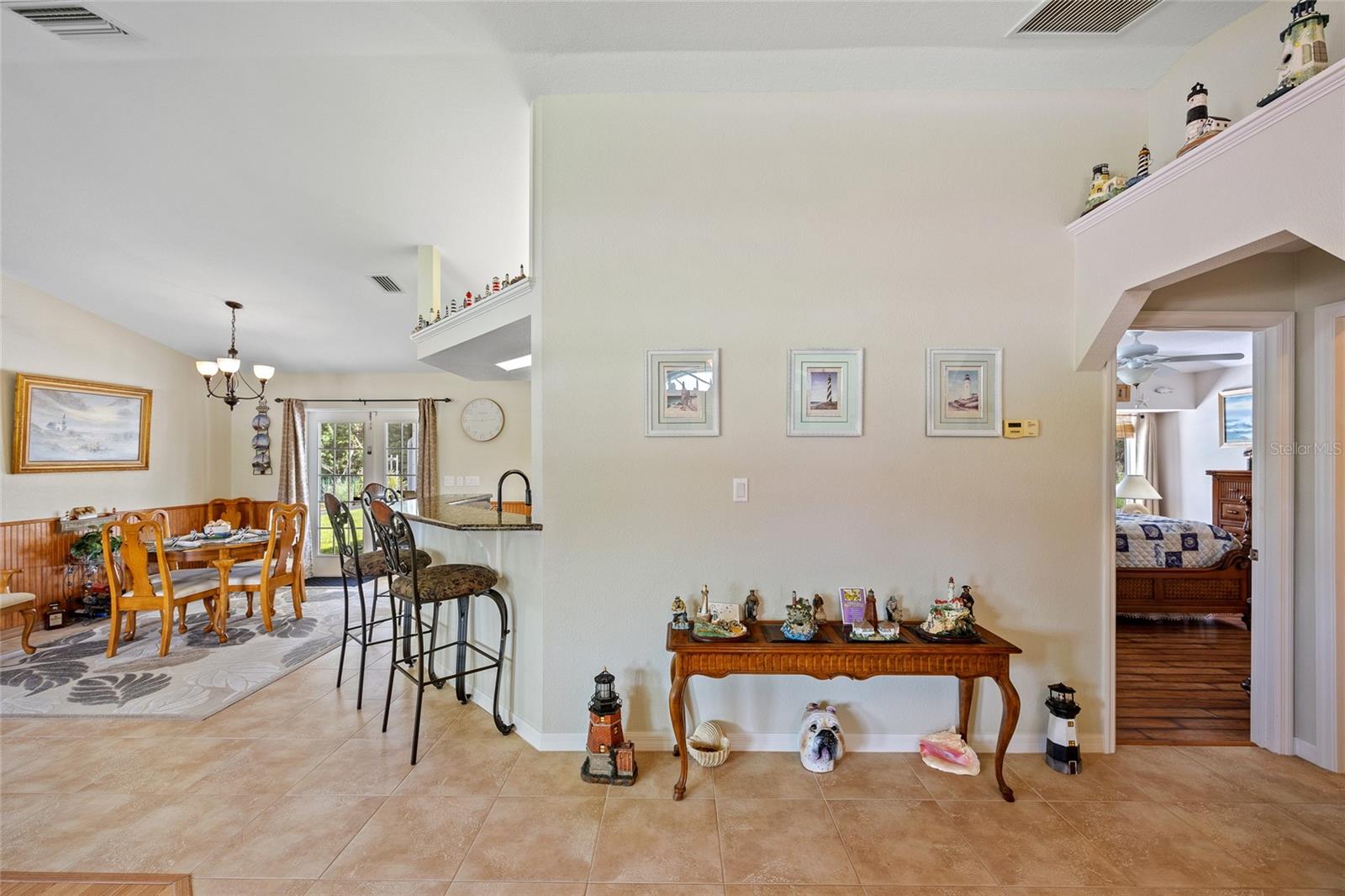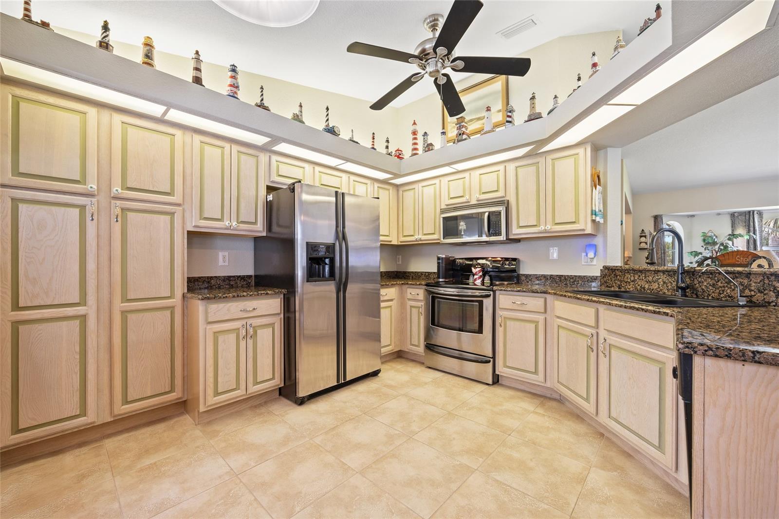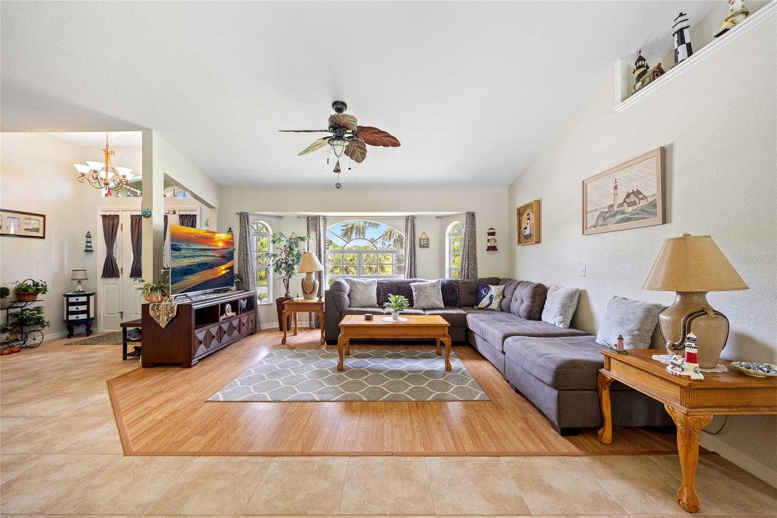 SPACIOUS 3 BEDROOM, 2 BATH, 2-CAR GARAGE CANAL FRONT POOL HOME IN NORTH PORT! This home features 1,623 sf of living space, high ceilings, laminate and tile flooring throughout. The kitchen offers an abundance of cabinetry, granite counters, stainless steel appliances, and breakfast bar that overlooks the dining and family room. Generous primary bedroom has views of the pool and lanai area, walk-in closet and private ensuite featuring dual sinks, soaker tub, and walk-in shower. Split floor plan ensures privacy, with two additional bedrooms sharing a full guest bath. Additional upgrades and features include newer roof 2022, hot water heater 2024, pool pump 2024, well pump 2024, water softener 2024, canal lot, nicely landscaped exterior, screen front entry and inside laundry room. Step outside to a covered lanai with screened pool overlooking fenced backyard with mature trees for privacy. Located near I-75, Murdock shopping and restaurant district, schools, hospitals and outdoor activities. Don’t miss this opportunity! Schedule your private showing today!