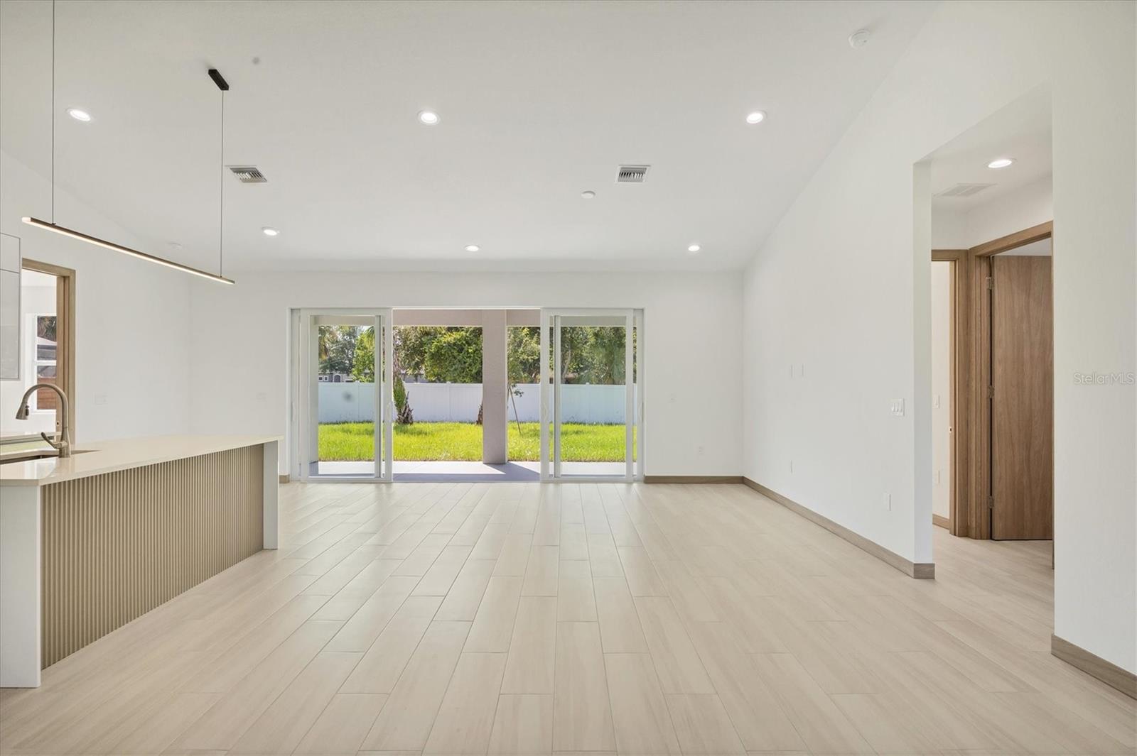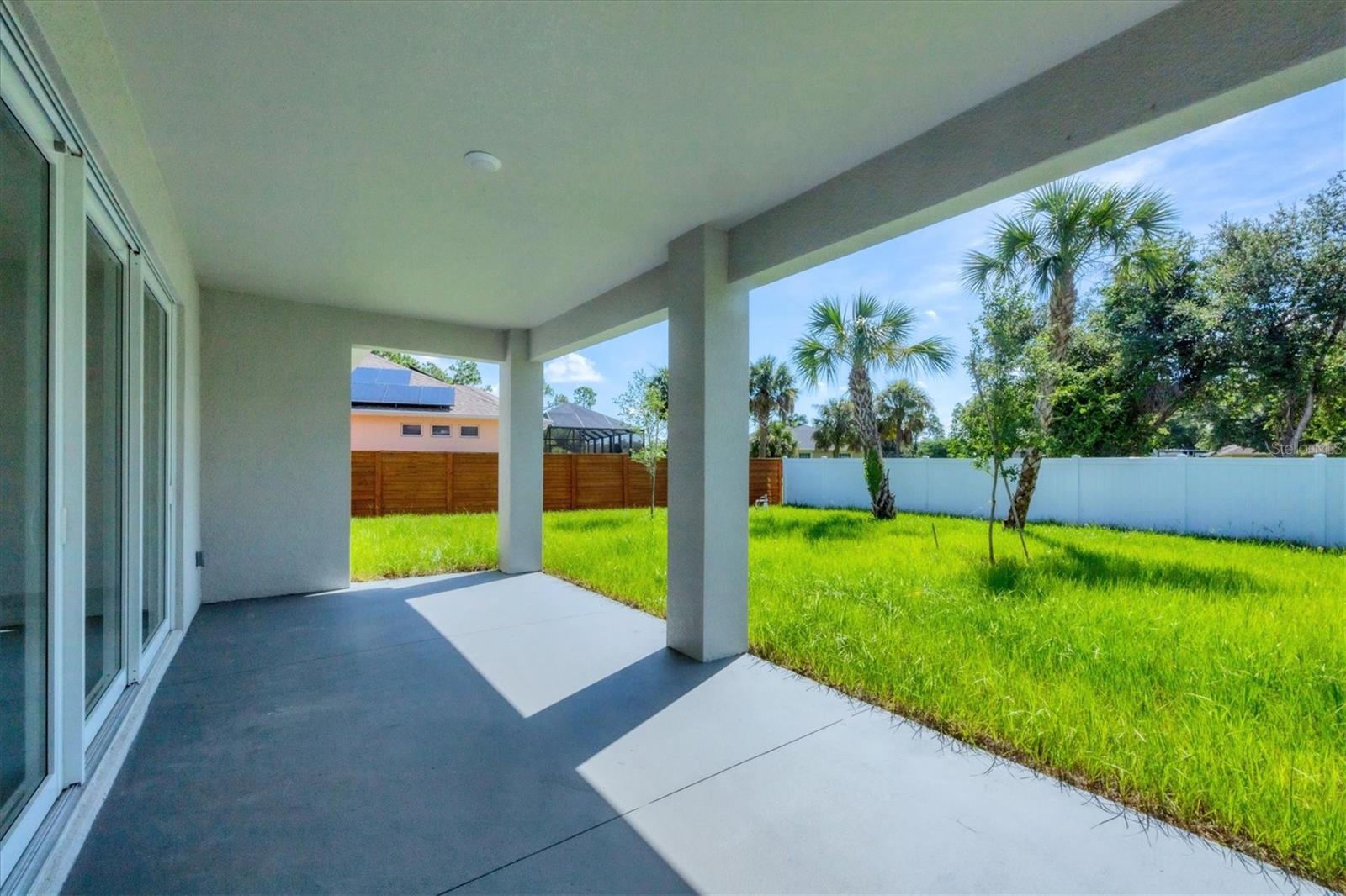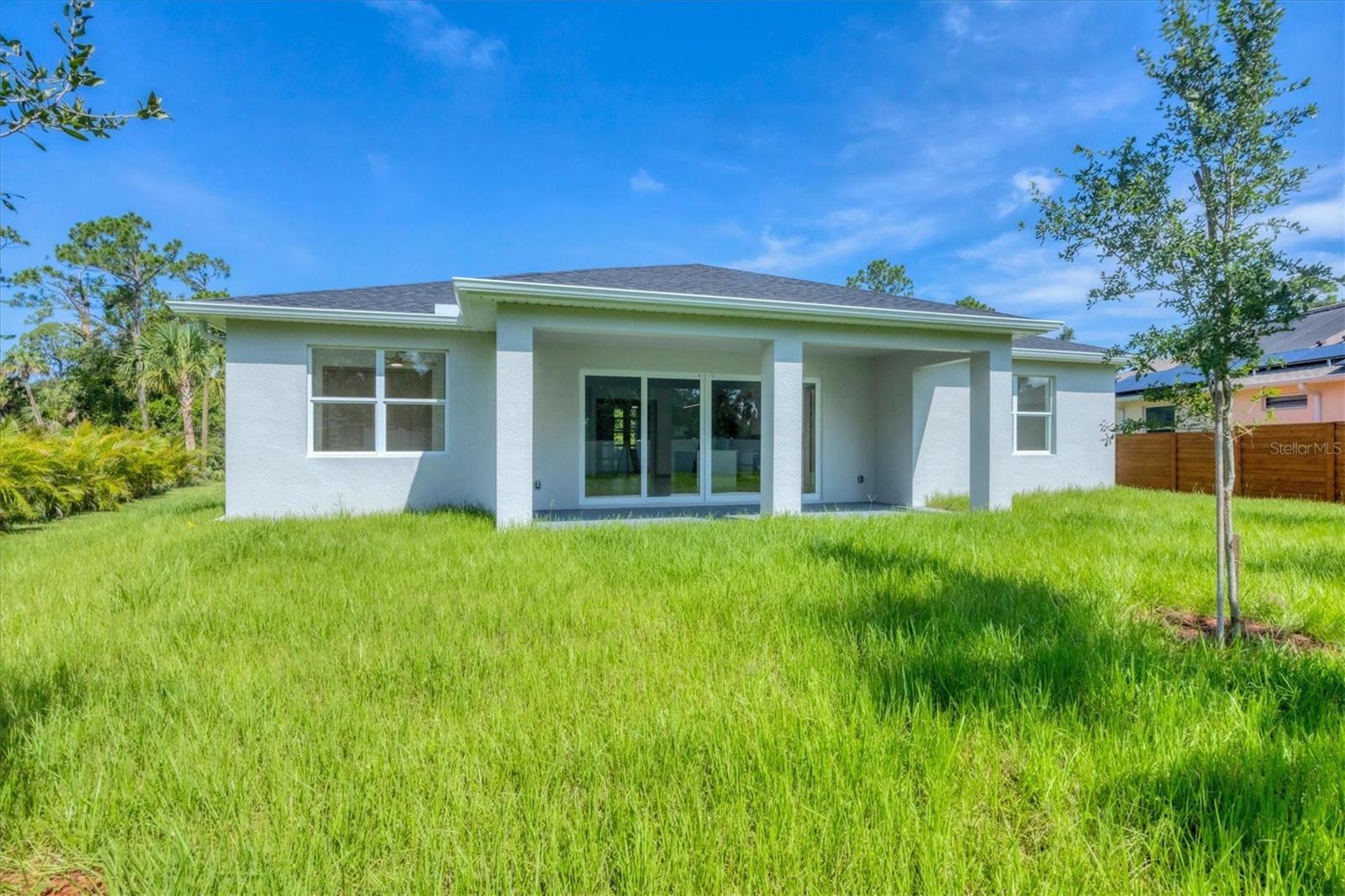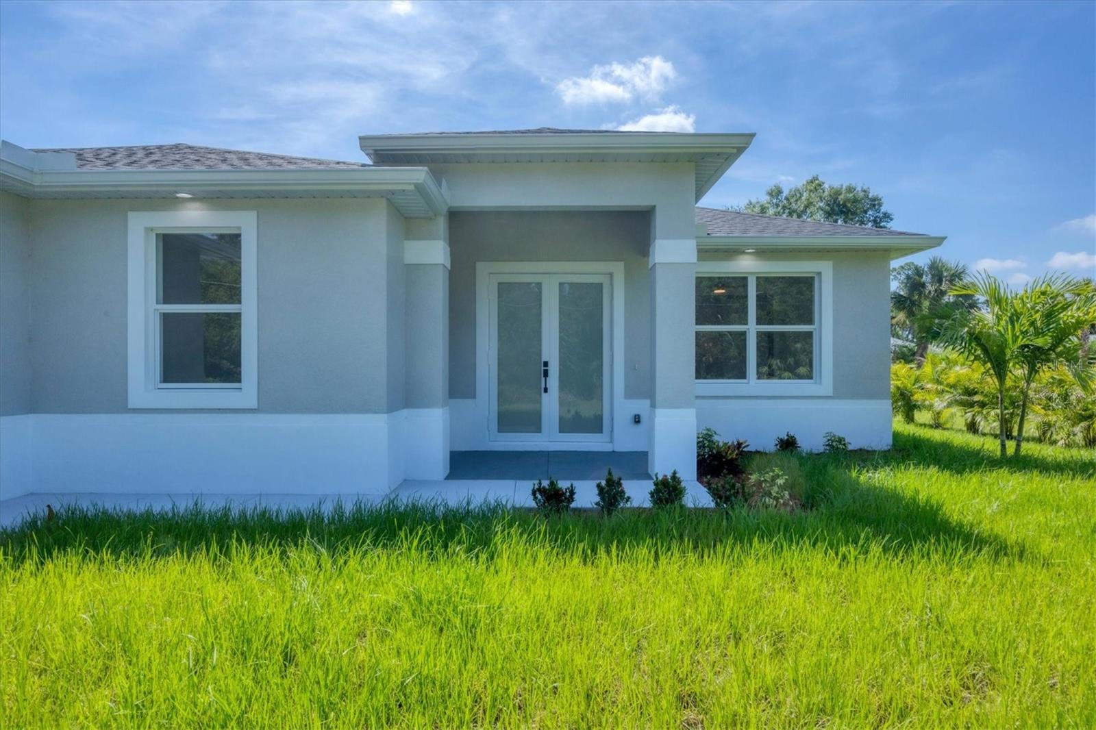 One or more photo(s) has been virtually staged. Stunning New Construction – Available for Purchase or Rent From the moment you arrive, the impressive 8-foot double glass doors welcome you into a bright, open-concept living space filled with recessed lighting and contemporary finishes. At the heart of the home is an amazing kitchen featuring quartz countertops, modern cabinetry, a gorgeous tile backsplash, and stainless steel appliances. Four 8-foot sliding glass doors create seamless indoor-outdoor living, opening to a spacious open patio — perfect for entertaining and relaxing. The home is outfitted with impact-rated windows and doors for peace of mind, along with a smart MyQ garage door opener, a full gutter system, and an efficient sprinkler system to keep the landscaping lush. Inside, you'll find tile flooring throughout, elegant quartz surfaces in both the kitchen and baths, and a dedicated home office enhanced by French glass doors. The spacious laundry room includes a convenient mop sink, and the oversized primary closet provides abundant storage. Ceiling fans with remotes and modern hardware and light fixtures add to the home’s stylish aesthetic. Plus, with fencing already in place on two sides from neighboring homes, you’re well on your way to a fully enclosed backyard. This move-in-ready gem offers exceptional quality and attention to detail in a desirable neighborhood. Available for purchase or for rent at $2,600/month, with a $2,600 security deposit, application fee, and lease preparation fee. Schedule your private showing today — homes like this don't last long! One or more pictures have been virtually staged.