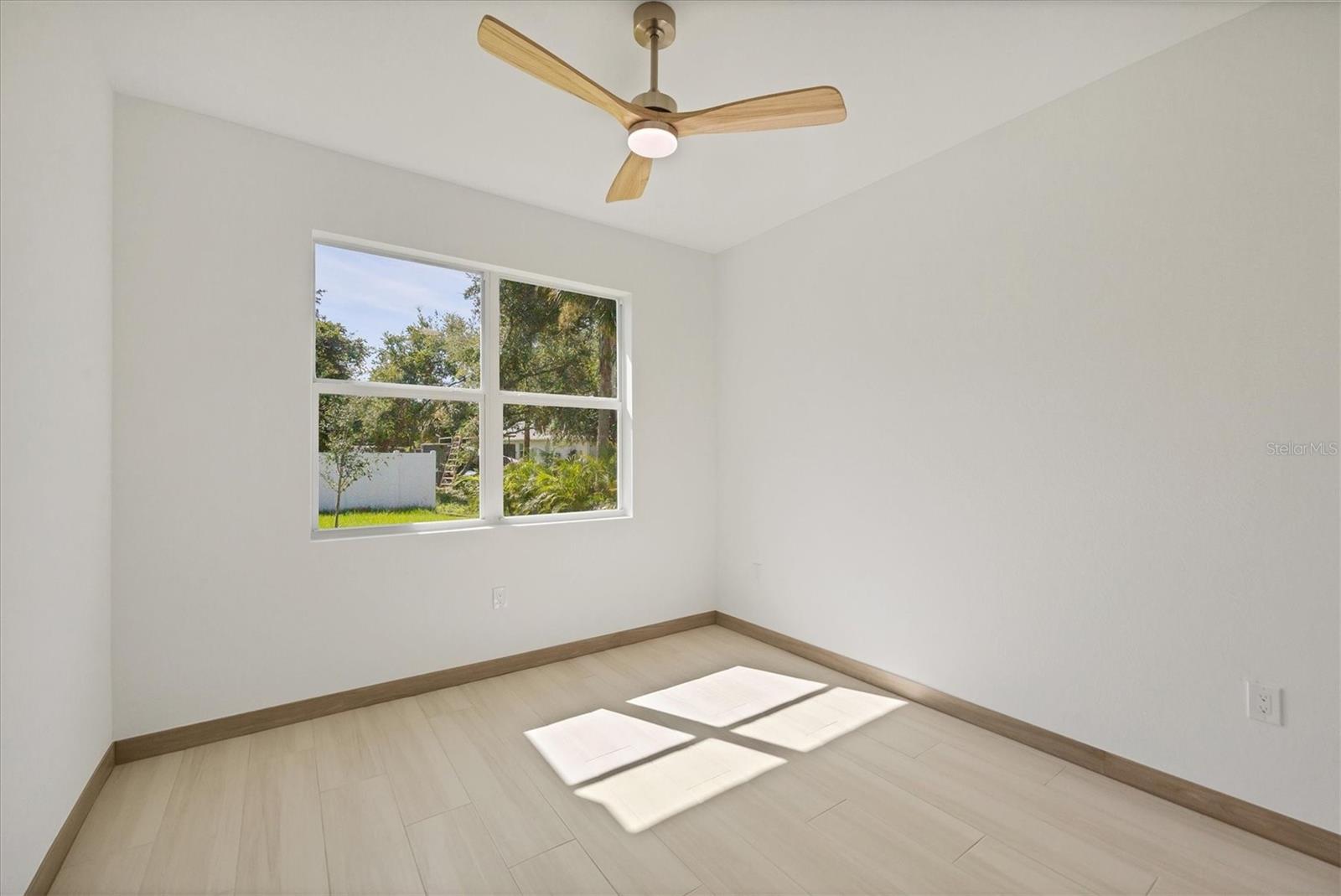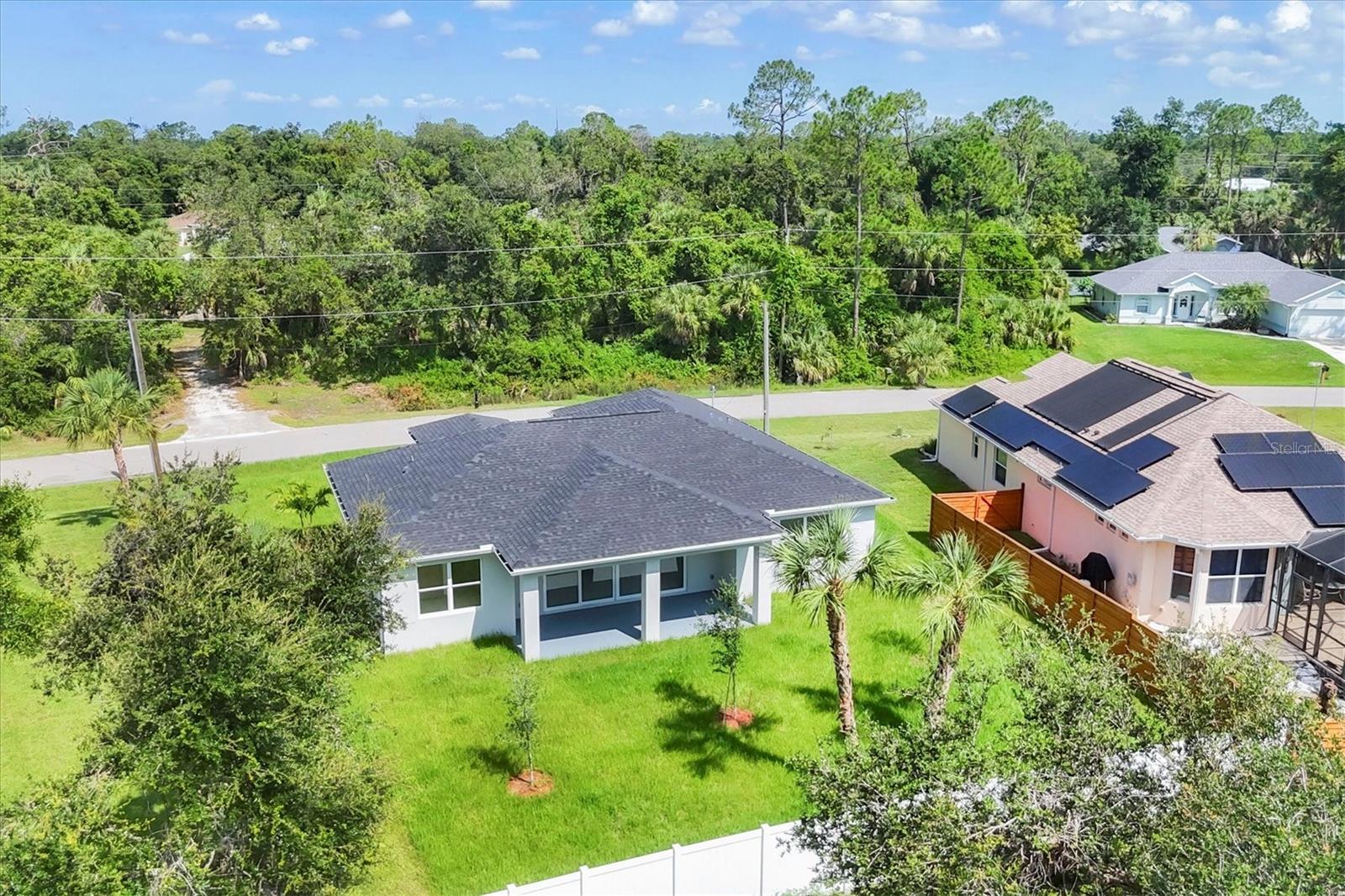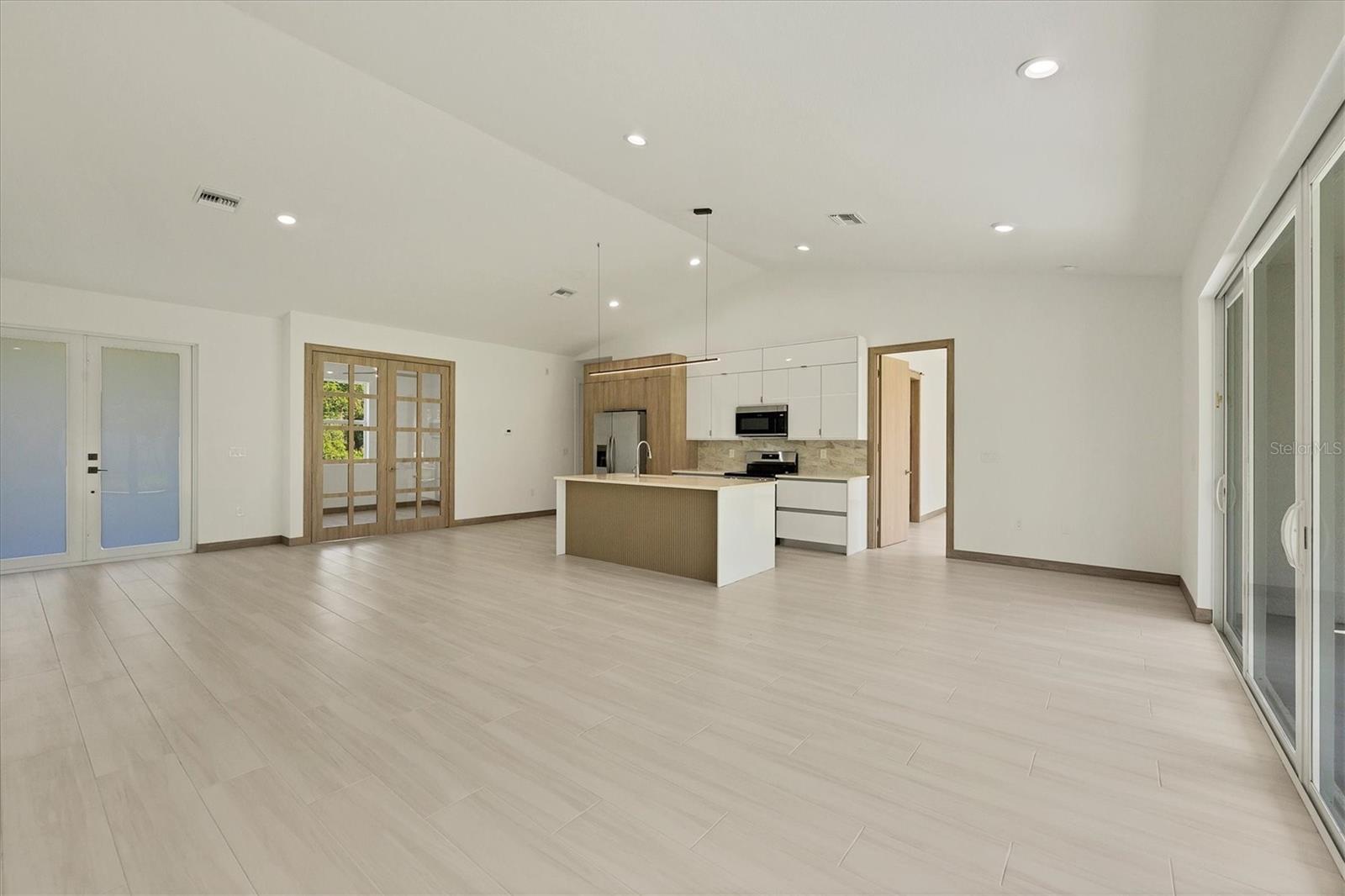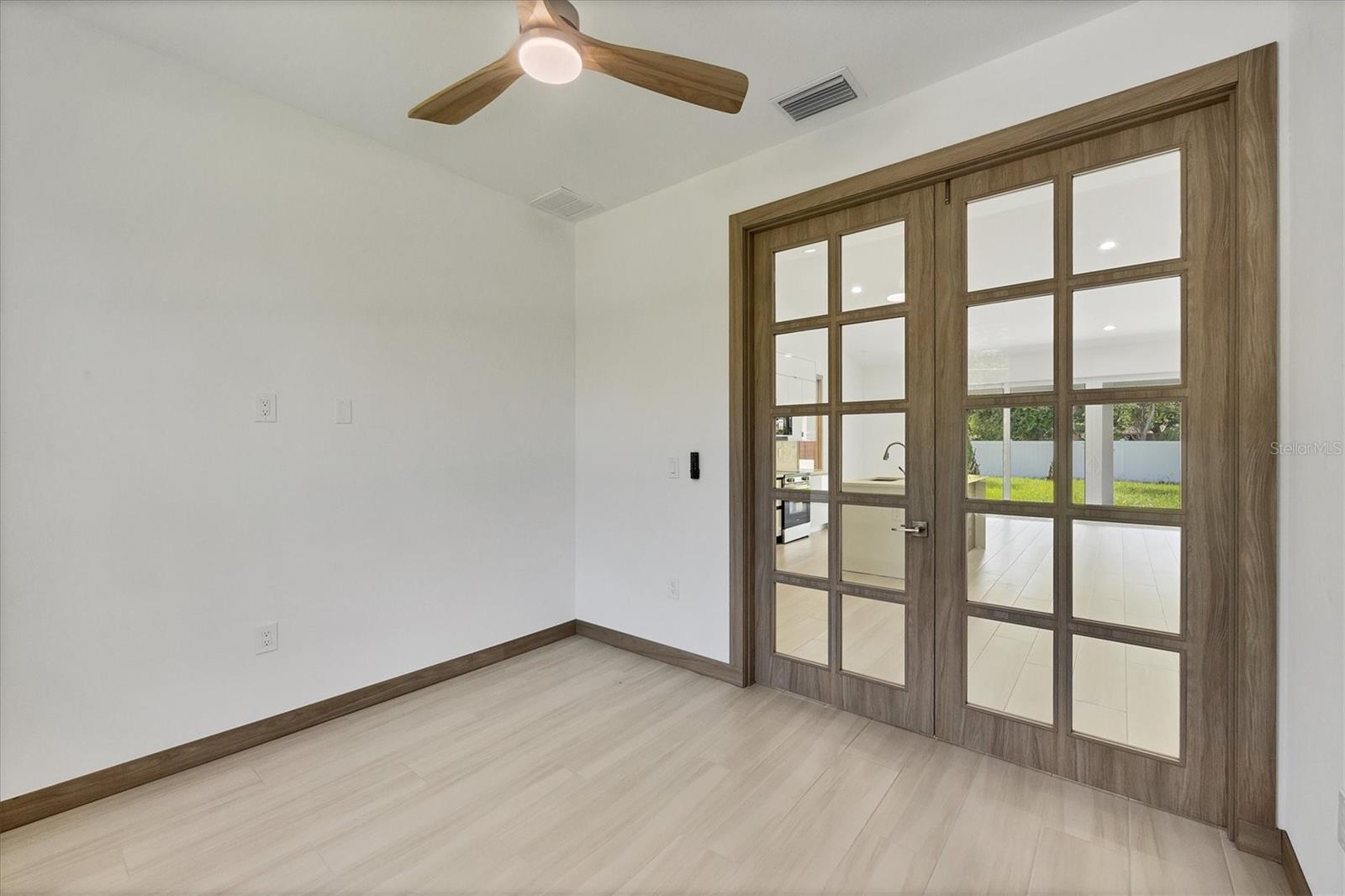 One or more photo(s) has been virtually staged. Stunning New Construction – Available for Purchase or Rent From the moment you arrive, the impressive 8-foot double glass doors welcome you into a bright, open-concept living space filled with recessed lighting and contemporary finishes. At the heart of the home is an amazing kitchen featuring quartz countertops, modern cabinetry, a gorgeous tile backsplash, and stainless steel appliances. Four 8-foot sliding glass doors create seamless indoor-outdoor living, opening to a spacious open patio — perfect for entertaining and relaxing. The home is outfitted with impact-rated windows and doors for peace of mind, along with a smart MyQ garage door opener, a full gutter system, and an efficient sprinkler system to keep the landscaping lush. Inside, you'll find tile flooring throughout, elegant quartz surfaces in both the kitchen and baths, and a dedicated home office enhanced by French glass doors. The spacious laundry room includes a convenient mop sink, and the oversized primary closet provides abundant storage. Ceiling fans with remotes and modern hardware and light fixtures add to the home’s stylish aesthetic. Plus, with fencing already in place on two sides from neighboring homes, you’re well on your way to a fully enclosed backyard. This move-in-ready gem offers exceptional quality and attention to detail in a desirable neighborhood. Available for purchase or for rent at $2,600/month, with a $2,600 security deposit, application fee, and lease preparation fee. Schedule your private showing today — homes like this don't last long! One or more pictures have been virtually staged.